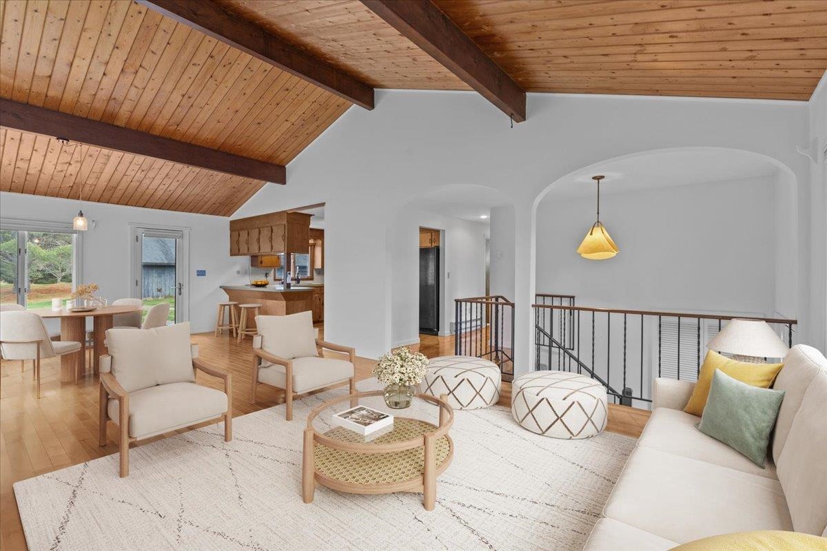 Are you dreaming of a home that offers a rare combination of privacy, functionality, & convenience in a serene country setting while being close to town? Set on 2.9+ private acres, 1758 County Road combines a peaceful, tucked-away feel w/ quick access to downtown Montpelier. This well cared for mid-century home features beautifully vaulted ceilings, bright kitchen w/ breakfast bar & pantry, & a 3-bedroom, 2-bath layout designed for easy living. The walkout lower level includes a spacious family room w/ stone fireplace, mudroom, half bath, laundry area, & a bonus room ideal for an office, studio, or guests. Recent improvements include high-efficiency heat pumps, updated electric baseboard heat, continuous bathroom ventilation, new LVP flooring, & new roof scheduled for completion in November. The home is fully electric w/ a propane stove for backup heat & excellent energy efficiency. A 28'×56' barn w/ two garage bays, stalls, tack room, hayloft, & frost-free hydrant provides flexible space for animals, storage, or projects. The property may allow expansion or potential ADU use (per town guidelines). High-speed internet is on site, w/ fiber available. Located in the East Montpelier Elementary & U-32 school district, and surrounded by trail networks. This is a well-loved home in a great location that you do not want to miss! Come check out the Open House on Saturday, November 1st from 11:00 to 1:00. This one is a hot commodity, don’t delay!
