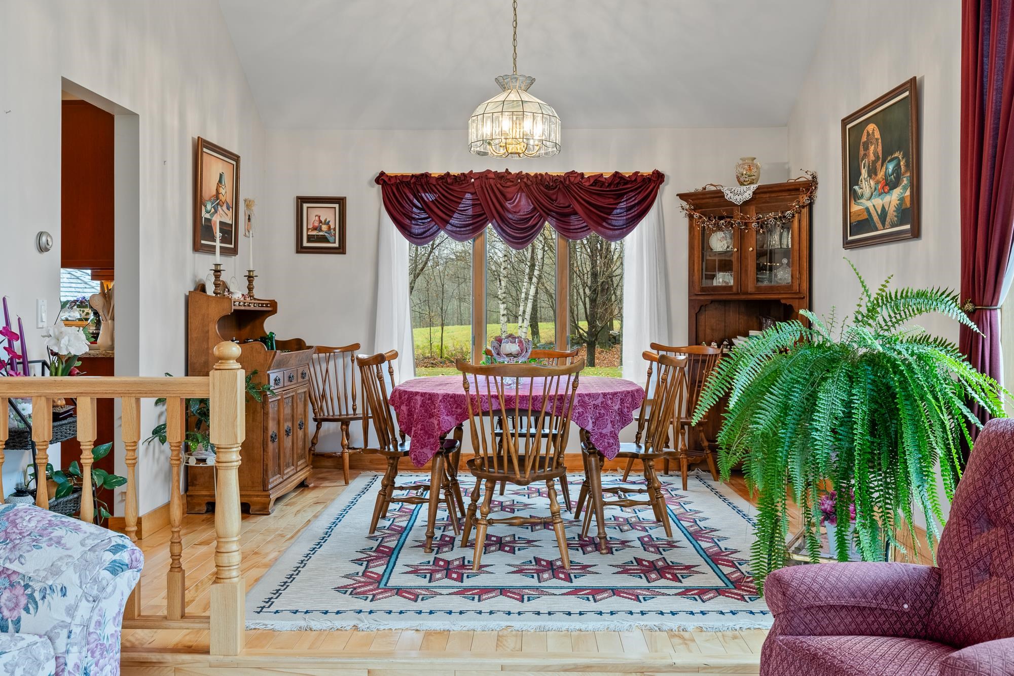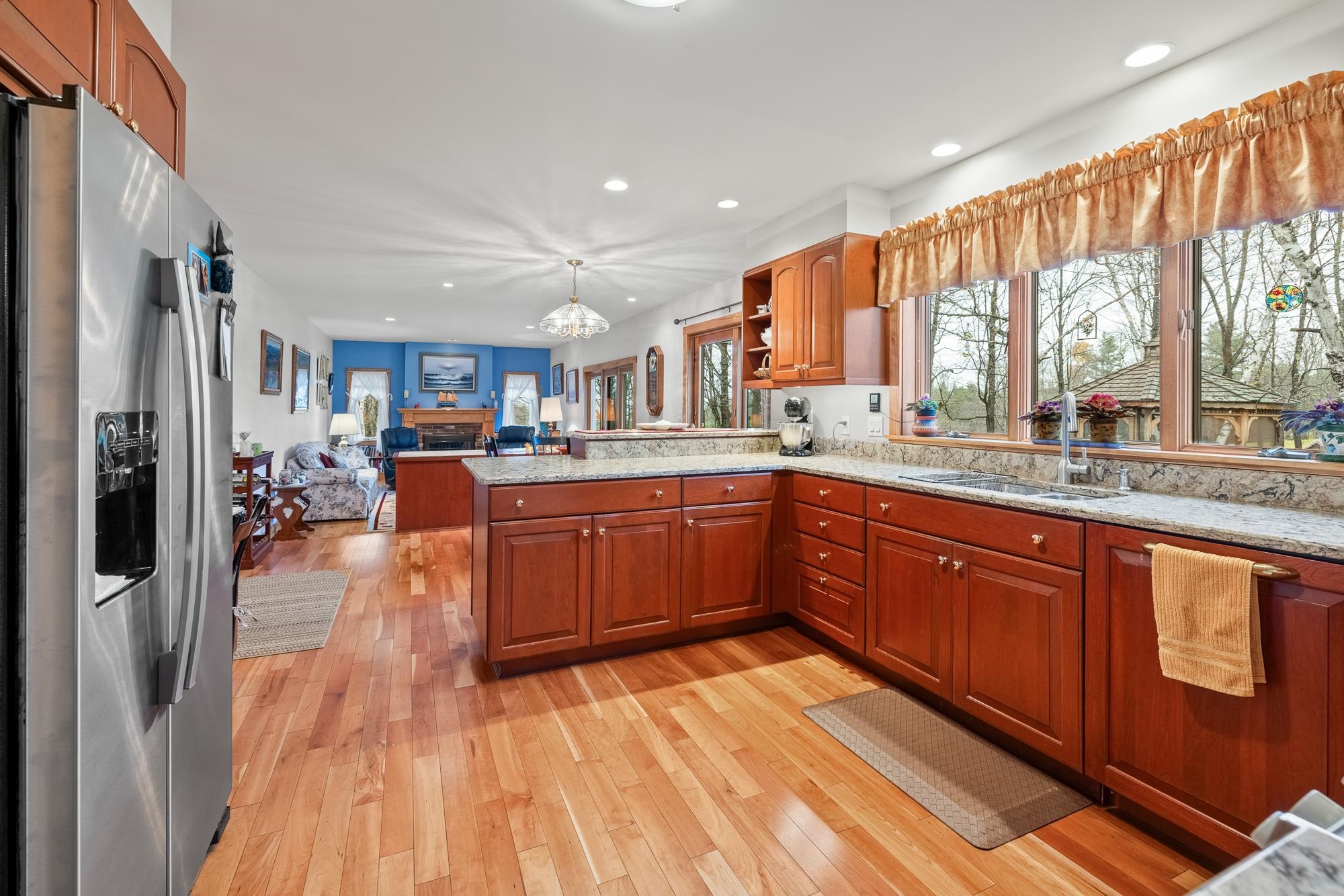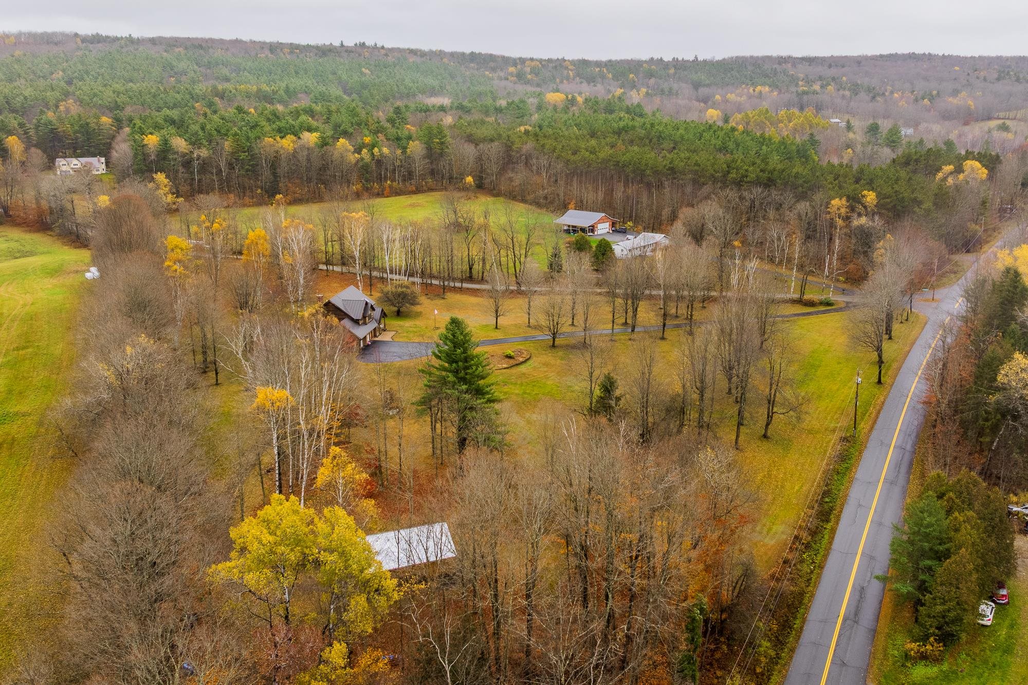 Beautiful Contemporary Home on 5.25 acres Nestled just off the paved North Road, this stunning Contemporary residence offers a perfect blend of comfort, craftsmanship, and country charm. Set on 5.25 acres of open lawn and framed by stone walls and mature trees, the property provides a private, park-like setting ideal for relaxation and outdoor enjoyment. A welcoming covered front porch leads into a bright, airy interior highlighted by cathedral ceilings, hardwood floors, and a grand open staircase. The spacious living room features a brick fireplace and large glass doors that open to a rear patio, seamlessly connecting indoor and outdoor living spaces. The kitchen is warm and functional, with cherry cabinetry, granite countertops, and an adjoining dining area; perfect for entertaining or quiet meals at home. The home’s thoughtful design includes direct entry from the attached two-car garage into the basement, offering convenience and practicality. Upstairs, generous bedrooms and well-appointed baths continue the theme of comfort and quality throughout. Outdoors, a charming gazebo sits among the trees, while an additional heated barn with a wood stove provides workshop or studio potential. Every aspect of this property has been carefully maintained and is in excellent, move-in-ready condition. Located in a peaceful rural setting yet close to town amenities, this is a home where beauty, functionality, and serenity come together.