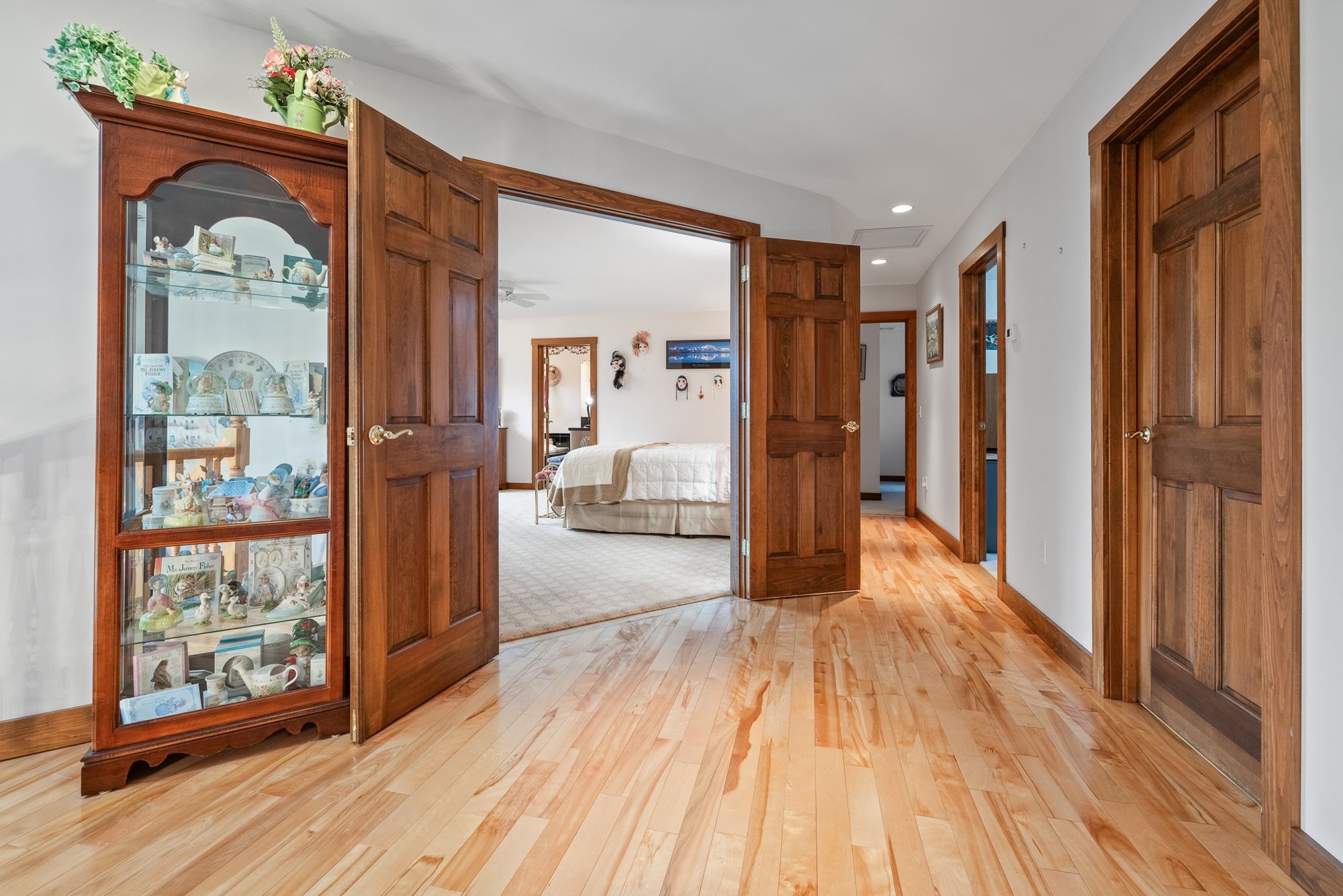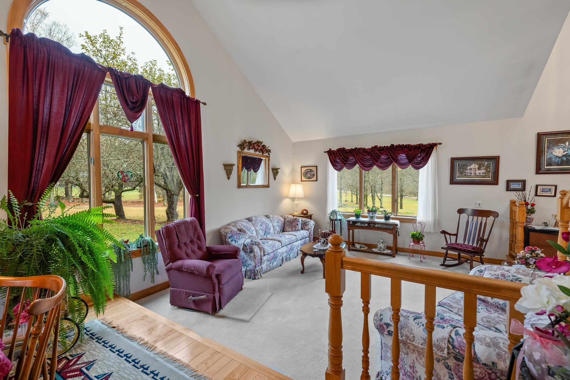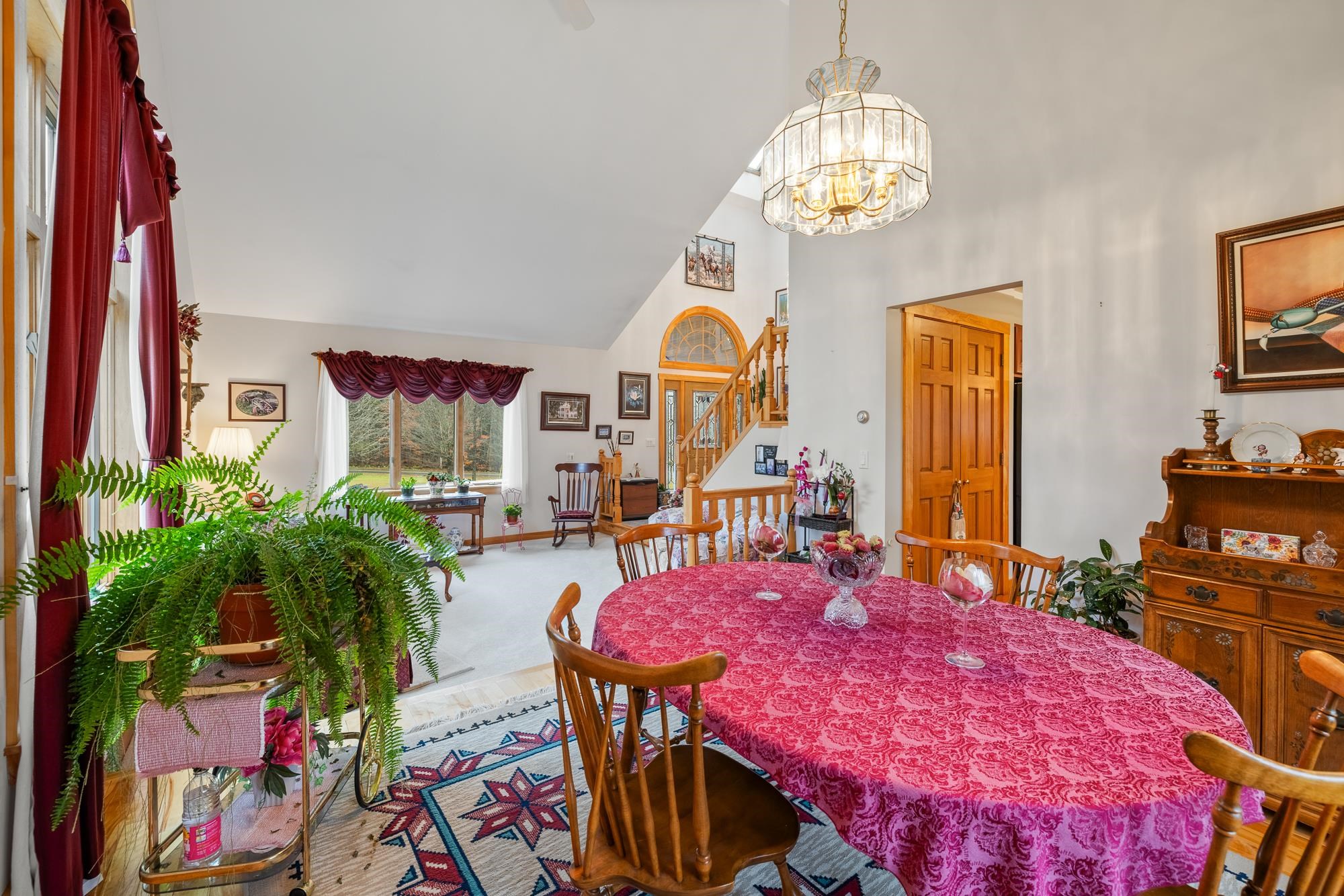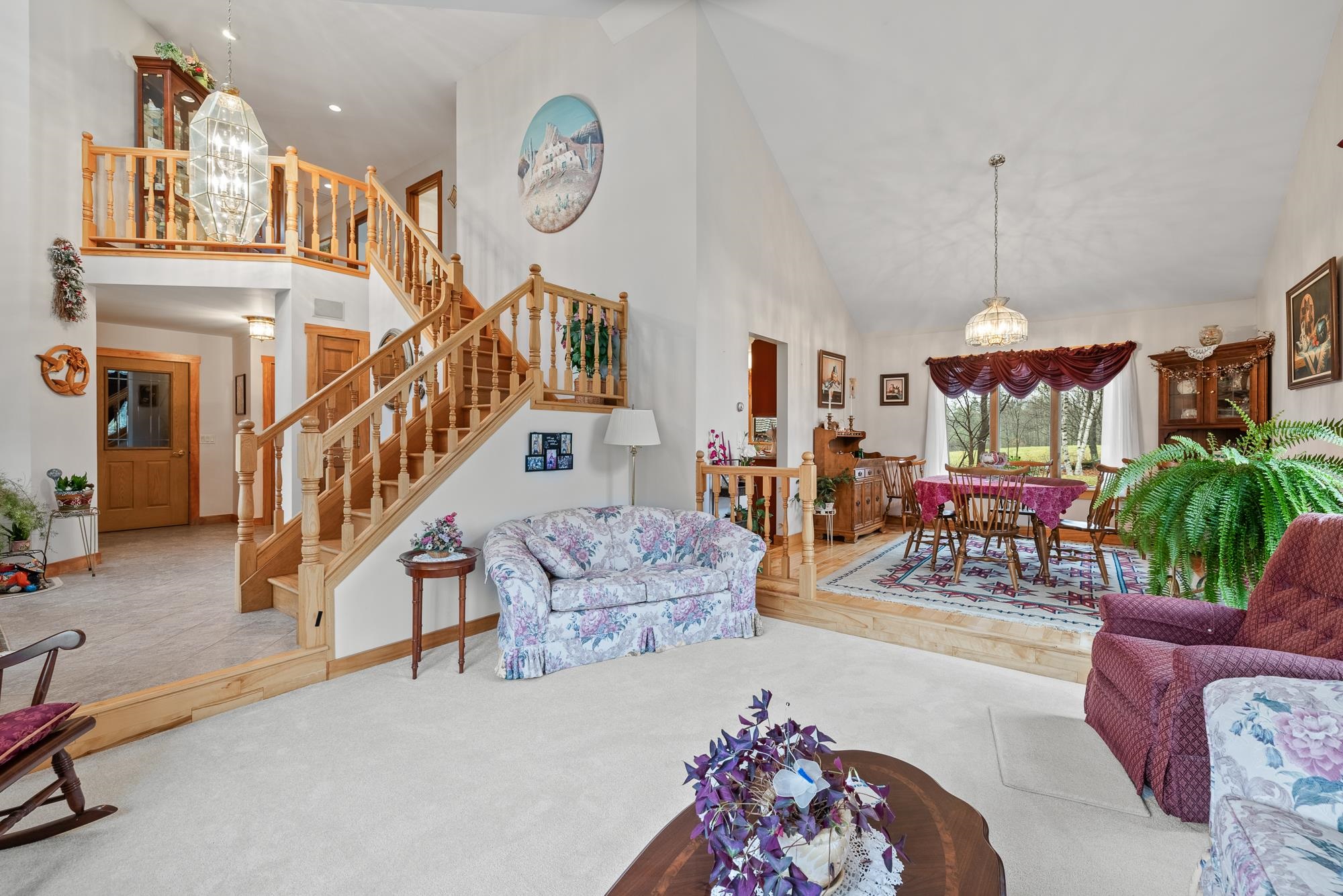 Beautiful Contemporary Home on 5.25 acres Nestled just off the paved North Road, this stunning Contemporary residence offers a perfect blend of comfort, craftsmanship, and country charm. Set on 5.25 acres of open lawn and framed by stone walls and mature trees, the property provides a private, park-like setting ideal for relaxation and outdoor enjoyment. A welcoming covered front porch leads into a bright, airy interior highlighted by cathedral ceilings, hardwood floors, and a grand open staircase. The spacious living room features a brick fireplace and large glass doors that open to a rear patio, seamlessly connecting indoor and outdoor living spaces. The kitchen is warm and functional, with cherry cabinetry, granite countertops, and an adjoining dining area; perfect for entertaining or quiet meals at home. The home’s thoughtful design includes direct entry from the attached two-car garage into the basement, offering convenience and practicality. Upstairs, generous bedrooms and well-appointed baths continue the theme of comfort and quality throughout. Outdoors, a charming gazebo sits among the trees, while an additional heated barn with a wood stove provides workshop or studio potential. Every aspect of this property has been carefully maintained and is in excellent, move-in-ready condition. Located in a peaceful rural setting yet close to town amenities, this is a home where beauty, functionality, and serenity come together.