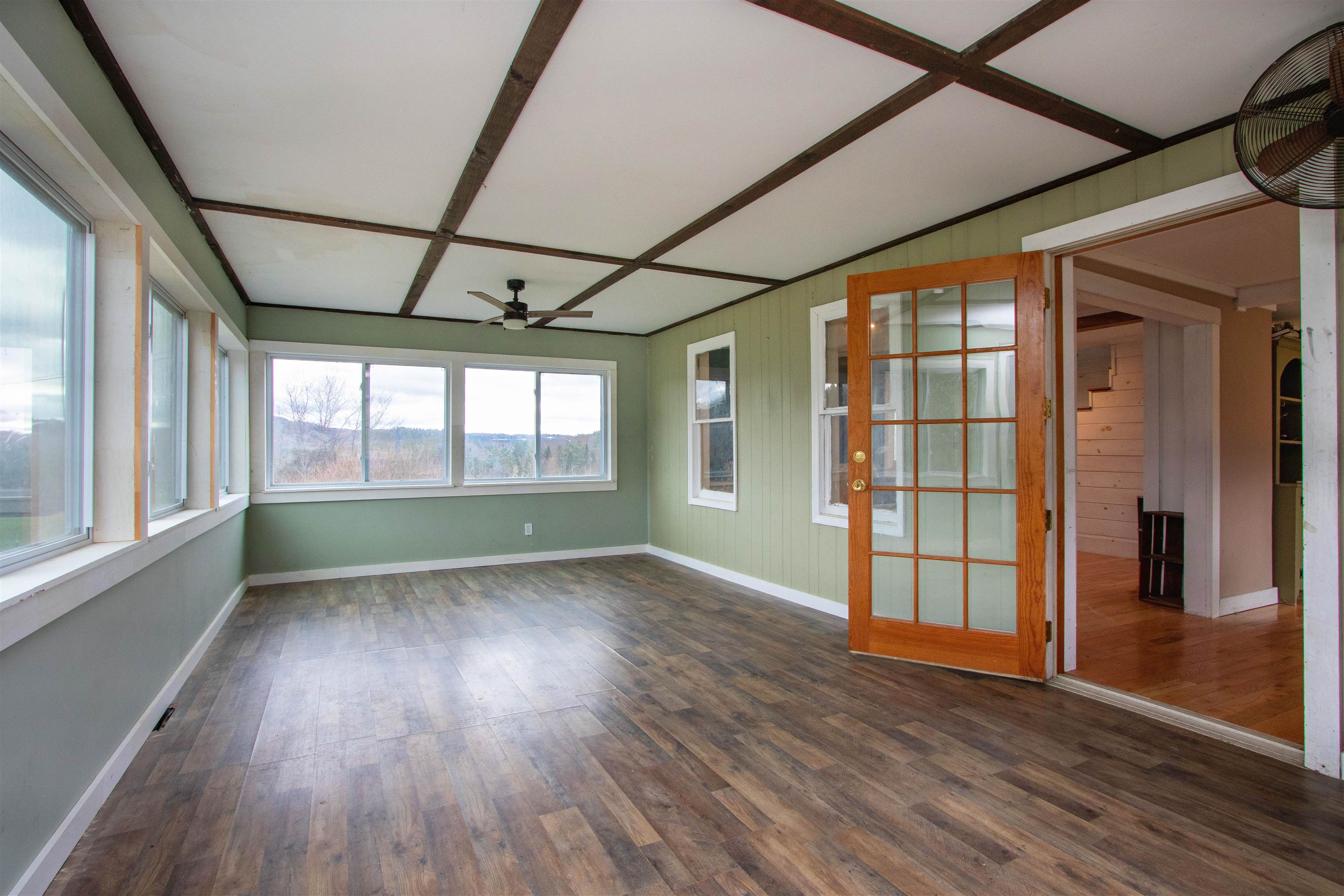 This super charming St. Johnsbury home sits on 4.25 acres and has been thoughtfully transformed by its owners, opening up key spaces and creating a very cool blend of modern comfort and vintage Vermont character. The home features a bright, open kitchen with slate floors, a breakfast bar, and a generous pantry, all flowing into the dining area with sliding doors leading to the backyard. Just beyond is an extra large enclosed porch, a favorite spot for seasonal meals, relaxing, and soaking in the pretty views. The main level also offers a comfortable living room, a mudroom with laundry, a handy dog washing station, and a full bath. Upstairs are three bedrooms and an additional full bath. An attached two car garage and a durable metal roof add to the home’s everyday ease. Outside, the small garage or barn with water and open spaces is ideal for those who enjoy having animals or want extra room for projects. The quiet country road gives a peaceful feel while still being just a few miles from Route 2 for an easy commute.
