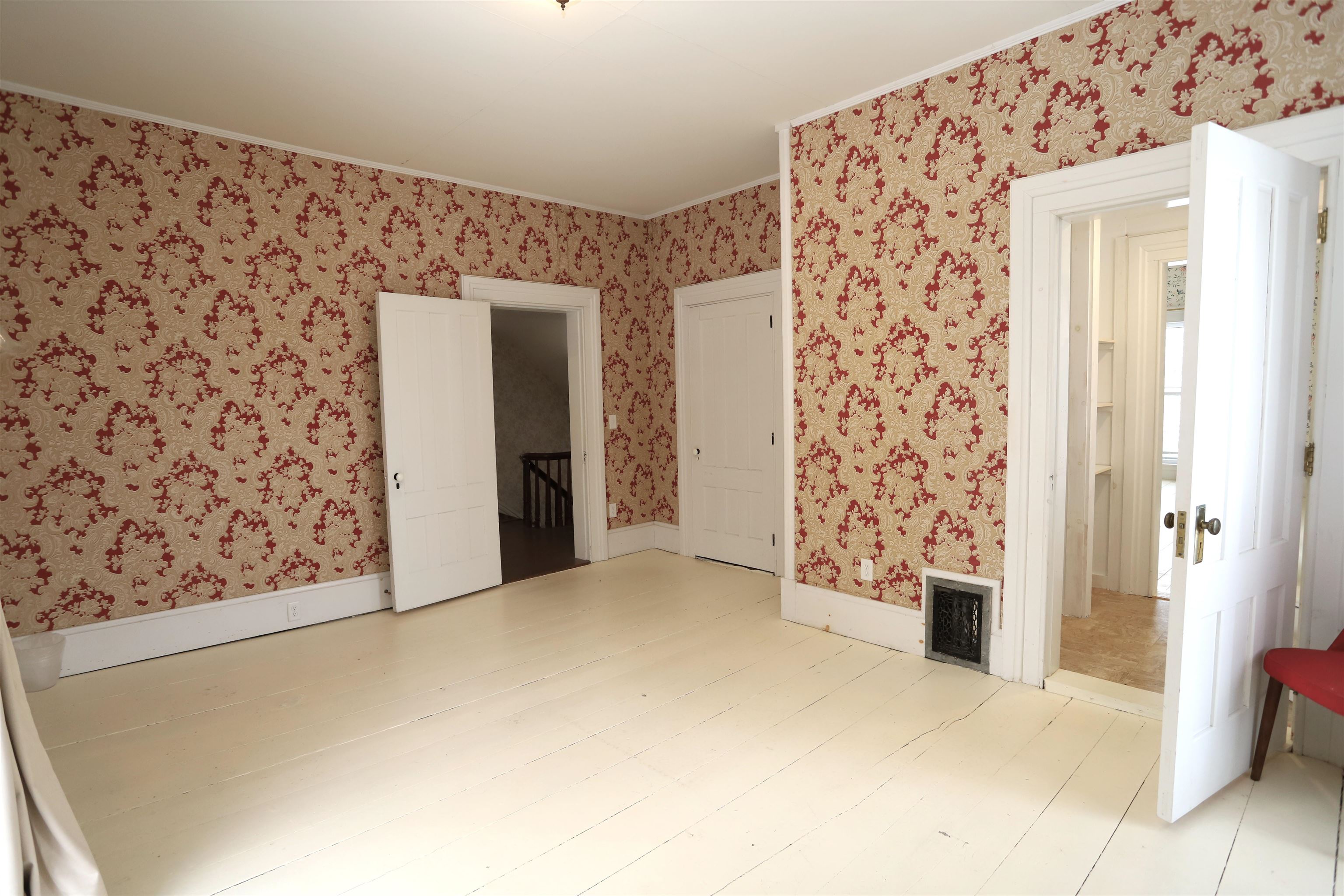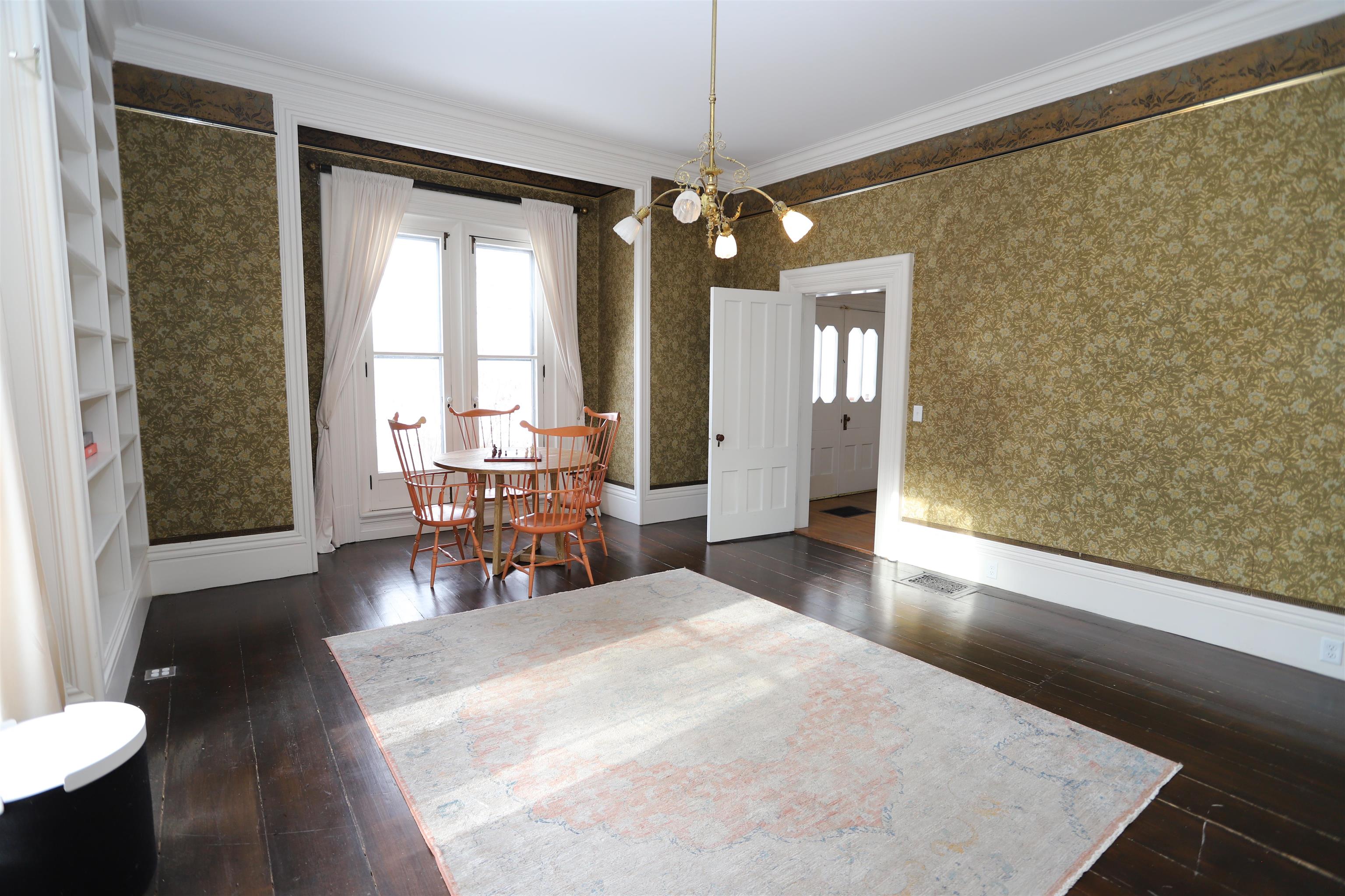Located in the heart of the Village of Derby Line, directly across from Baxter Park, this grand 1860s five-bedroom historic home blends timeless character with thoughtful modern updates. Recent renovations include a custom, contemporary kitchen featuring quartz countertops, tiled flooring, an oversized island, a coffee/wet bar, and double French doors that open to a sunny south-facing deck and lawn. Additional upgrades—such as a 200-amp electrical service, hybrid water heater, updated plumbing, and more—provide comfort and efficiency. The main level offers expansive common areas with high ceilings, including the kitchen, formal dining room, family room, library, a half bath, and a primary ensuite. Upstairs, you'll find four additional bedrooms connected by Jack-and-Jill bathrooms, along with another ¾ bath. If more living space is desired, the partially finished former maids’ quarters provide an excellent opportunity for expansion. The attached garage, barn, and loft areas offer abundant storage as well. Conveniently situated within walking distance of the Canadian border, close to I-91, and just a short drive to Derby and Newport amenities, this property delivers historic charm, modern convenience, and a truly exceptional location. Selling partially furnished and in as-is condition.