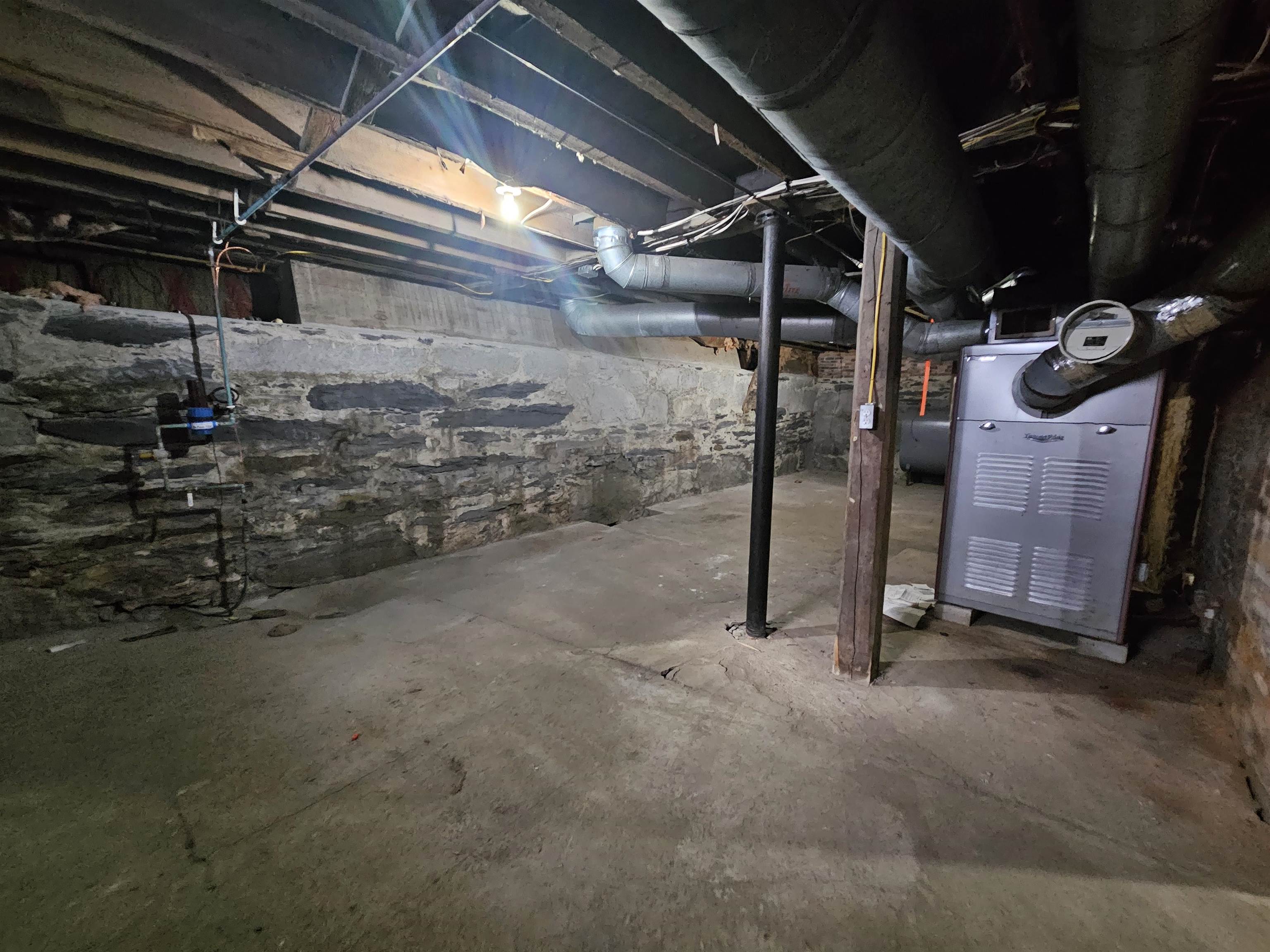 - Concrete, Concrete Floor, Unfinished, Basement Stairs