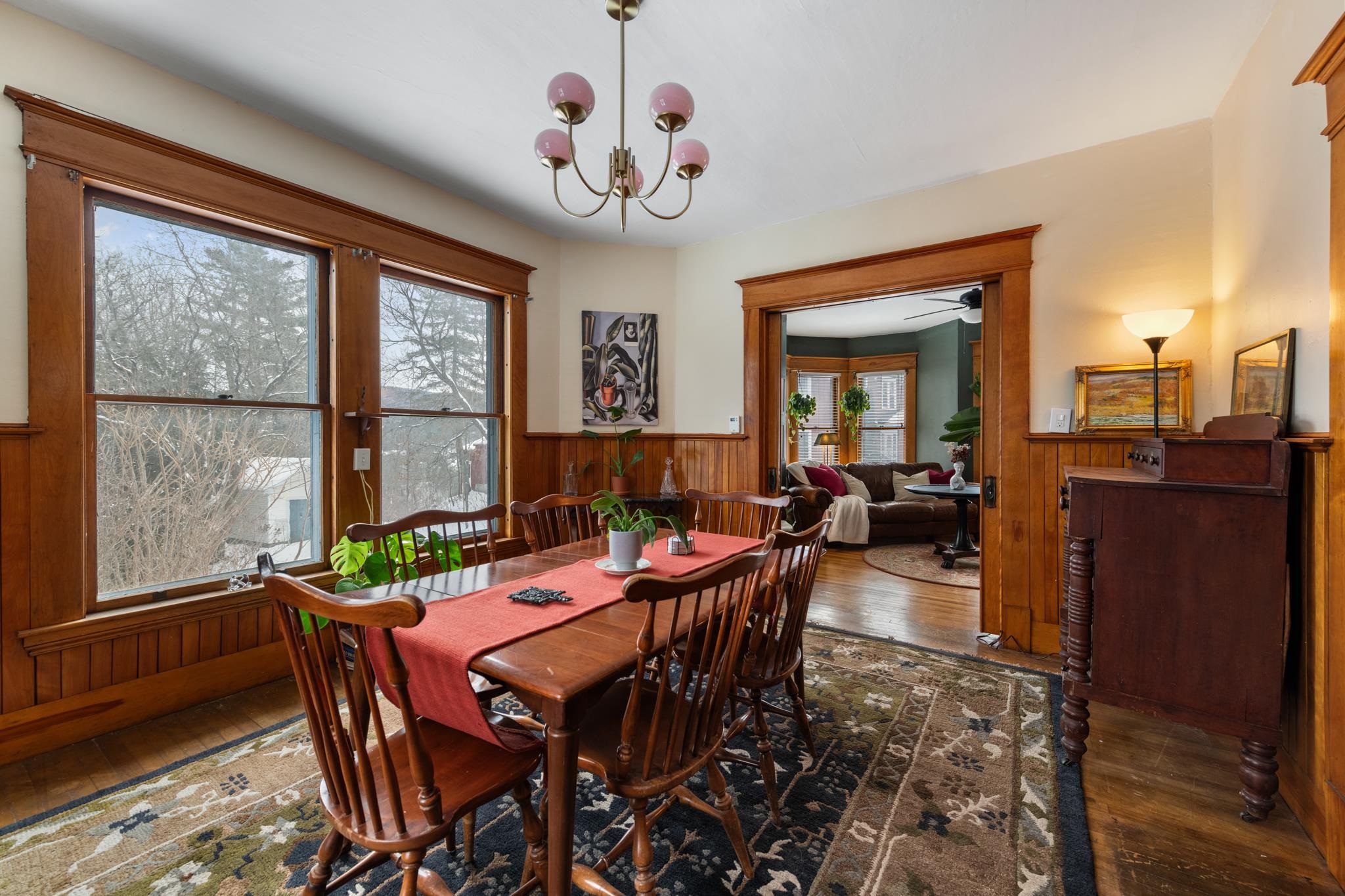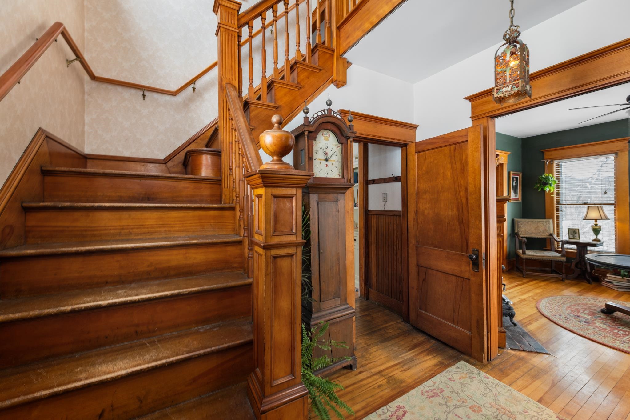 *Showings begin at the open house on Sunday 12-21-2025 10am to 1pm!* Victorian Home on the Hill with Views of Downtown! 4 Bedroom, 2.5 Bathroom, 2, 115 Square Feet on .52 acres, built in 1910 for the Eastbrook family, this home’s antique charm is maintained with a lot of the original woodwork, cabinetry, doors and built-ins, yet it has also recently been updated with tasteful and contemporary renovations, such as a newly designed kitchen, new appliances and new bathrooms. Functionally, there is a new roof and the exterior has been painted. The first floor is a cozy living area with a living room, dining room, kitchen, laundry room, and a half bath. The second floor has three spacious bedrooms and a full bathroom. Previously an in-law apartment, the third floor consists of the primary suite, complete with a 3/4 bathroom, a wet bar, and sitting room. It could be converted back to an in-law apartment without much trouble. Enjoy the conveniences of an in-town location without the feeling of being overcrowded.