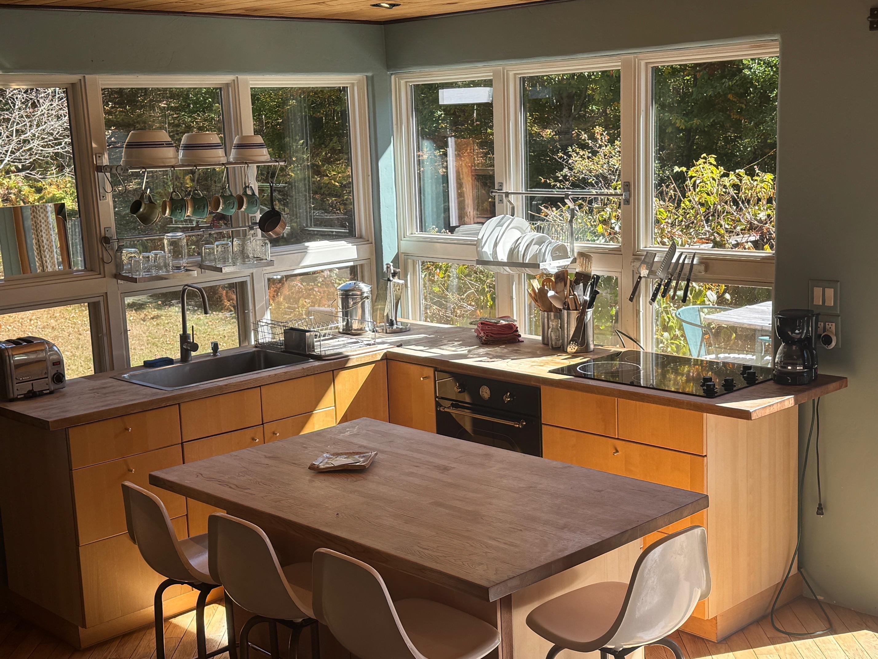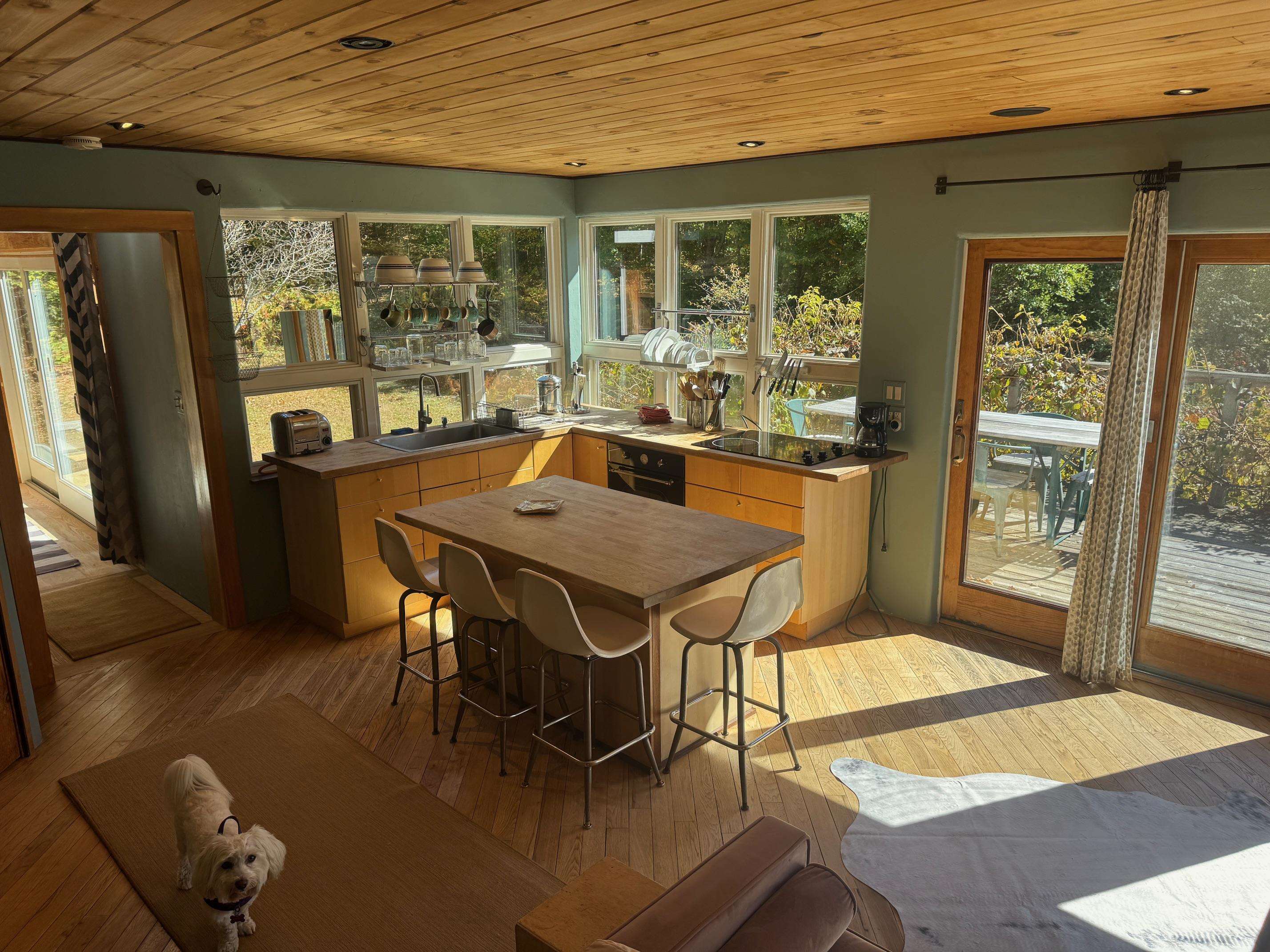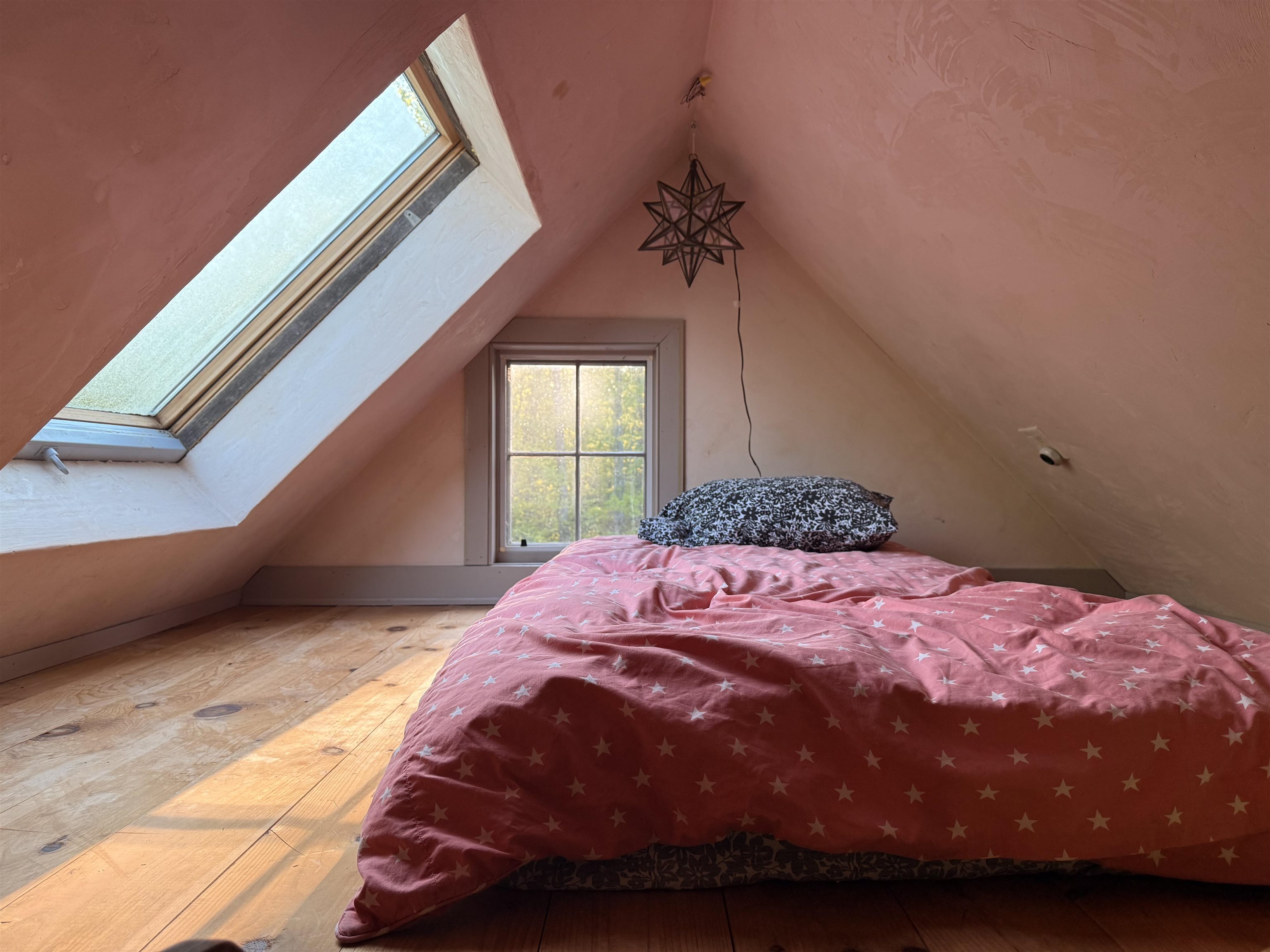This lovingly designed and maintained, energy efficient modern cottage is perched on a private, forested knoll and features incredible light filled interior spaces, wrap around deck, cozy bedrooms, two skylit lofts, and an airy living room. The 9-acre lot offers complete privacy, peace & quiet and includes a brook, nice open yard surrounded by mature woods, perennial gardens, fruit trees, and berries. Wrap around windows in living area makes inside and outside blend, bringing nature into your living space year-round. With high-speed internet/Wi-Fi and easy access to Plainfield, Montpelier & Barre, it’s a perfect blend of nature and convenience. Large deck allows for 3 season indoor/outdoor living. Passive Solar design, EV car charger set up at driveway, high efficiency space heater and on-demand water heater create a perfect base for a low carbon footprint lifestyle. Clear skies are perfect for stargazing from your stone fire pit. Come take a look at this Gem nestled in the rolling hills of Central Vermont before somebody else snaps it up. Showings start Friday, 10/10 with Open House Saturday, 10/11, 10am-1pm.