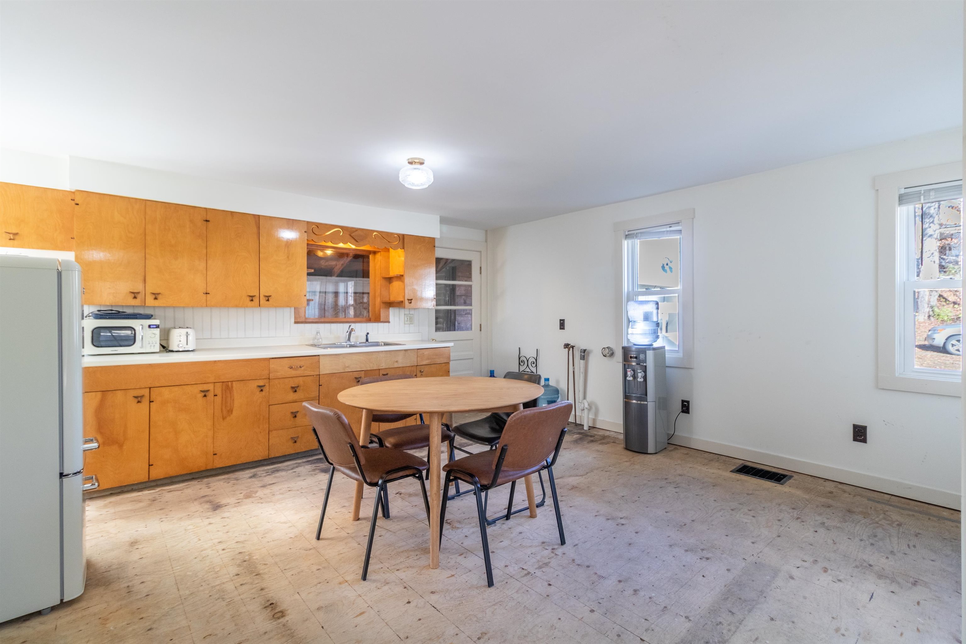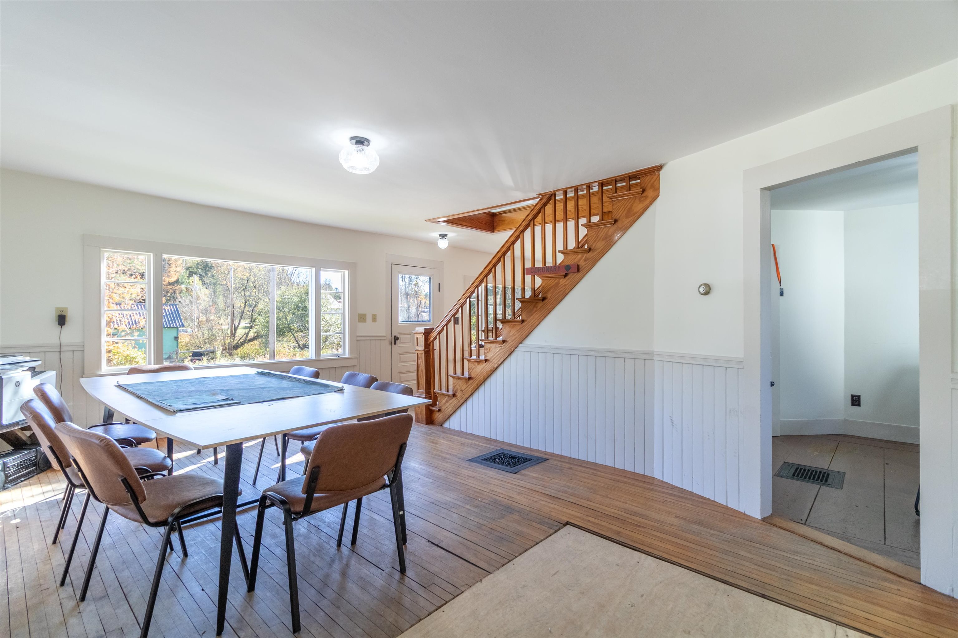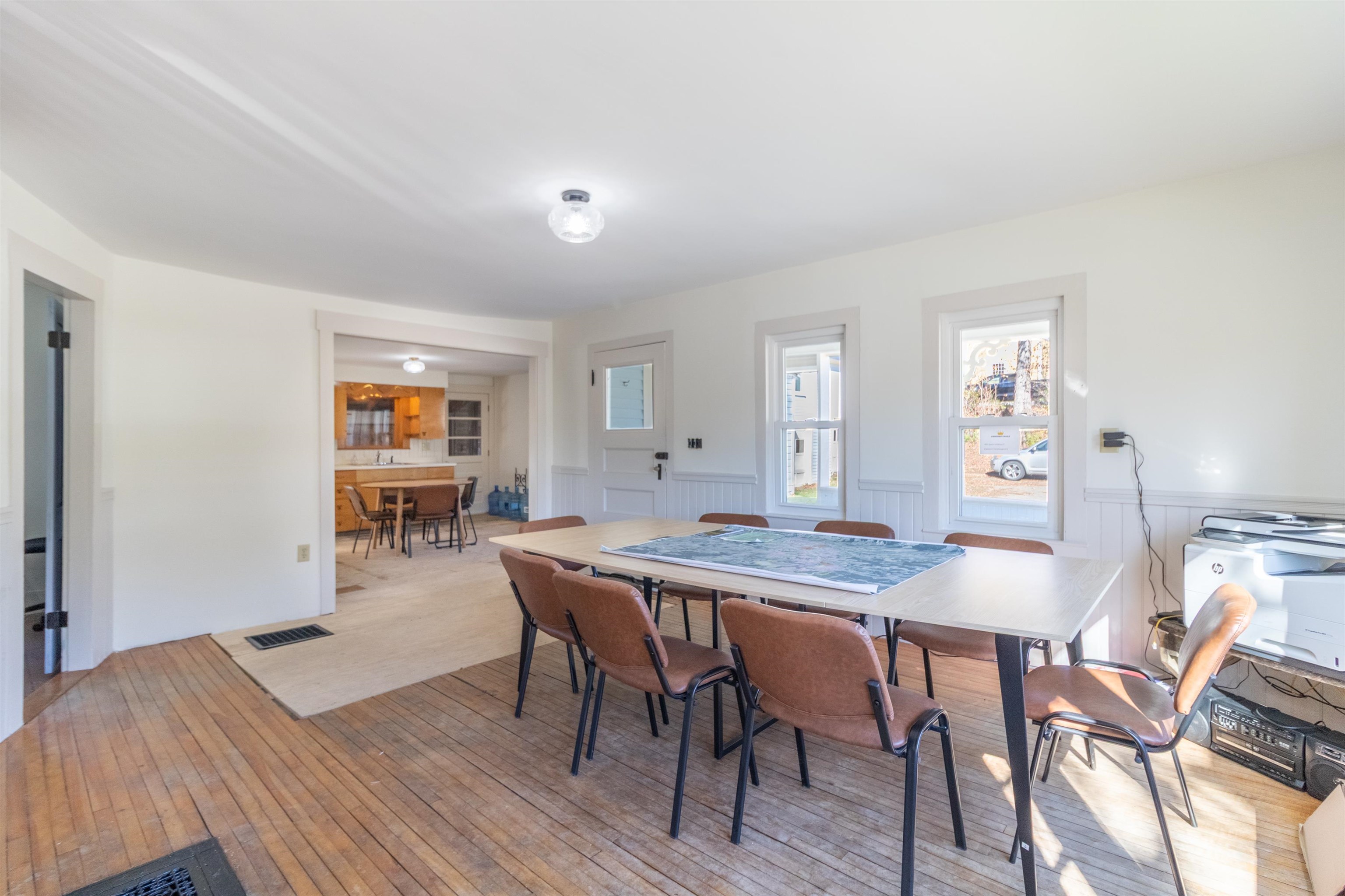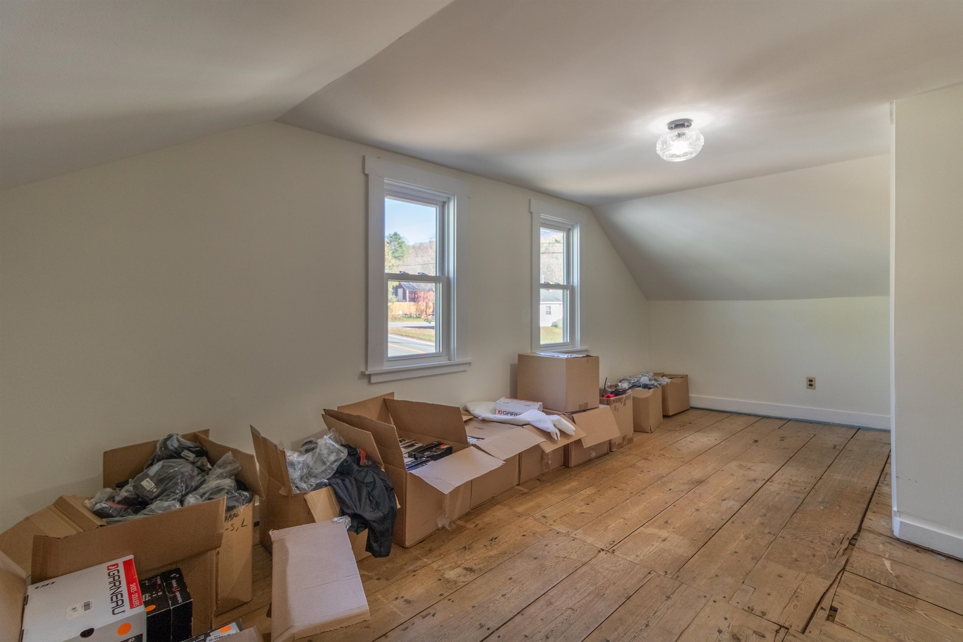 This is a 3 br. residence located in the center of East Burke village with walking access to all it has to offer. The house has had much renovation work completed a full concrete basement done, walls are sheetrock not lathe and plaster newer kitchen cabinets and bathrooms were done some time ago although upstairs is original. A lot of new windows have been installed. The second garage has a one bedroom apartment upstairs and this needs renovation.
