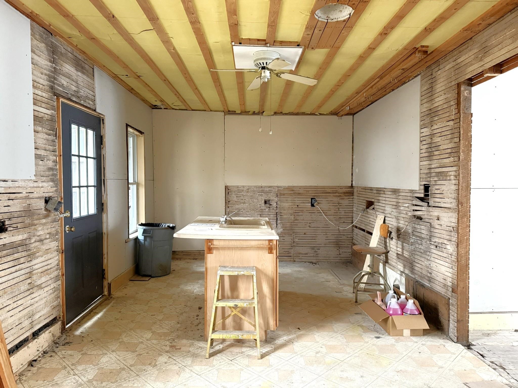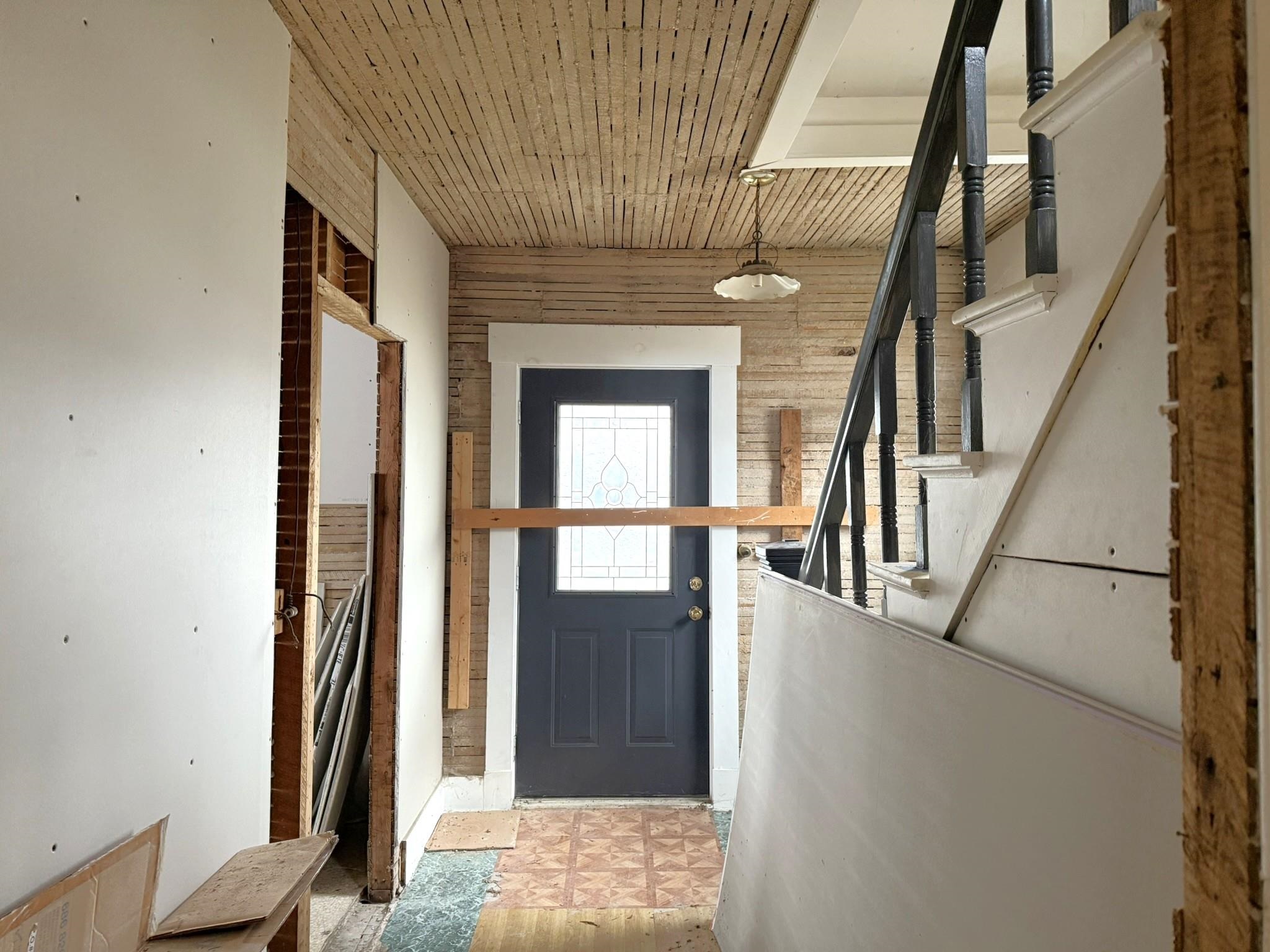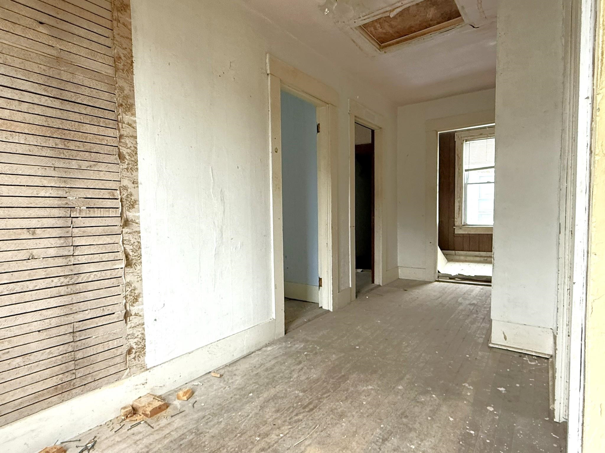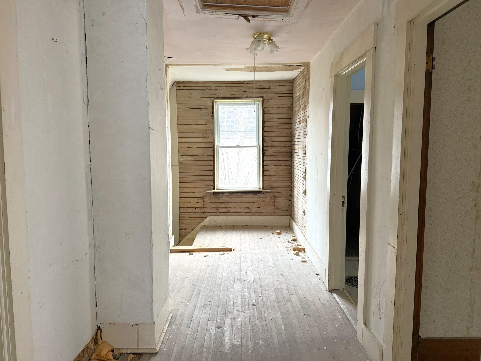 Opportunity knocks for the right buyer! This property, purchased a couple of years ago at a town tax sale, is now being offered as a cash sale. Please consult your attorney and/or lender for other individual purchase options if available. Situated on a small village corner lot in a side-street residential neighborhood, this home offers plenty of potential for those ready to take on a full renovation project. Power and municipal water & sewer have been disconnected, so the buyer will need to complete the reconnection process. The home features a spacious first floor with a front foyer, a large kitchen, dining room, living room, and a sizable room ideal for a full bath with laundry hookups. Upstairs, you’ll find four bedrooms plus a bonus room that could easily be finished as an additional bath. A front covered porch, side enclosed porch, and an attached one-car garage with room for storage add to the home’s appeal. A full basement provides even more space for storage and utilities. The oil tank, hot air furnace and hot water tank are in unknown condition. The house has good bones and a partial start on renovations, ready for your vision to bring it back to life. Being sold as is, including all on-site building materials, kitchen cabinets that may be reused, and all personal property remaining on the premises will convey with sale. This is a great opportunity for investors, contractors, or anyone eager to create their own home from the ground up in a convenient village setting.