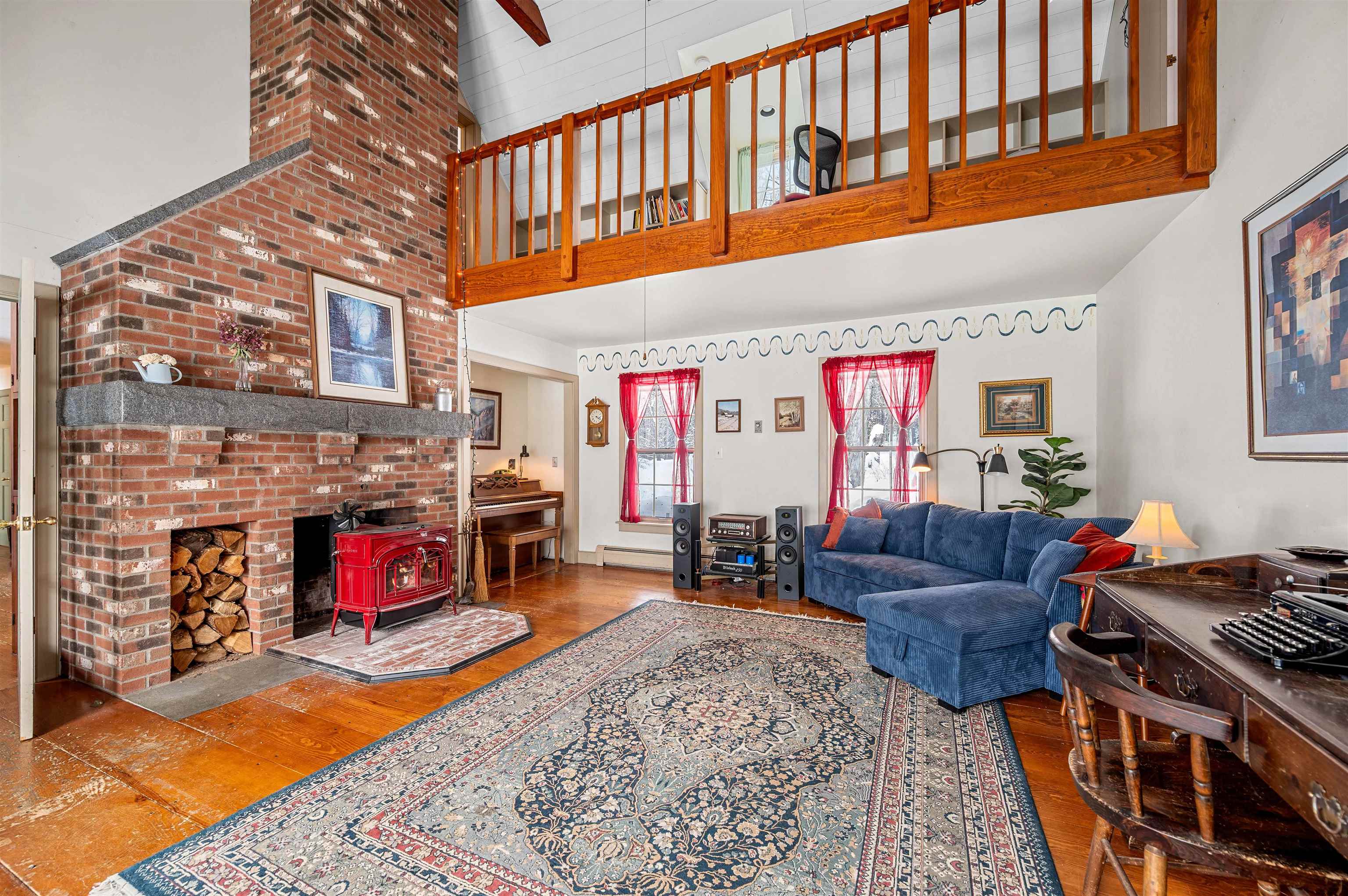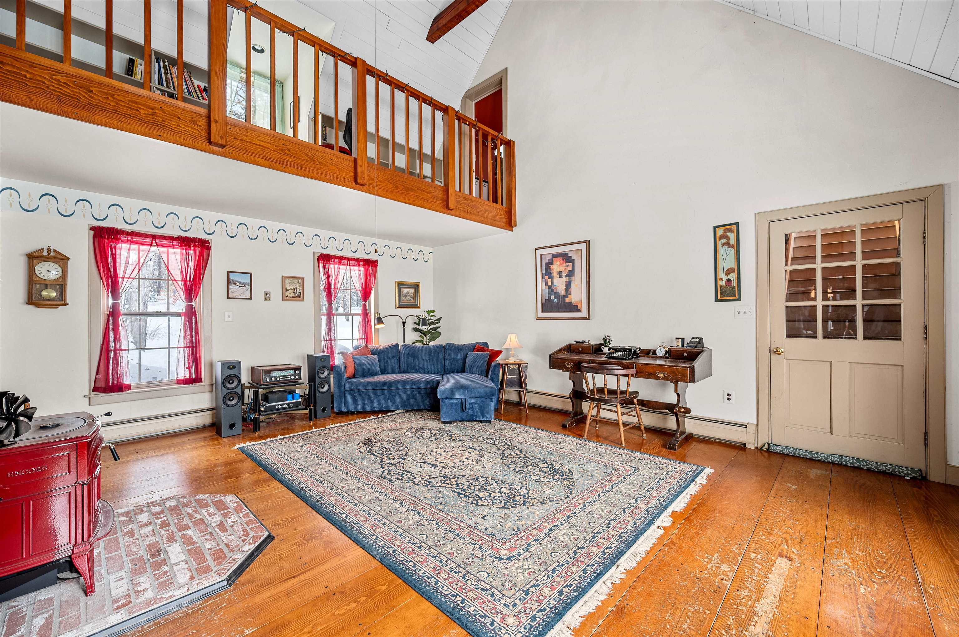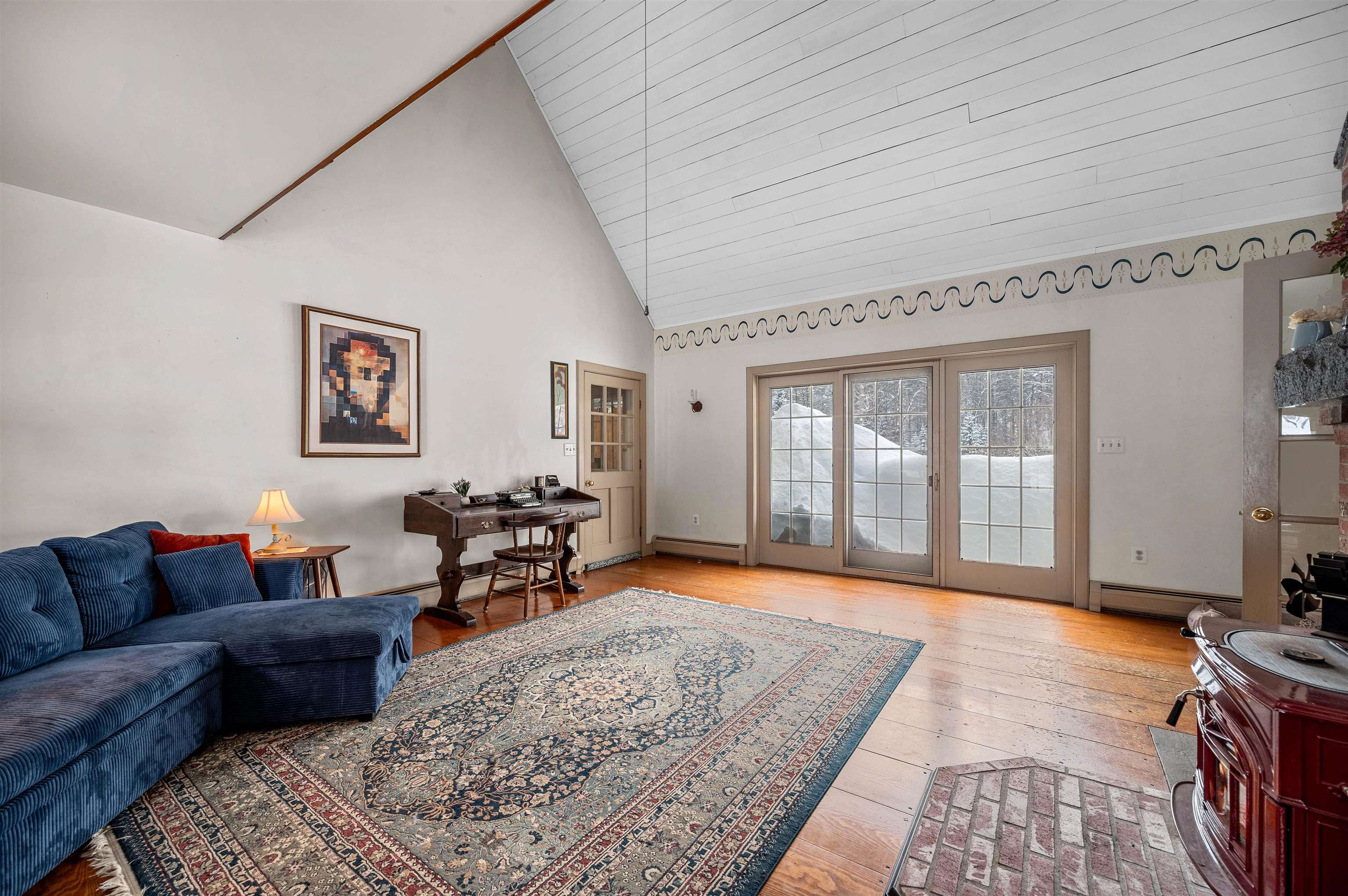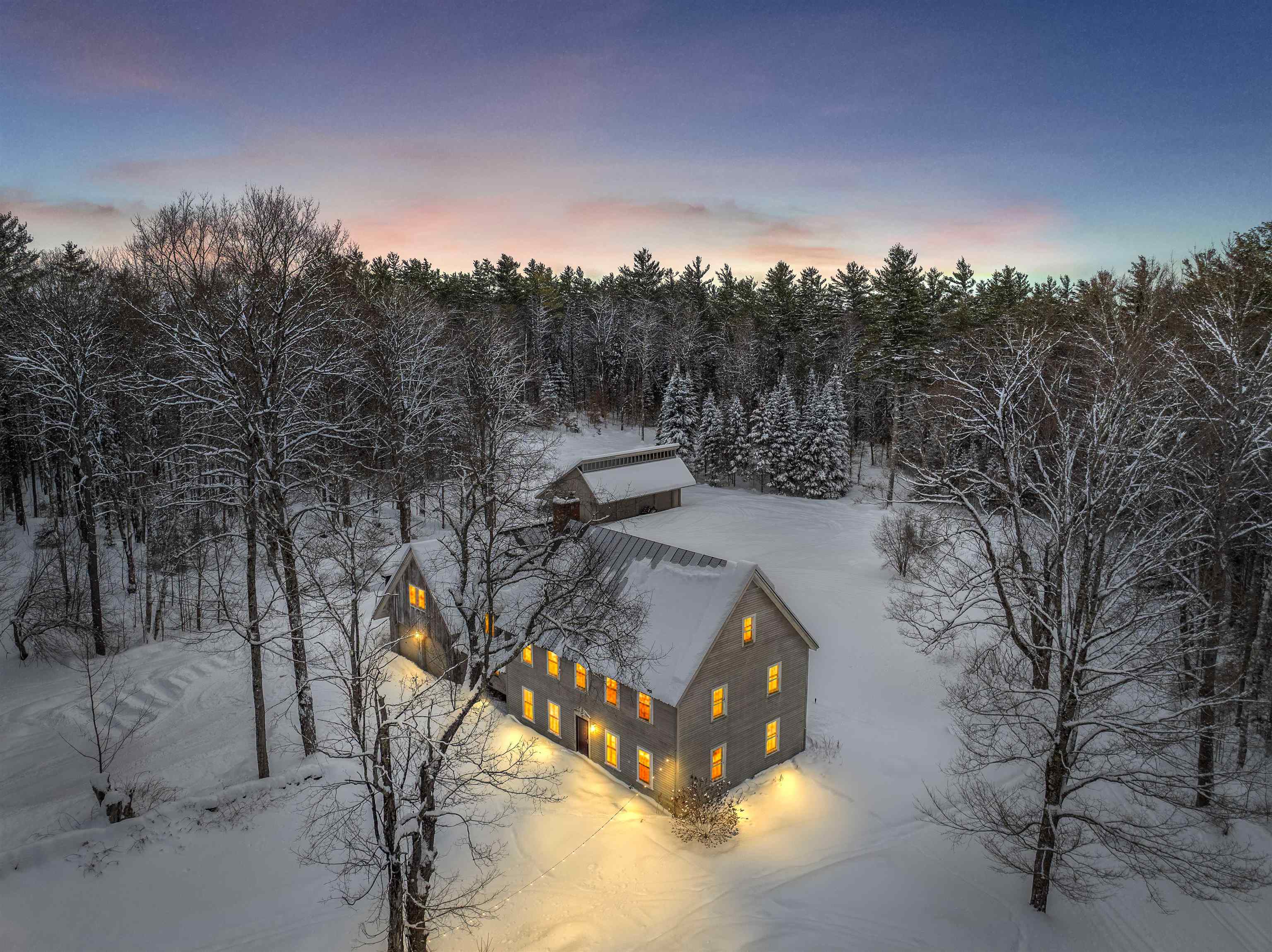 If your soul craves quiet beauty and your creative side needs space to roam, this 34+ acre Vermont retreat might just be your next great love story. Tucked at the end of a long driveway and designed by Princeton architect Bill Thompson, the home is perfectly placed to soak in southern light and celebrate its wooded surroundings, with winding stone walls hinting at the land's long agricultural history. Inside, softwood floors guide you through a warm, light-filled layout. The eat-in kitchen is built for real living, with a generous island, separate SubZero fridge and freezer, and a brand-new rangetop ready for your next signature dish. A cathedral-ceilinged den with a new enameled Vermont Castings woodstove insert makes winter evenings something to look forward to, while the front-to-back living room opens to an artistic stone patio made for stargazing or morning coffee. Upstairs, the primary suite includes a peaceful reading or dressing nook, and two more generous bedrooms offer space for guests, work, or play. Need more room to create? A massive 24’x36’ studio above the garage is your blank canvas. For tinkerers, hobbyists, or entrepreneurs, there’s a four-bay barn with loft storage providing even more flexibility. Plus, EC Fiber high-speed internet keeps you connected, even when you're surrounded by trees instead of traffic.