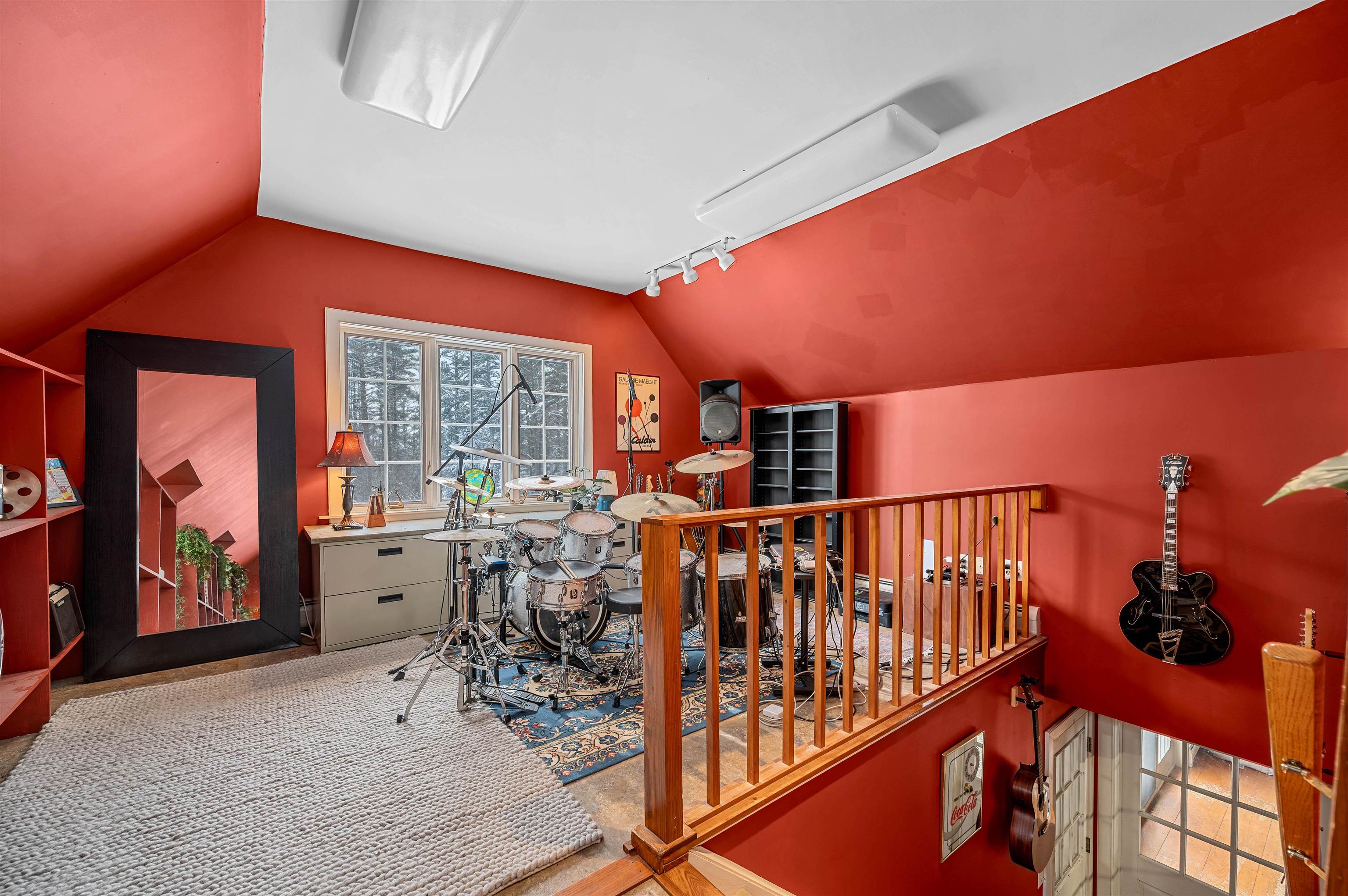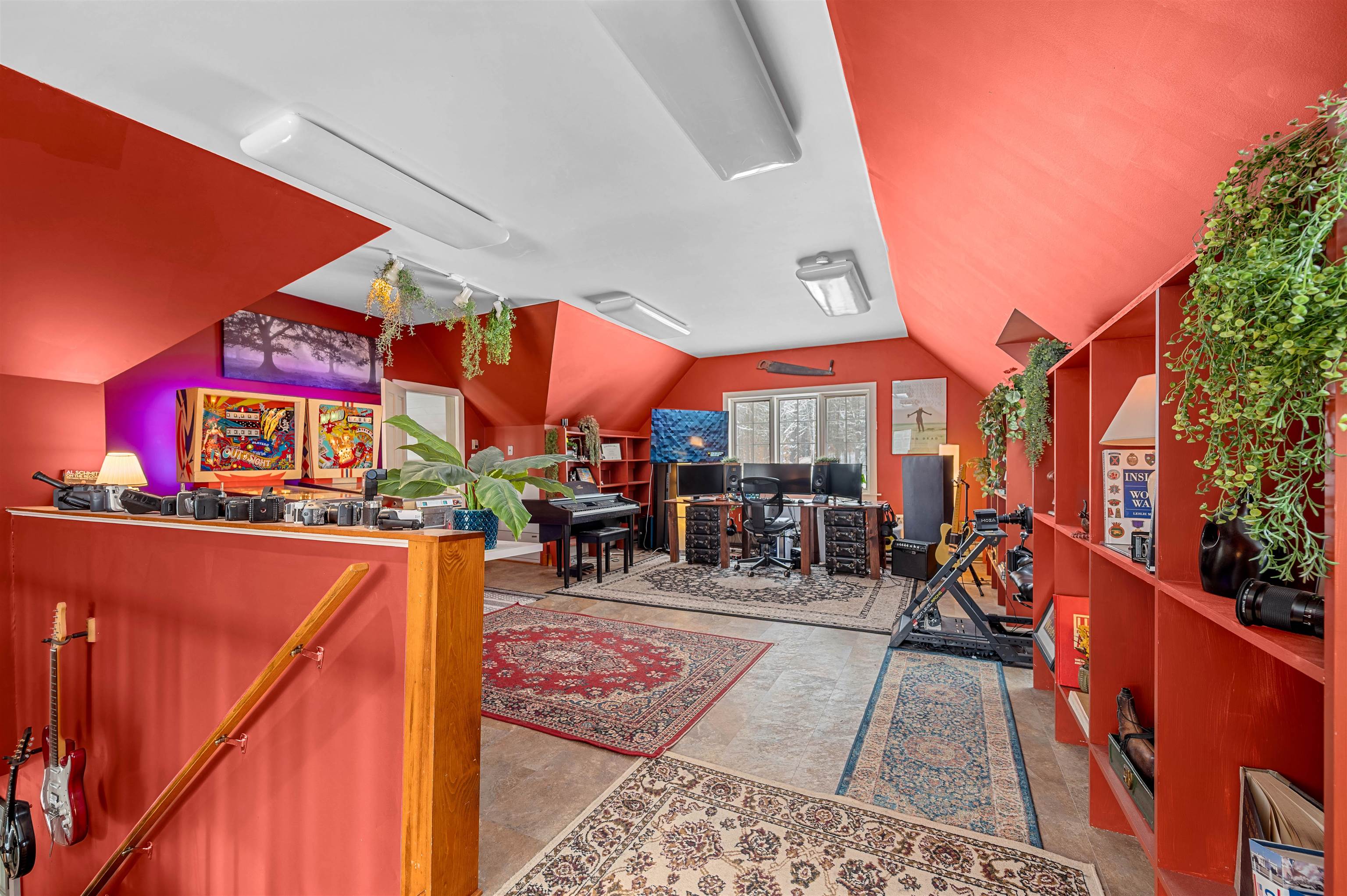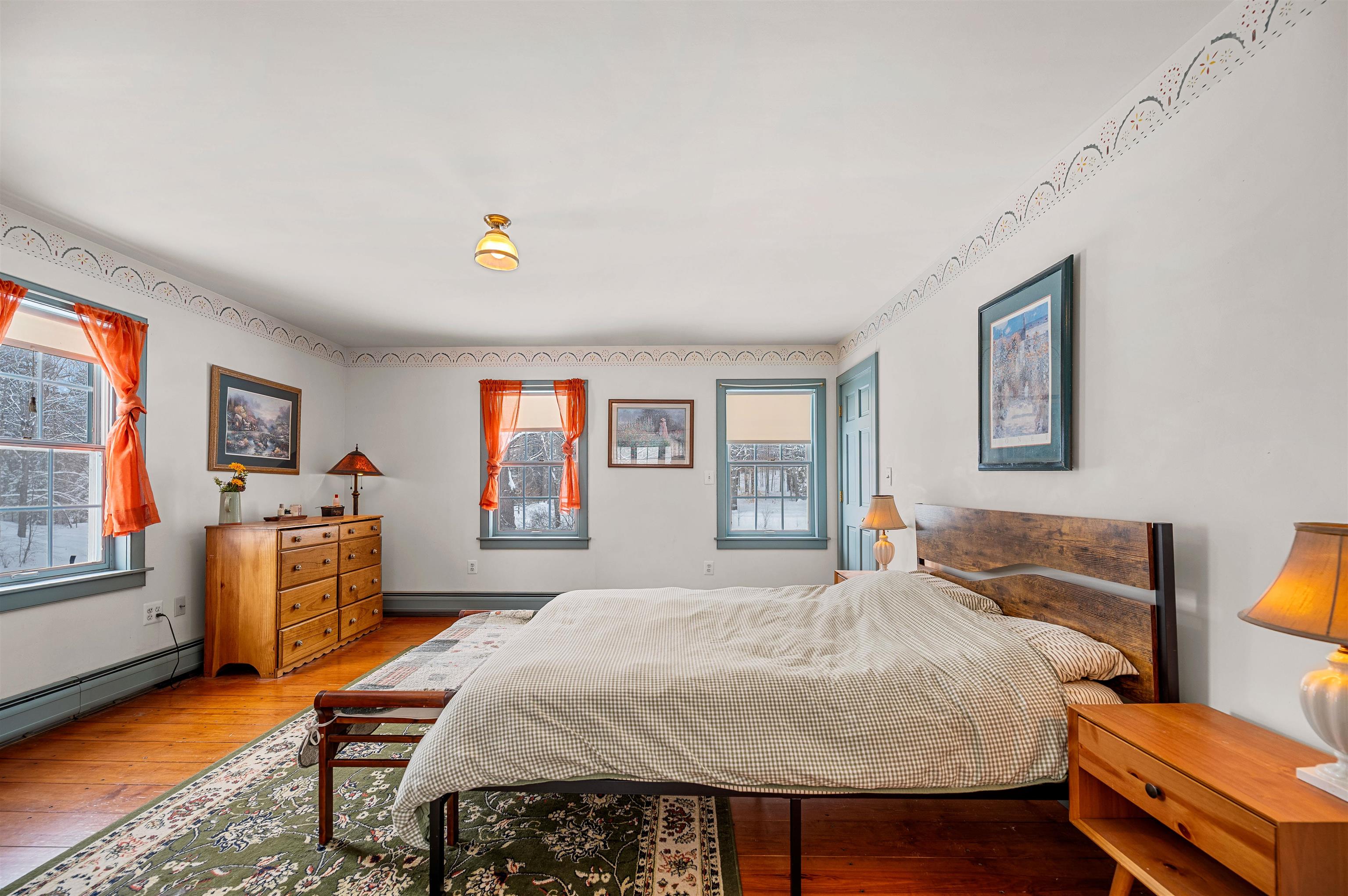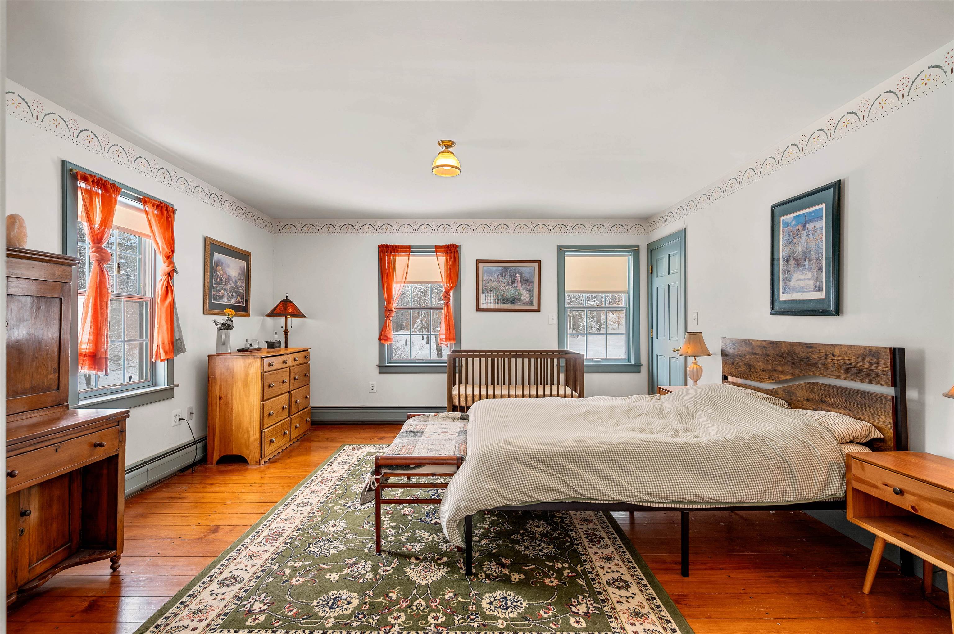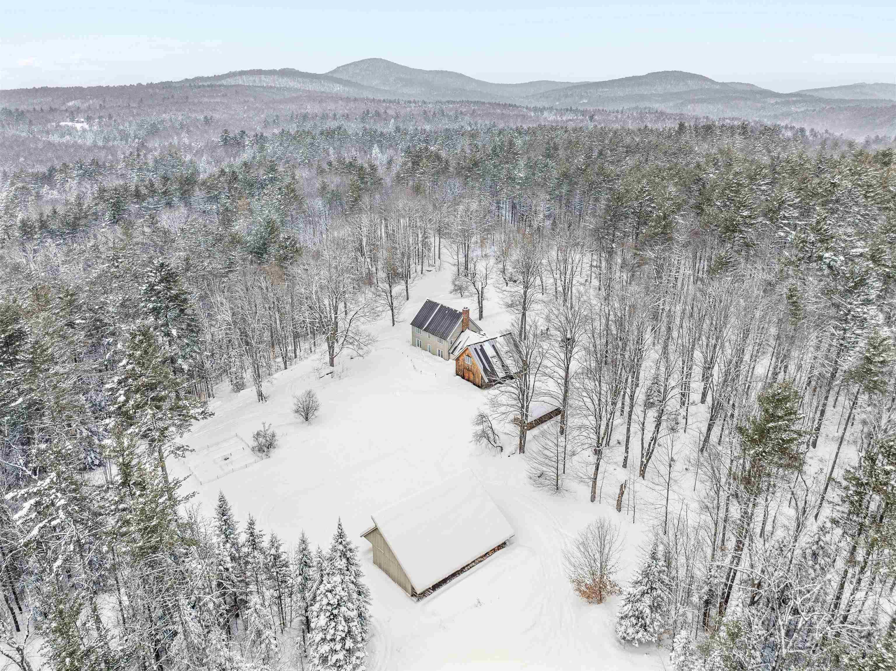 If your soul craves quiet beauty and your creative side needs space to roam, this 34+ acre Vermont retreat might just be your next great love story. Tucked at the end of a long driveway and designed by Princeton architect Bill Thompson, the home is perfectly placed to soak in southern light and celebrate its wooded surroundings, with winding stone walls hinting at the land's long agricultural history. Inside, softwood floors guide you through a warm, light-filled layout. The eat-in kitchen is built for real living, with a generous island, separate SubZero fridge and freezer, and a brand-new rangetop ready for your next signature dish. A cathedral-ceilinged den with a new enameled Vermont Castings woodstove insert makes winter evenings something to look forward to, while the front-to-back living room opens to an artistic stone patio made for stargazing or morning coffee. Upstairs, the primary suite includes a peaceful reading or dressing nook, and two more generous bedrooms offer space for guests, work, or play. Need more room to create? A massive 24’x36’ studio above the garage is your blank canvas. For tinkerers, hobbyists, or entrepreneurs, there’s a four-bay barn with loft storage providing even more flexibility. Plus, EC Fiber high-speed internet keeps you connected, even when you're surrounded by trees instead of traffic.