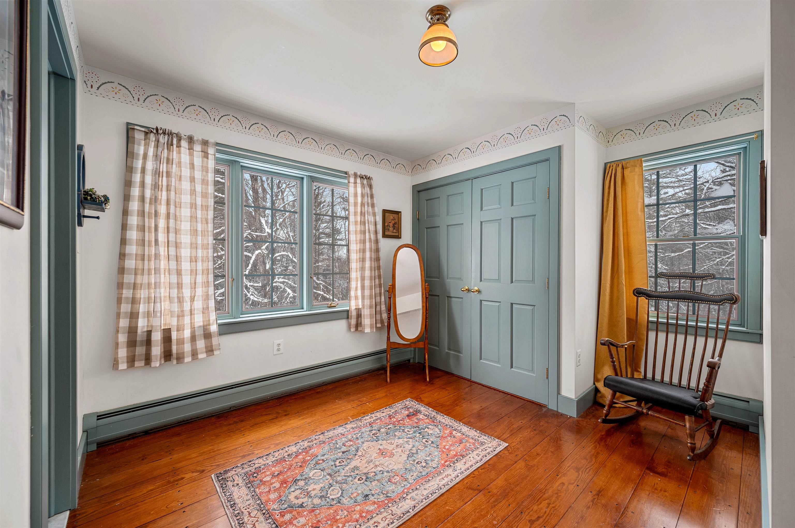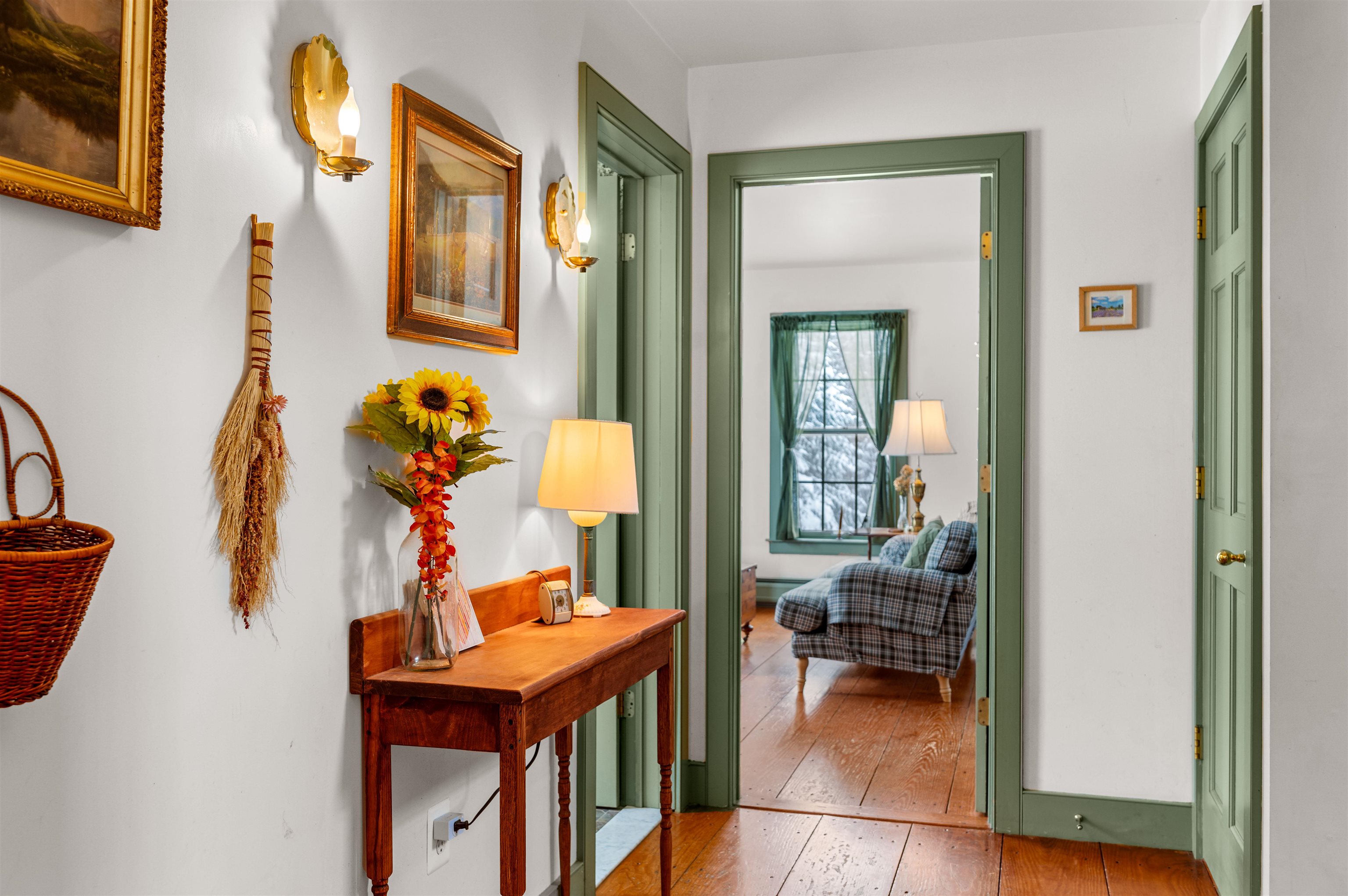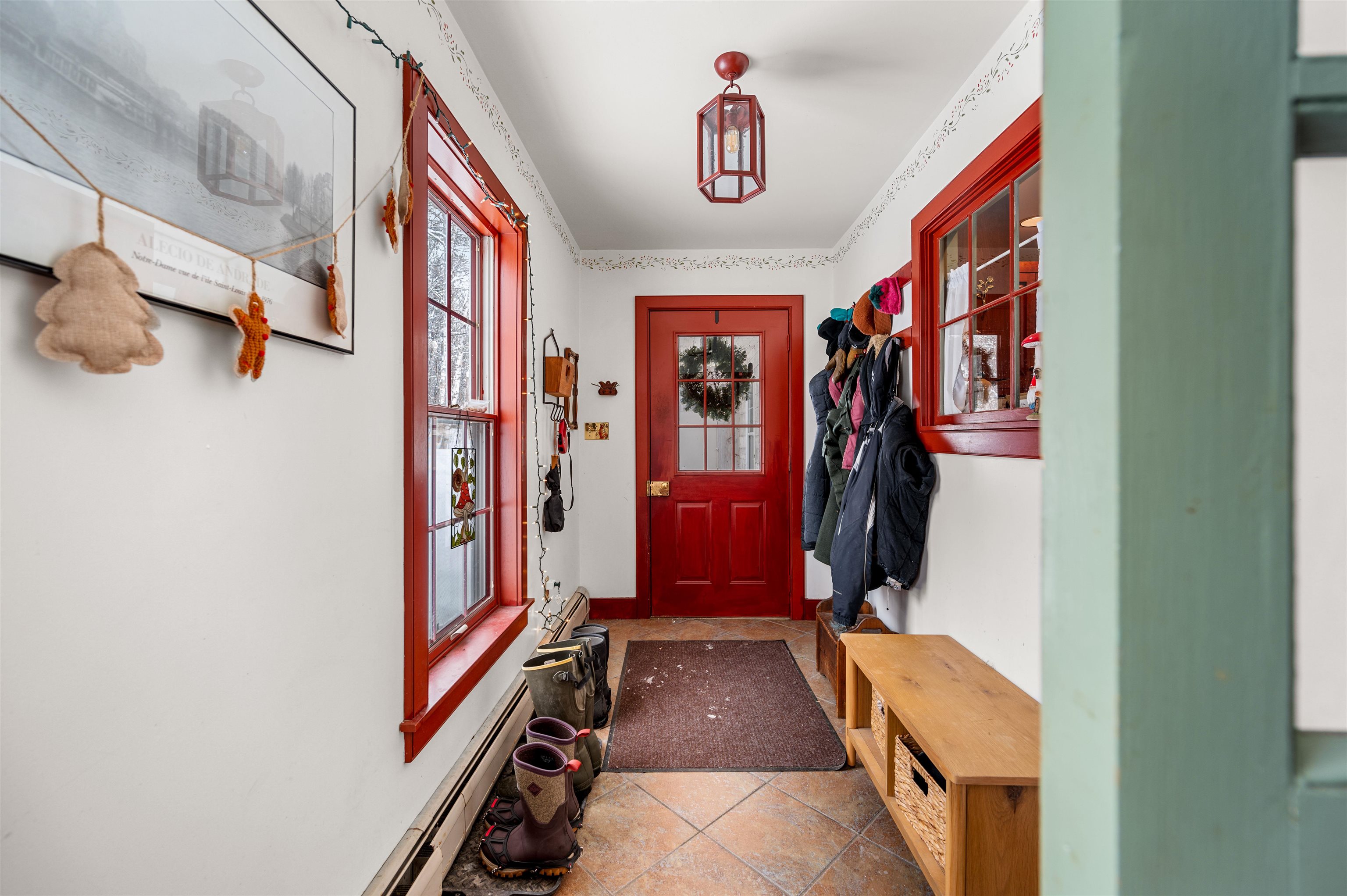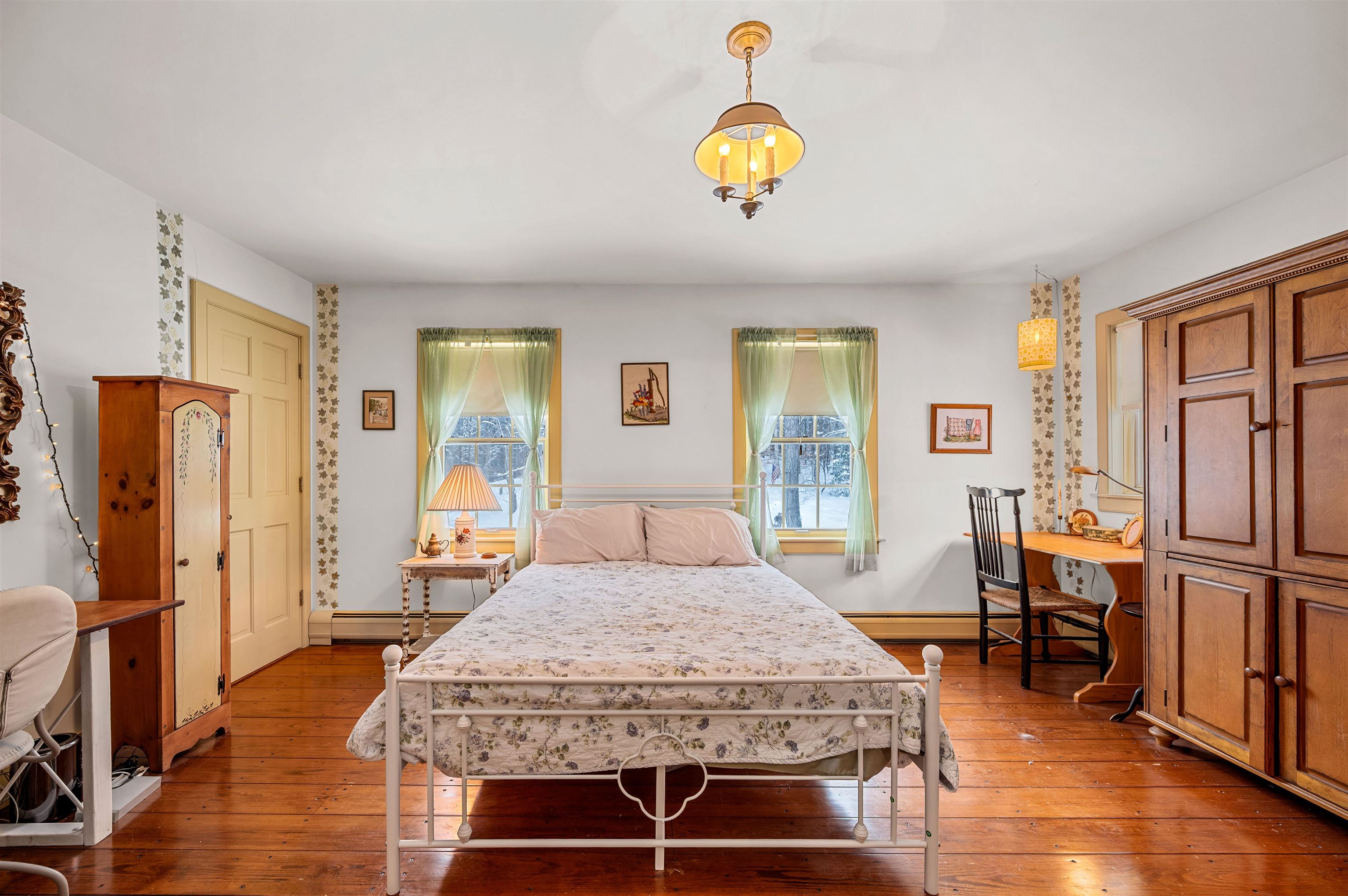 If your soul craves quiet beauty and your creative side needs space to roam, this 34+ acre Vermont retreat might just be your next great love story. Tucked at the end of a long driveway and designed by Princeton architect Bill Thompson, the home is perfectly placed to soak in southern light and celebrate its wooded surroundings, with winding stone walls hinting at the land's long agricultural history. Inside, softwood floors guide you through a warm, light-filled layout. The eat-in kitchen is built for real living, with a generous island, separate SubZero fridge and freezer, and a brand-new rangetop ready for your next signature dish. A cathedral-ceilinged den with a new enameled Vermont Castings woodstove insert makes winter evenings something to look forward to, while the front-to-back living room opens to an artistic stone patio made for stargazing or morning coffee. Upstairs, the primary suite includes a peaceful reading or dressing nook, and two more generous bedrooms offer space for guests, work, or play. Need more room to create? A massive 24’x36’ studio above the garage is your blank canvas. For tinkerers, hobbyists, or entrepreneurs, there’s a four-bay barn with loft storage providing even more flexibility. Plus, EC Fiber high-speed internet keeps you connected, even when you're surrounded by trees instead of traffic.