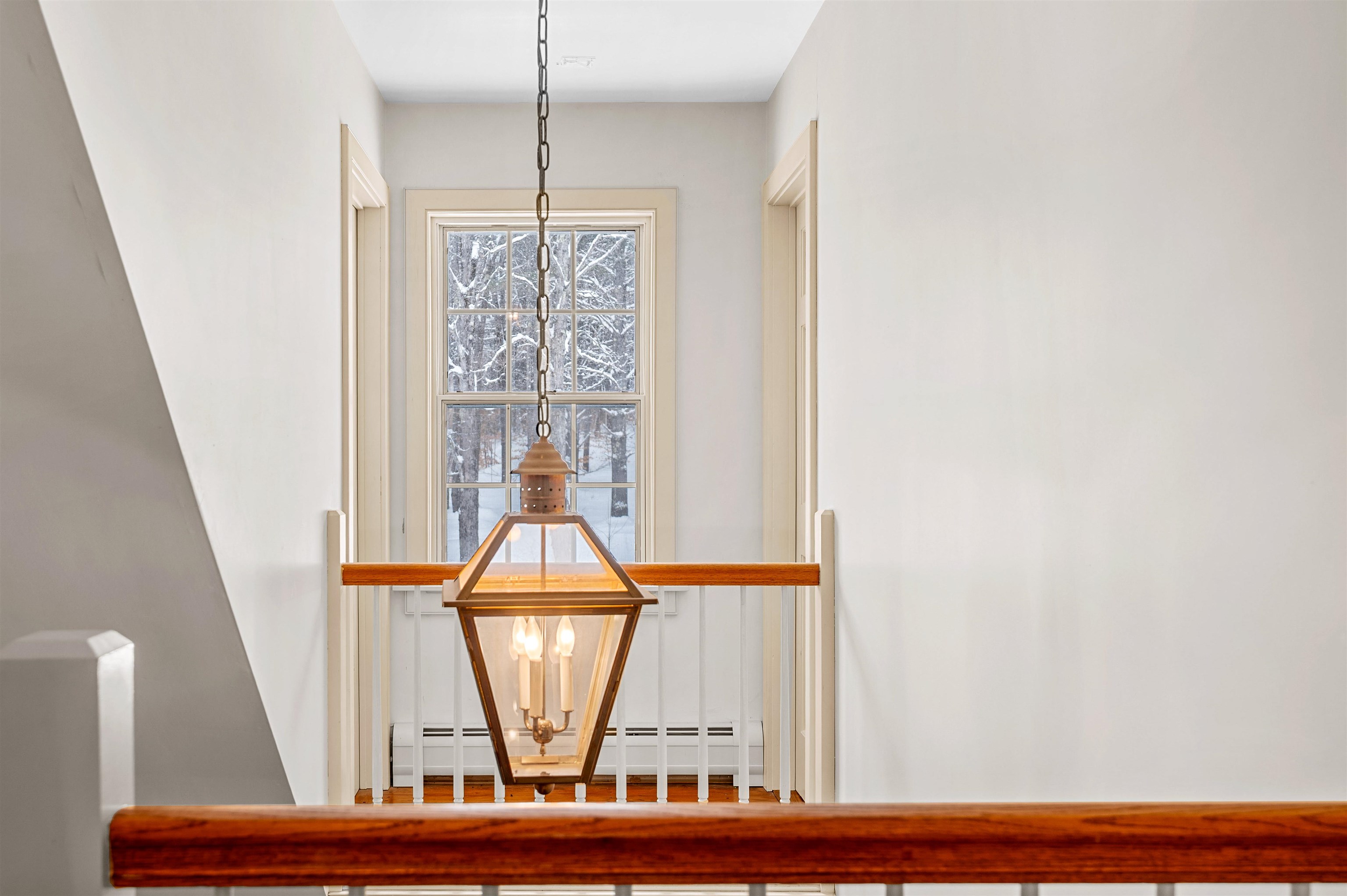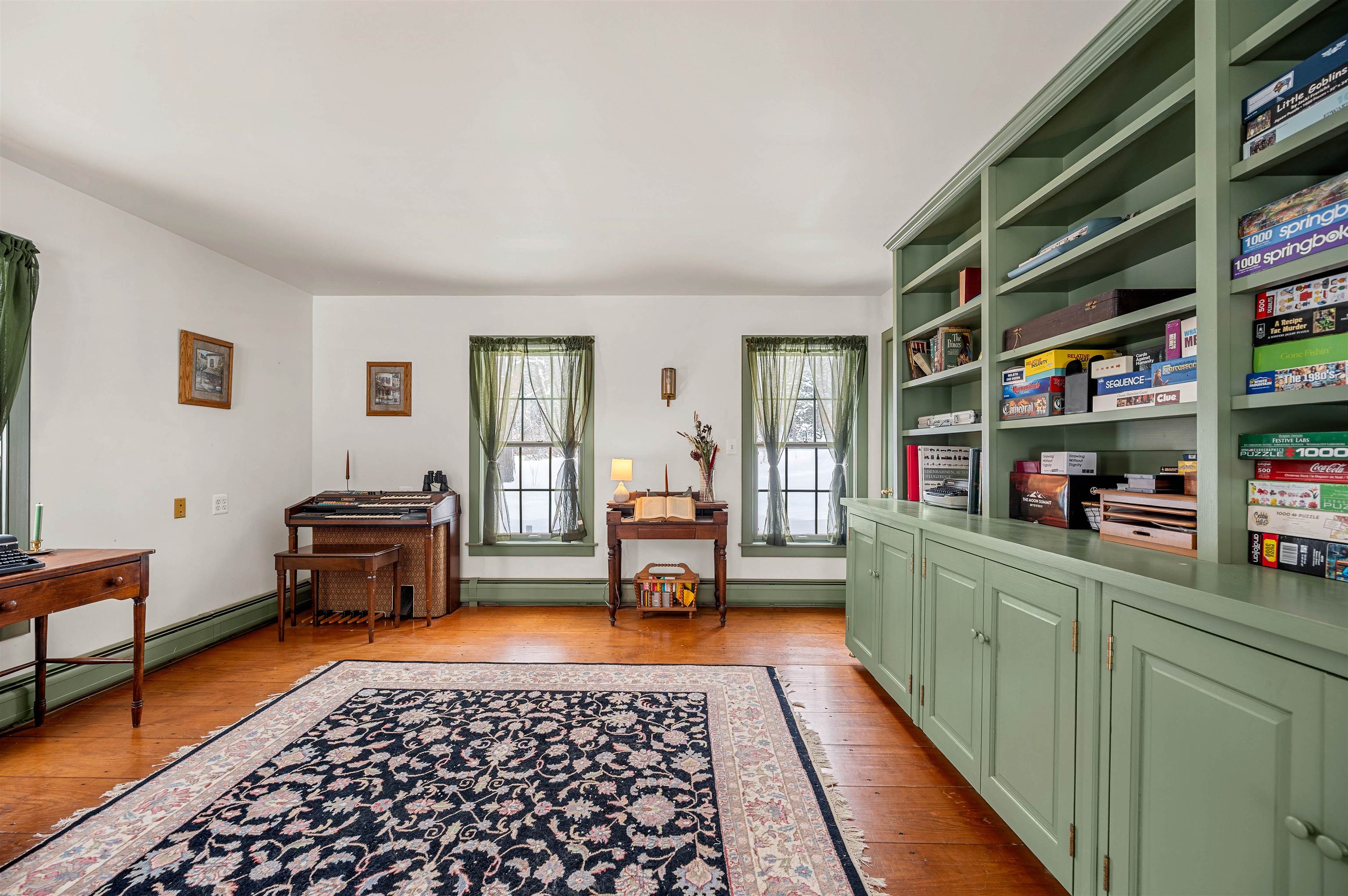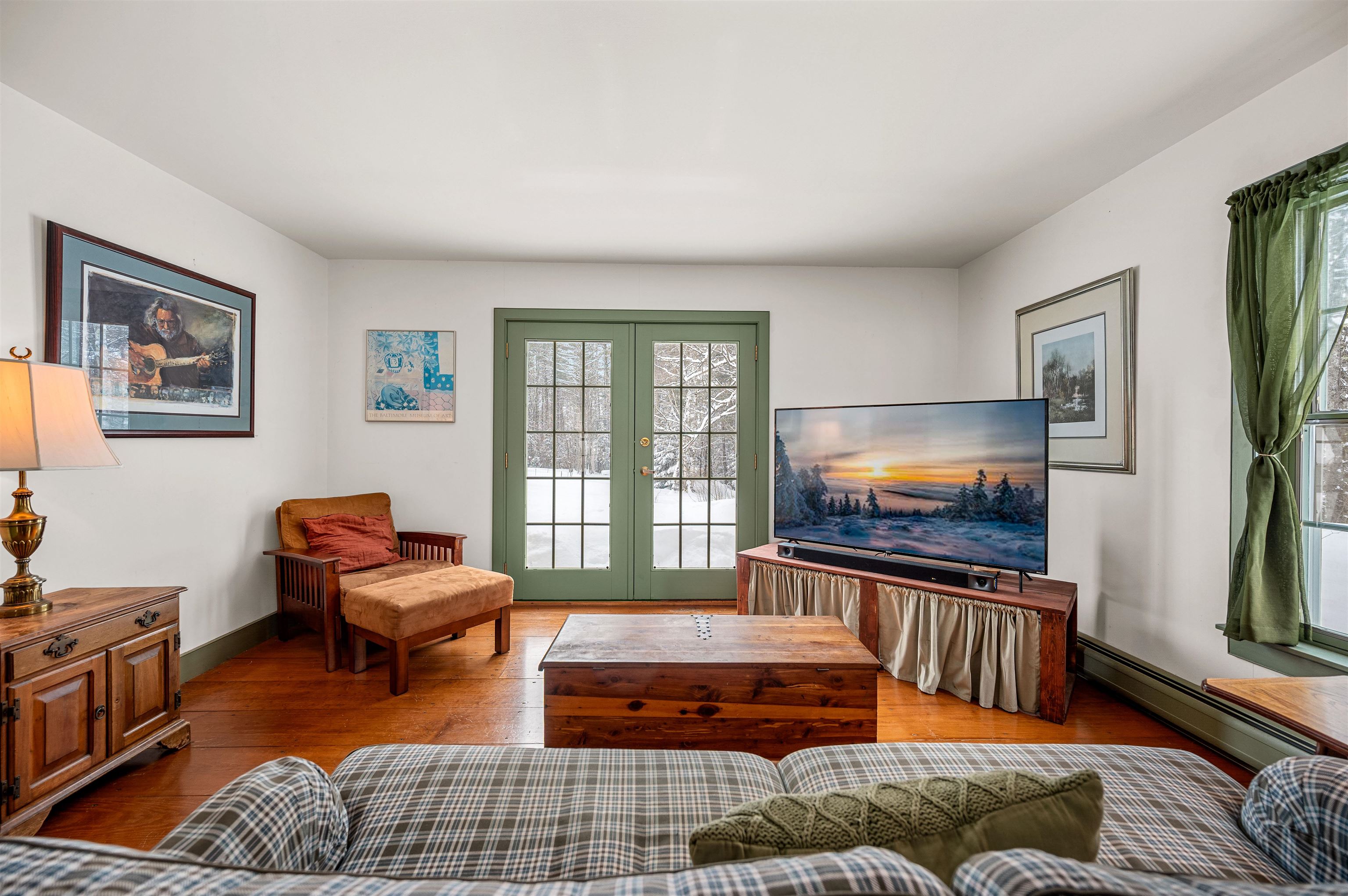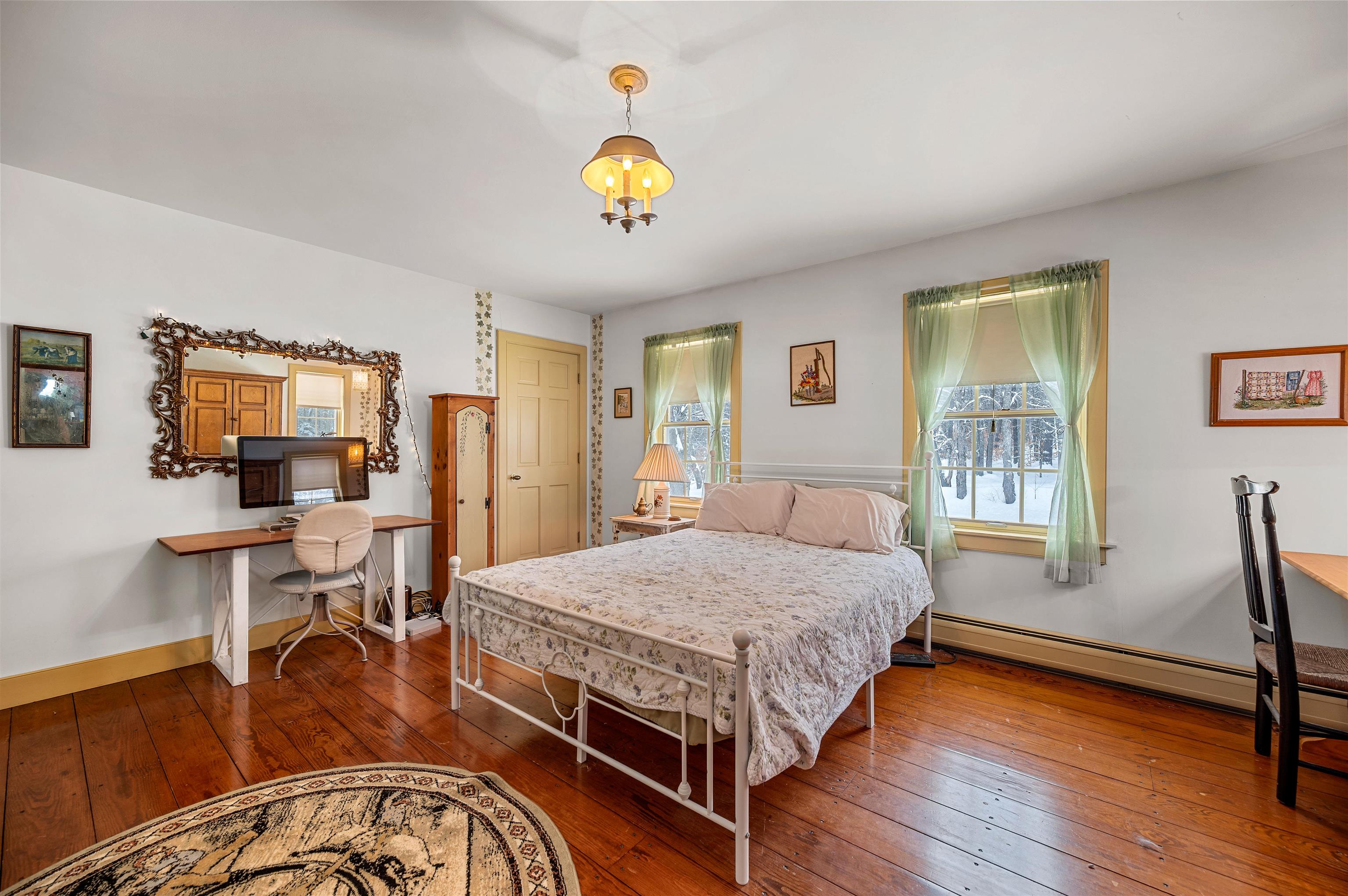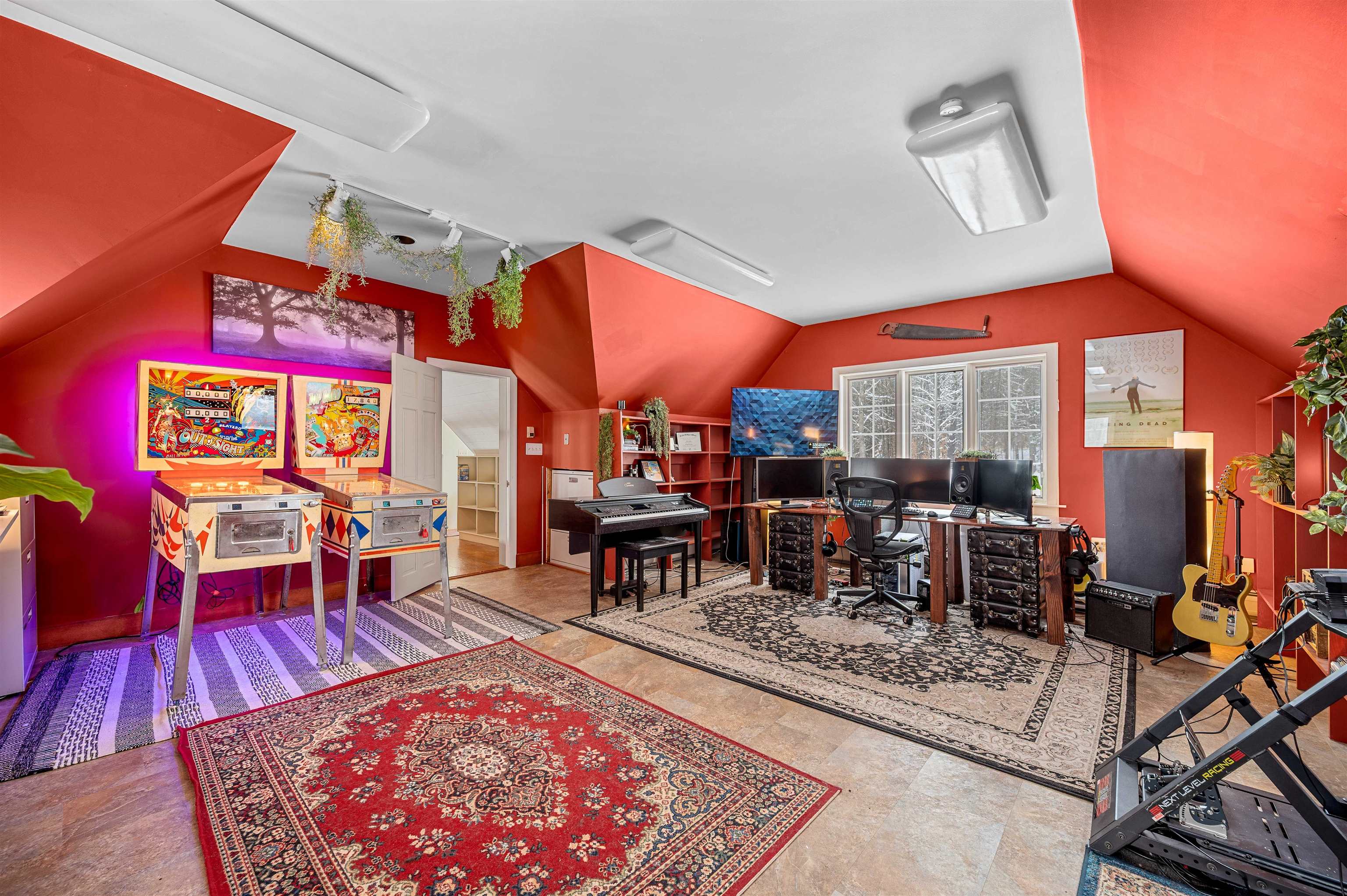If your soul craves quiet beauty and your creative side needs space to roam, this 34+ acre Vermont retreat might just be your next great love story. Tucked at the end of a long driveway and designed by Princeton architect Bill Thompson, the home is perfectly placed to soak in southern light and celebrate its wooded surroundings, with winding stone walls hinting at the land's long agricultural history. Inside, softwood floors guide you through a warm, light-filled layout. The eat-in kitchen is built for real living, with a generous island, separate SubZero fridge and freezer, and a brand-new rangetop ready for your next signature dish. A cathedral-ceilinged den with a new enameled Vermont Castings woodstove insert makes winter evenings something to look forward to, while the front-to-back living room opens to an artistic stone patio made for stargazing or morning coffee. Upstairs, the primary suite includes a peaceful reading or dressing nook, and two more generous bedrooms offer space for guests, work, or play. Need more room to create? A massive 24’x36’ studio above the garage is your blank canvas. For tinkerers, hobbyists, or entrepreneurs, there’s a four-bay barn with loft storage providing even more flexibility. Plus, EC Fiber high-speed internet keeps you connected, even when you're surrounded by trees instead of traffic.