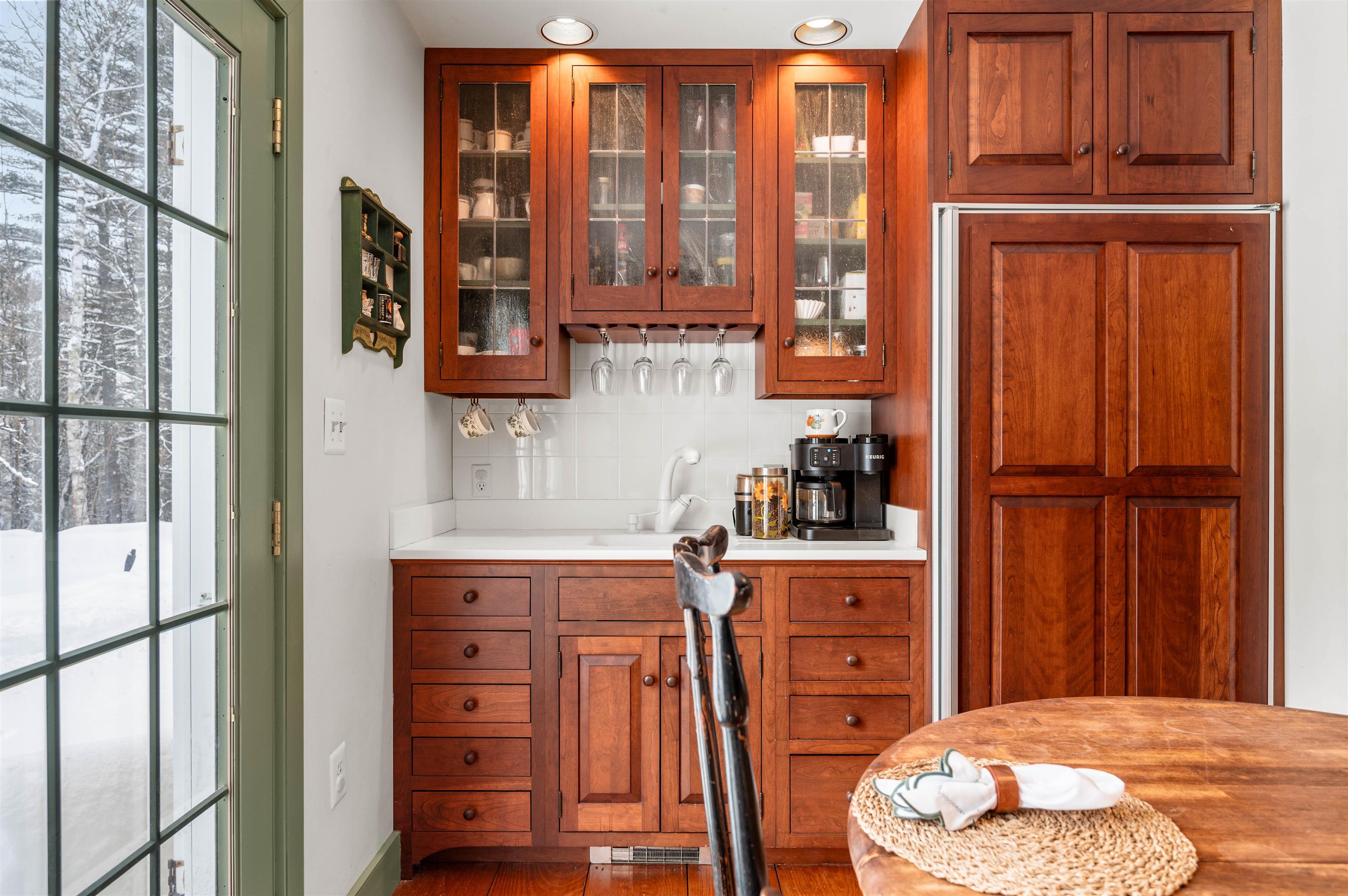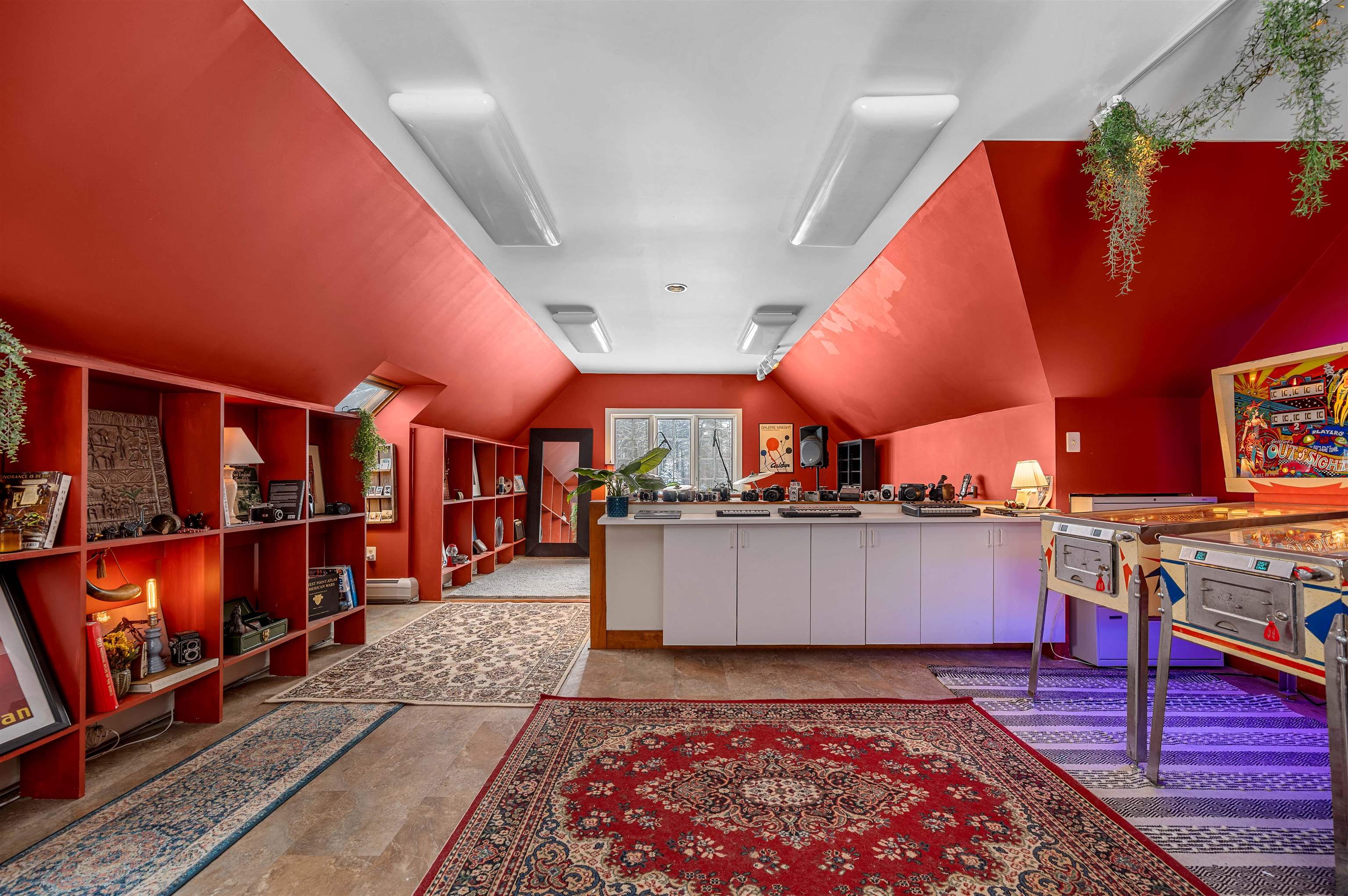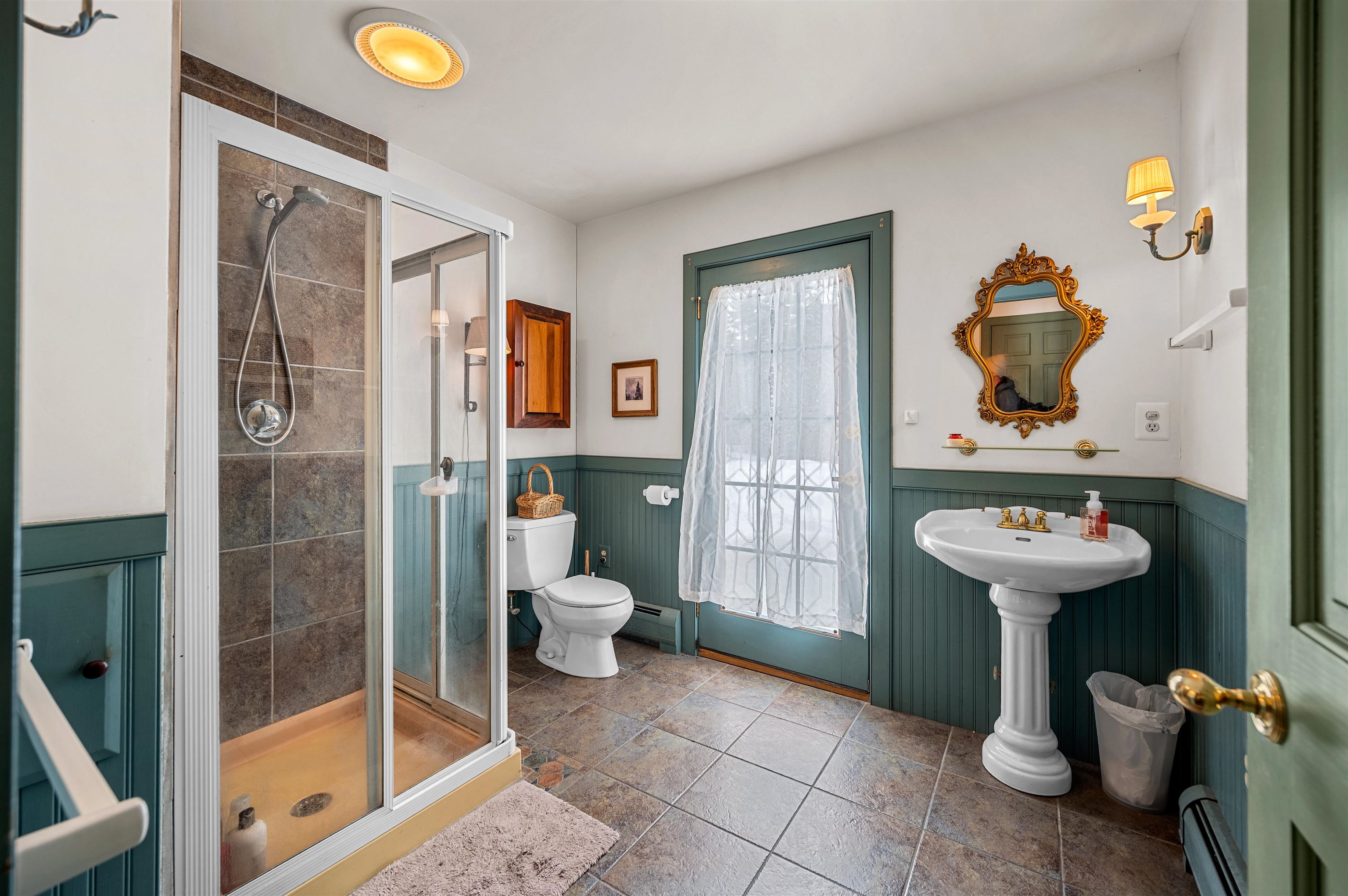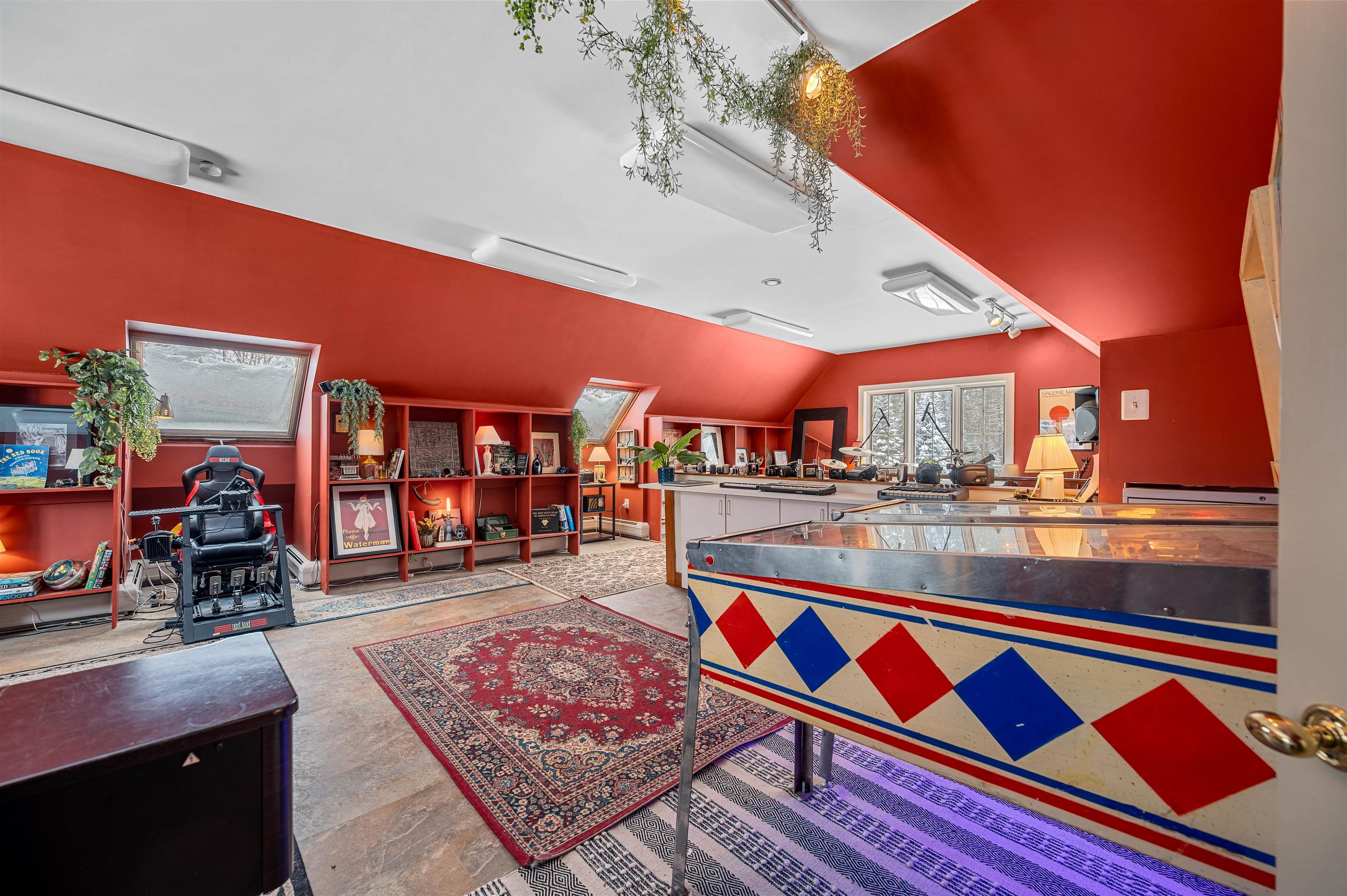If your soul craves quiet beauty and your creative side needs space to roam, this 34+ acre Vermont retreat might just be your next great love story. Tucked at the end of a long driveway and designed by Princeton architect Bill Thompson, the home is perfectly placed to soak in southern light and celebrate its wooded surroundings, with winding stone walls hinting at the land's long agricultural history. Inside, softwood floors guide you through a warm, light-filled layout. The eat-in kitchen is built for real living, with a generous island, separate SubZero fridge and freezer, and a brand-new rangetop ready for your next signature dish. A cathedral-ceilinged den with a new enameled Vermont Castings woodstove insert makes winter evenings something to look forward to, while the front-to-back living room opens to an artistic stone patio made for stargazing or morning coffee. Upstairs, the primary suite includes a peaceful reading or dressing nook, and two more generous bedrooms offer space for guests, work, or play. Need more room to create? A massive 24’x36’ studio above the garage is your blank canvas. For tinkerers, hobbyists, or entrepreneurs, there’s a four-bay barn with loft storage providing even more flexibility. Plus, EC Fiber high-speed internet keeps you connected, even when you're surrounded by trees instead of traffic.
