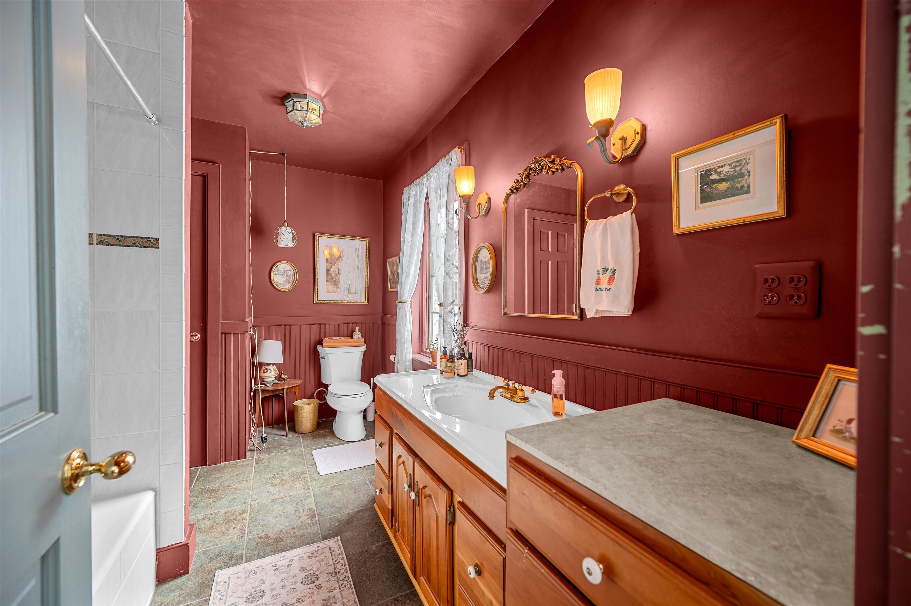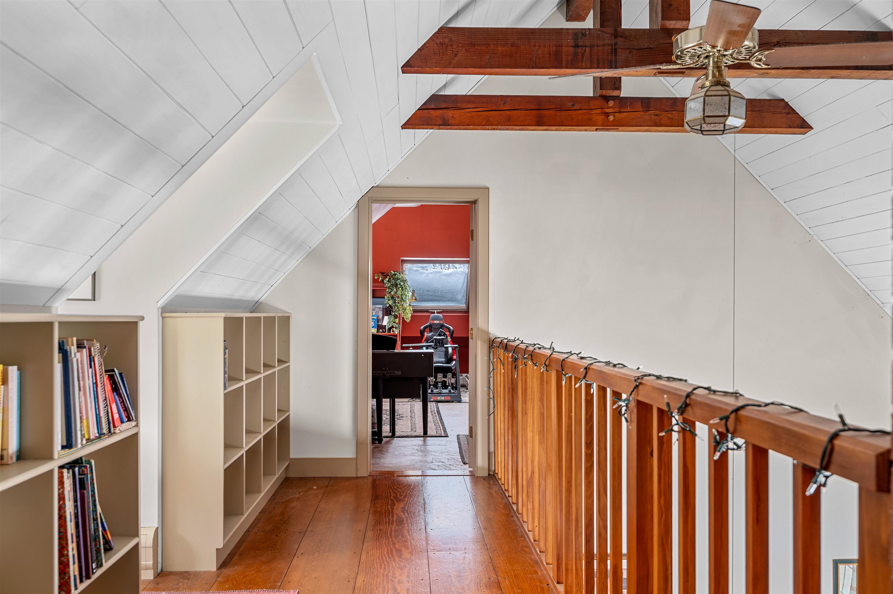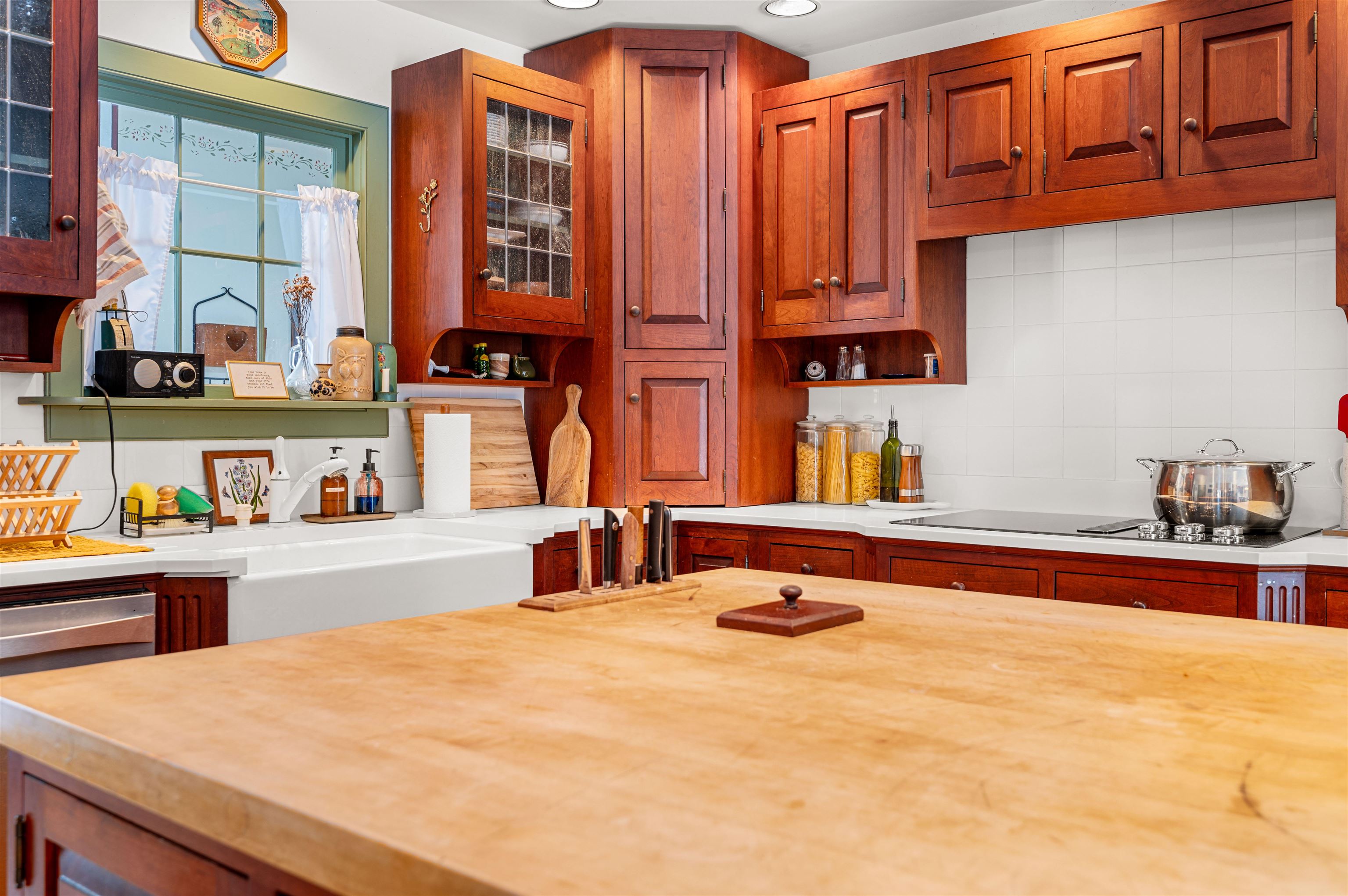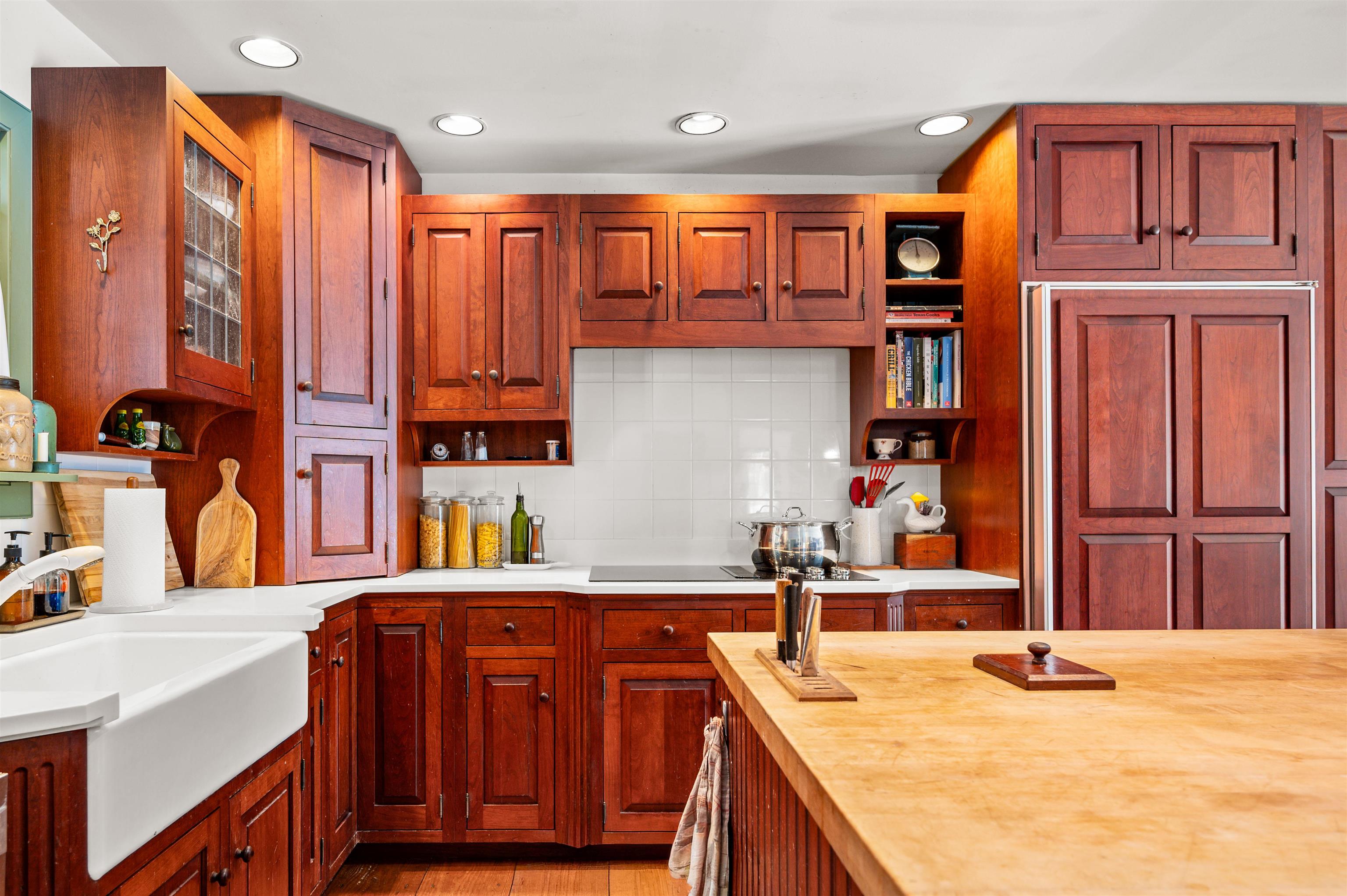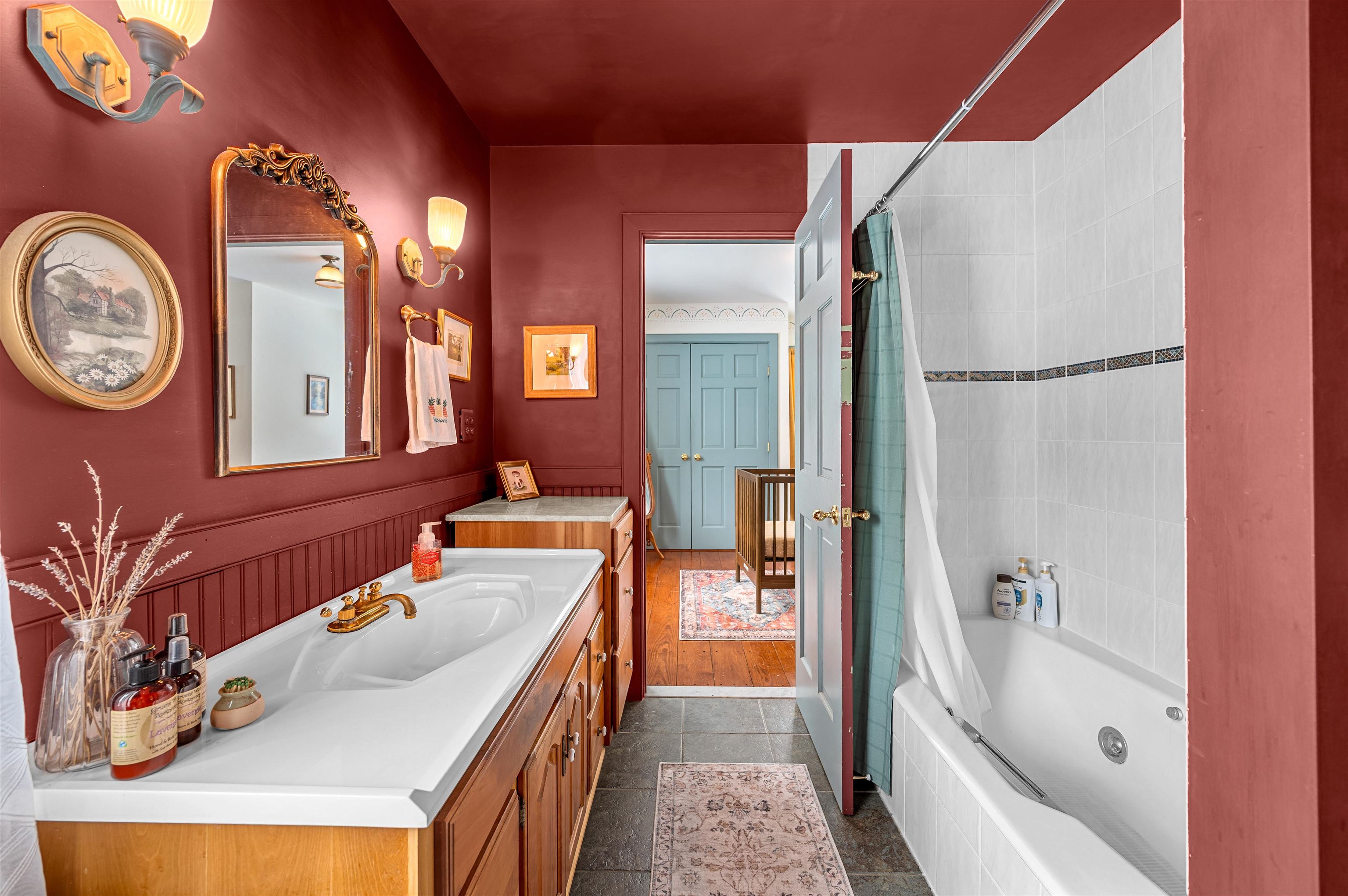 If your soul craves quiet beauty and your creative side needs space to roam, this 34+ acre Vermont retreat might just be your next great love story. Tucked at the end of a long driveway and designed by Princeton architect Bill Thompson, the home is perfectly placed to soak in southern light and celebrate its wooded surroundings, with winding stone walls hinting at the land's long agricultural history. Inside, softwood floors guide you through a warm, light-filled layout. The eat-in kitchen is built for real living, with a generous island, separate SubZero fridge and freezer, and a brand-new rangetop ready for your next signature dish. A cathedral-ceilinged den with a new enameled Vermont Castings woodstove insert makes winter evenings something to look forward to, while the front-to-back living room opens to an artistic stone patio made for stargazing or morning coffee. Upstairs, the primary suite includes a peaceful reading or dressing nook, and two more generous bedrooms offer space for guests, work, or play. Need more room to create? A massive 24’x36’ studio above the garage is your blank canvas. For tinkerers, hobbyists, or entrepreneurs, there’s a four-bay barn with loft storage providing even more flexibility. Plus, EC Fiber high-speed internet keeps you connected, even when you're surrounded by trees instead of traffic.