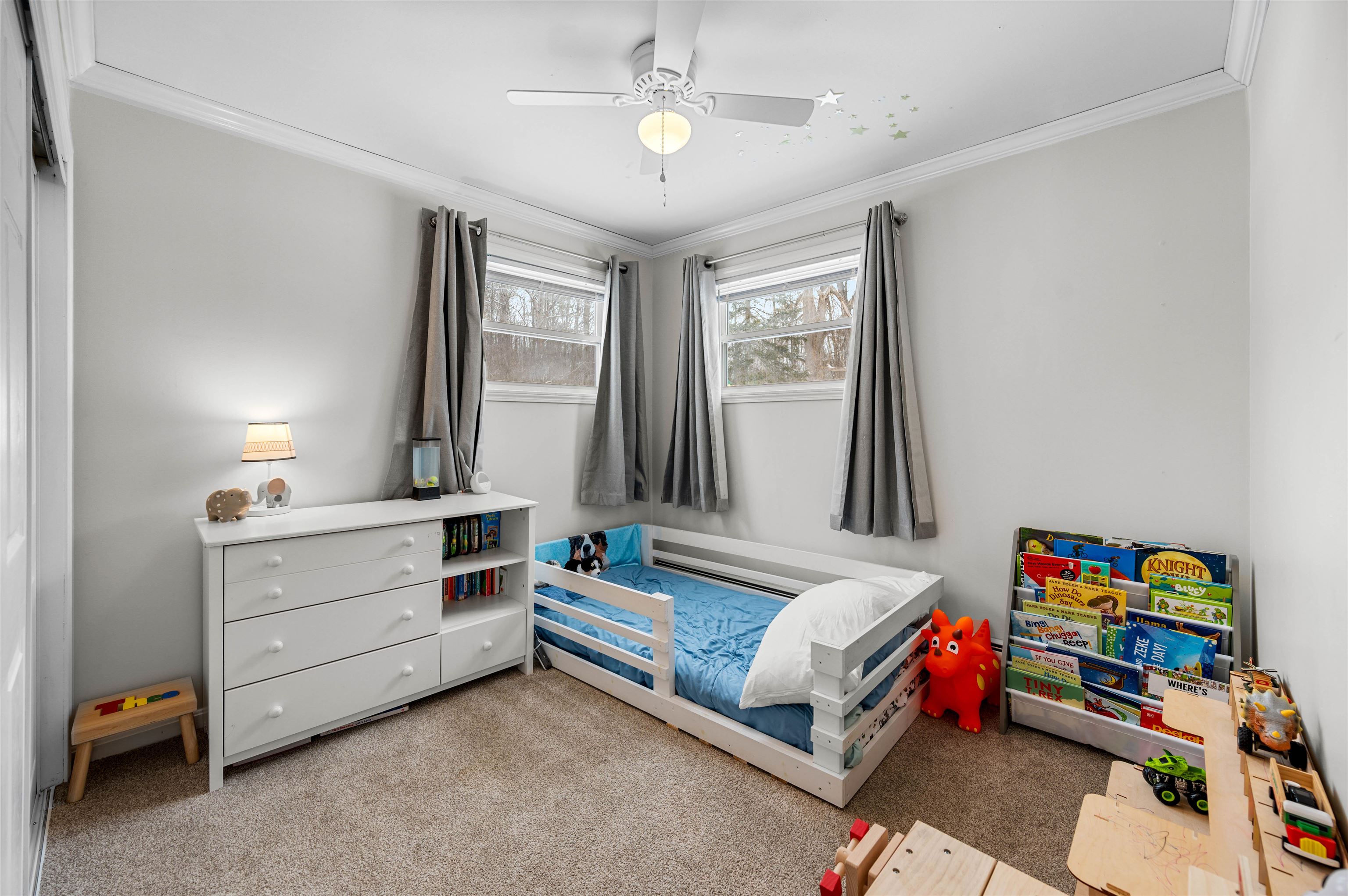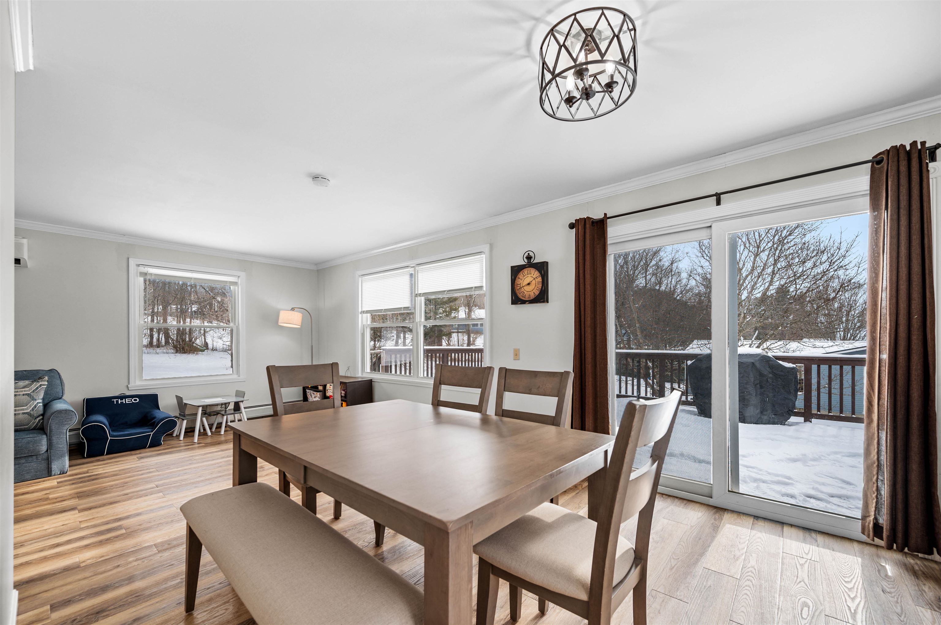 - Ceiling Fan, Dining Area, Natural Light, Natural Woodwork, Indoor Storage, Basement Laundry