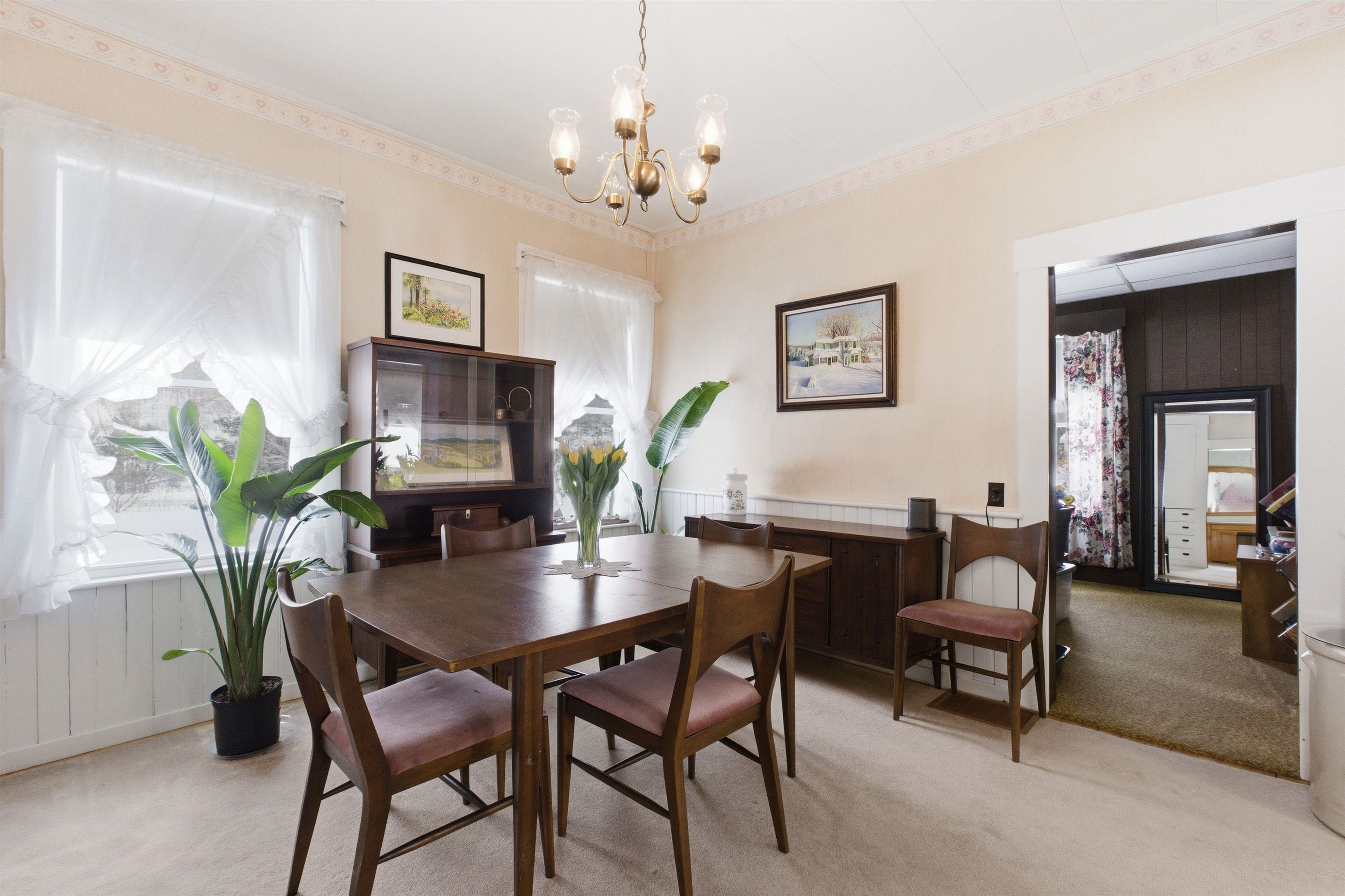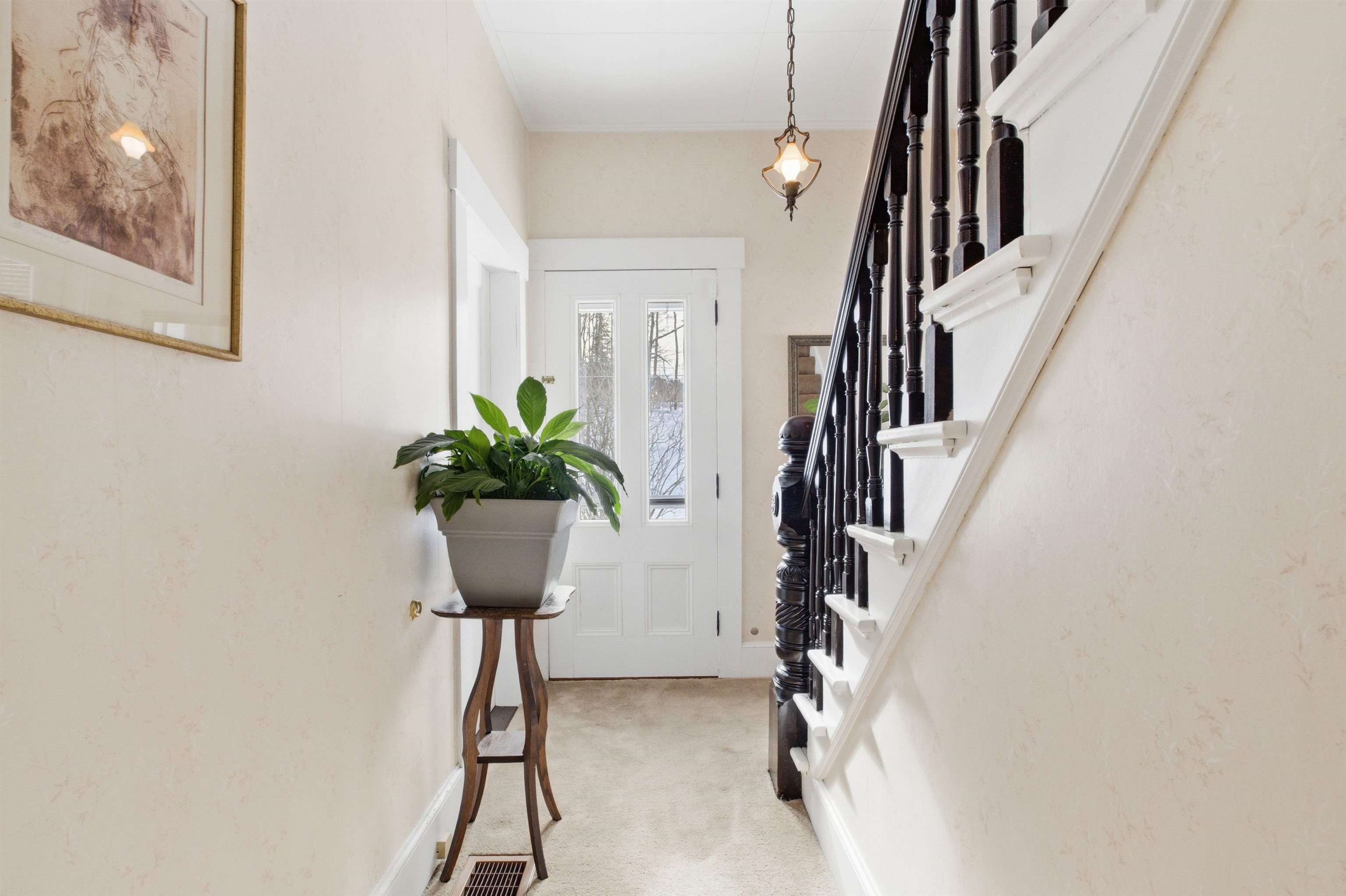 Discover the epitome of timeless Vermont charm in this exquisitely preserved 1890 New Englander, located at 165 Pleasant Street. Crafted by renowned master builder Ray Tewksbury, this rare gem is one of only 22 local examples of his exceptional precision workmanship. Nestled on a serene 0.67-acre lot, the property boasts an effortlessly maintained landscape adorned with fruit trees, majestic maples, vibrant flowering trees, lush flowering shrubs, and colorful annuals. Upon entering, you'll be captivated by the seamless blend of historic character and thoughtful modernizations, creating a warm and inviting atmosphere. The interior features impressive high ceilings, hardwood floors throughout and exquisite built-in shelving. The spacious kitchen is equipped with a practical electric cooktop, ample built-ins, cabinets, and pantry space. The home comes partially furnished, maintaining a “grandmacore” aesthetic. The home also features an updated bathroom, ensuring modern comfort and convenience. Additionally, the mudroom provides a practical space for daily life, complete with additional refrigeration and freezer space. The enclosed porch, currently serving as a radiant sunroom, bathes the space in natural light and offers a versatile area for relaxation or entertainment. The upper level provides four generously proportioned rooms, including three designated bedrooms, featuring 2 cedar closets, allowing for flexible configuration to suit your unique needs. A detached one-car garage with a heated and air-conditioned workspace provides an ideal haven for work, hobbies, projects, or storage. The garage is also equipped with a drain, adding to its functionality. The impressive granite block basement features an authentic root cellar, as well as space for storage and laundry. With its unique blend of historic charm, modern functionality, and natural beauty, this extraordinary property presents a rare opportunity to own a truly one-of-a-kind treasure.