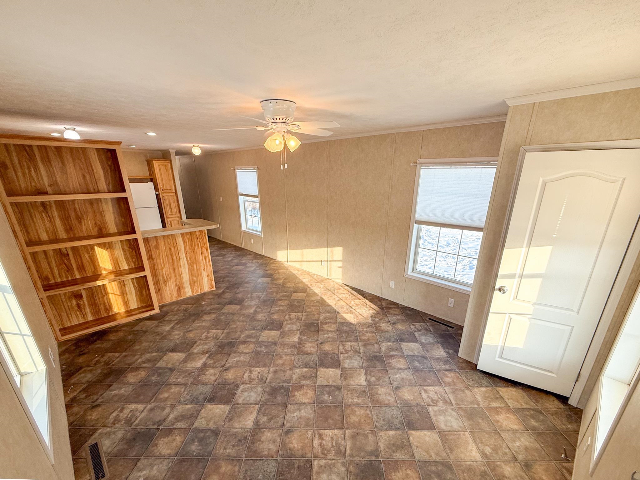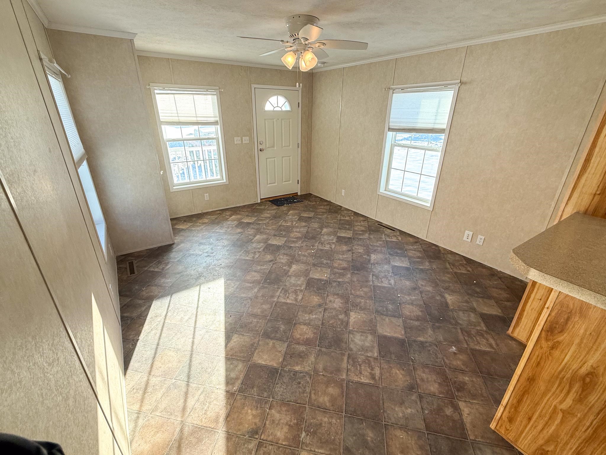 - Blinds, Ceiling Fan, Kitchen/Dining, Laundry Hook-ups, Living/Dining, Natural Light, 1st Floor Laundry