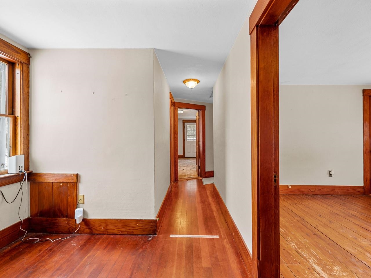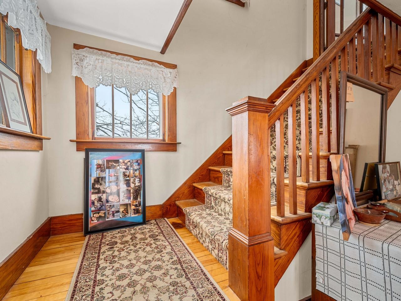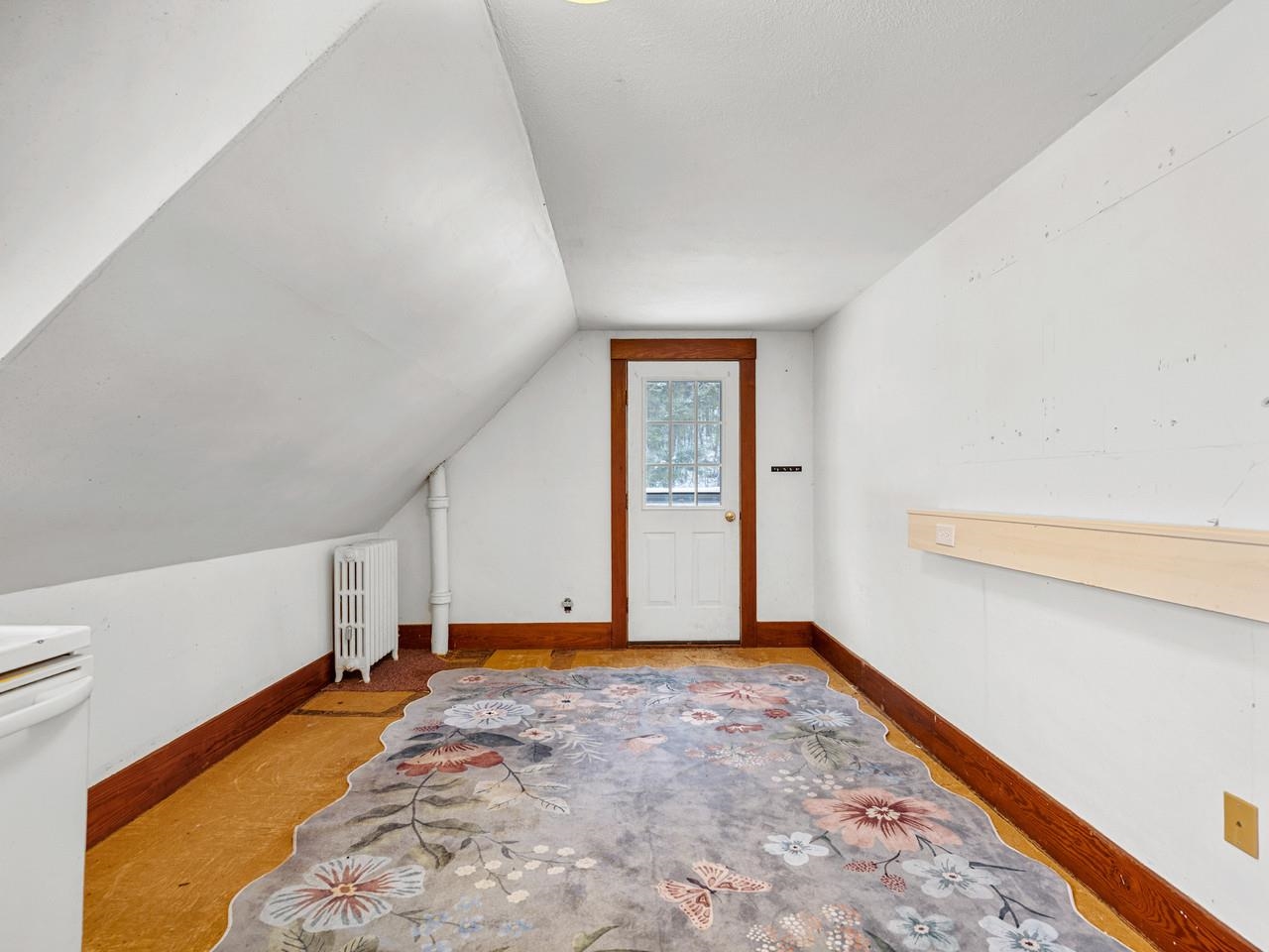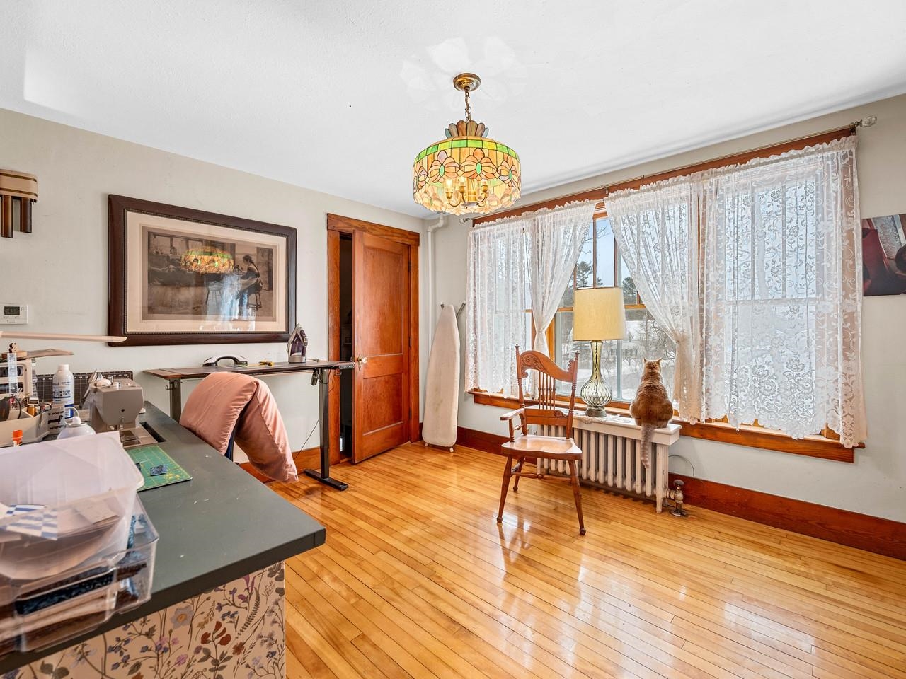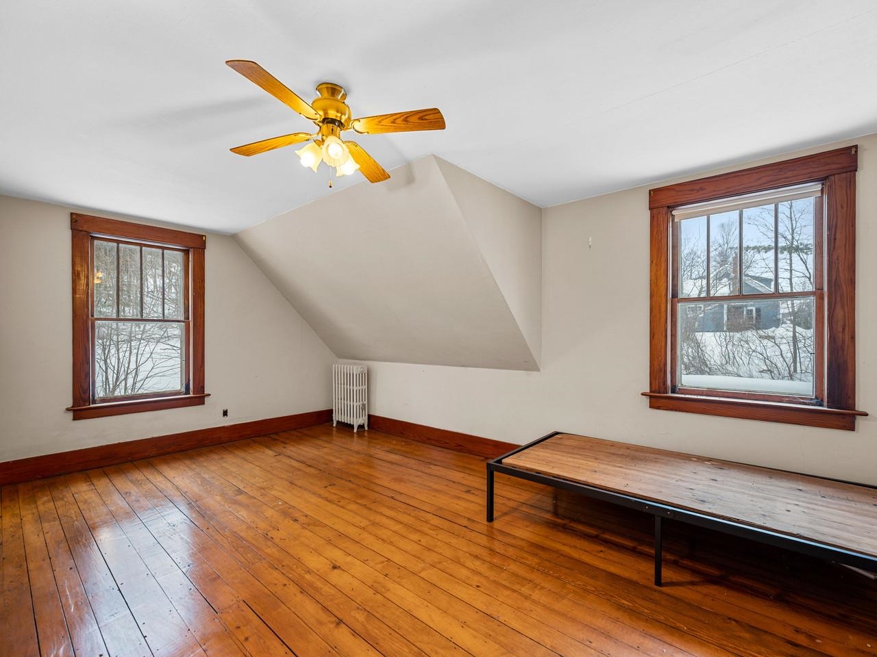 A lively home that shines with original woodwork and the good memories that have collected in this home over the years. One of the original Worcester Village homes, this sweet farmhouse has a beautiful barn and outbuildings along with level pasture that abuts the North Branch of the Winooski. The house has a two-car garage with great storage (or more future living space) above. A covered porch leads to the front door and a very large mudroom. The family room, formal parlor (currently used as a bedroom), and dining room all have newly refinished hardwood floors and gorgeous wood columns and molding. The eat-in kitchen, a small office , a sun porch, and the 3/4 bath are also on this level. Up the grand staircase are 4 more bedrooms, a cozy hall with a reading nook, and full bathroom. One of the upstairs bathrooms has a kitchenette and its own outside stairwell for entry - perfect for a rental. The backyard is private and the far end fades into gentle wooded hills. The historic barn is across the road, up on the hill out of the flood zone. The pastures are perfect for gardening with super fertile soil due to occasionally being floodplain. Also used as a sheep farm, it's ideal for animals and could be great farmette. There's even a nice little swimming hole at the edge of the property. Just a few hundred feet to the village store for necessities like milk, flour, sugar, coffee, etc. Small village living within 15 minutes to downtown Montpelier and about a half hour to skiing at Stowe.