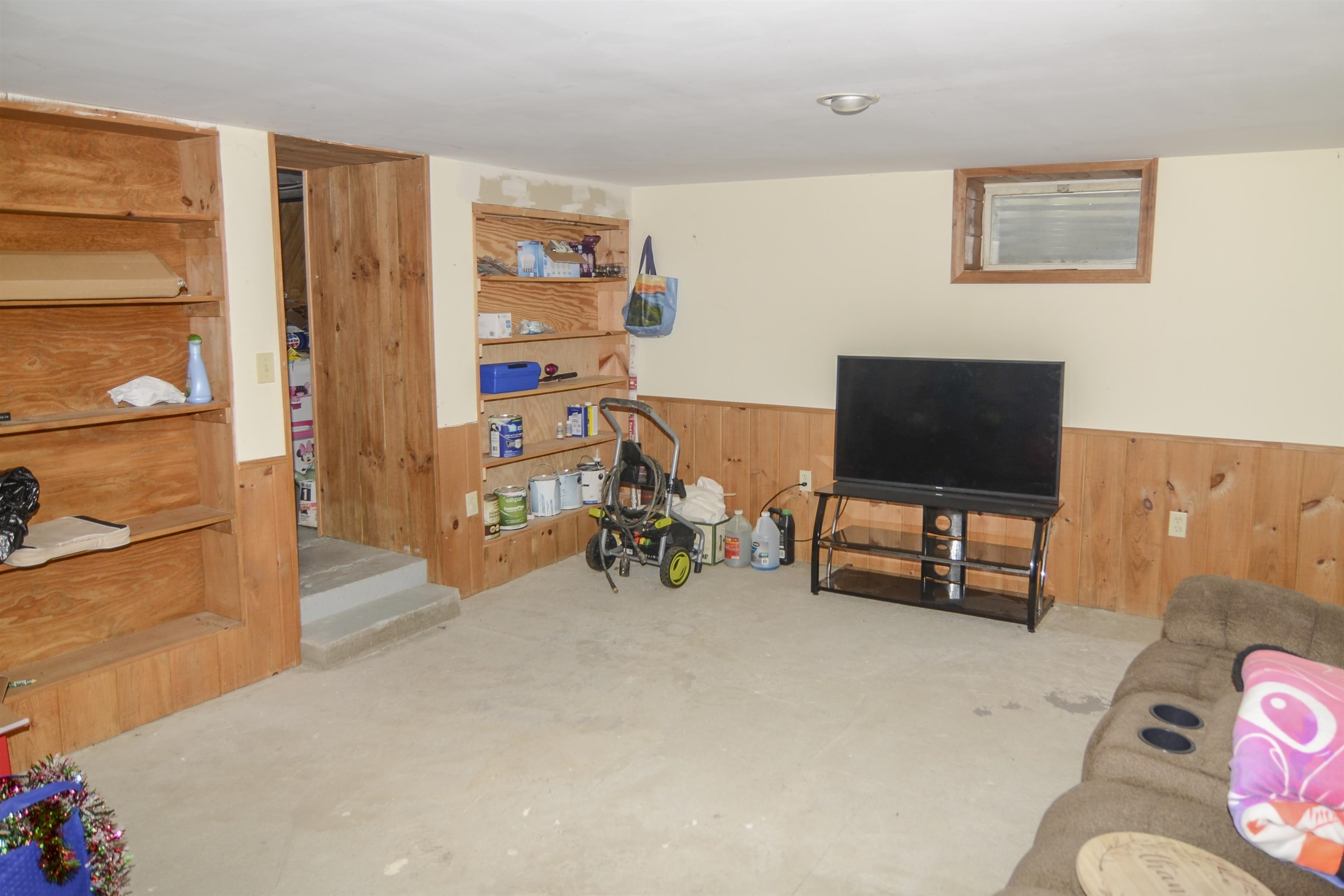 - Concrete, Concrete Floor, Finished, Partially Finished, Exterior Stairs, Interior Stairs, Storage Space, Unfinished, Interior Access, Exterior Access