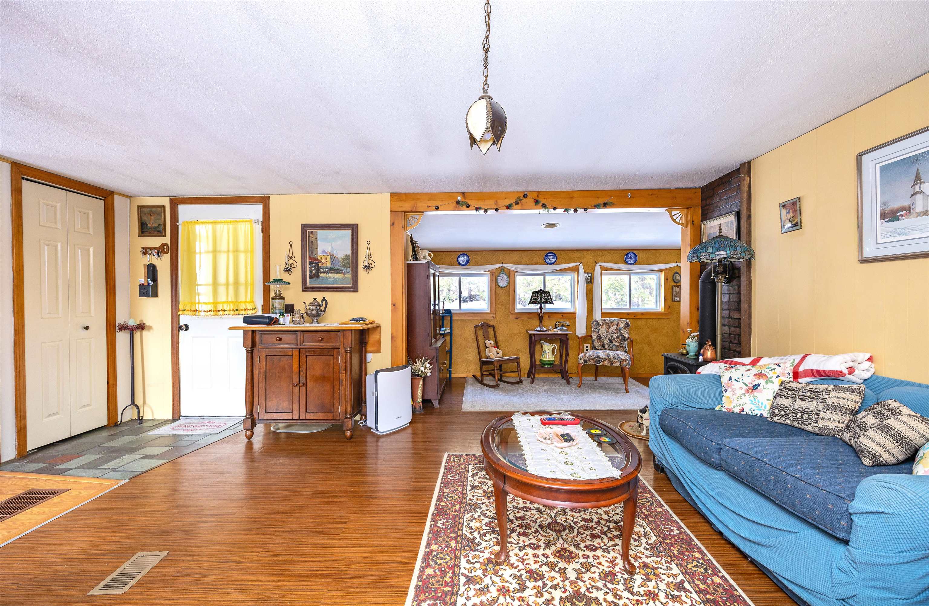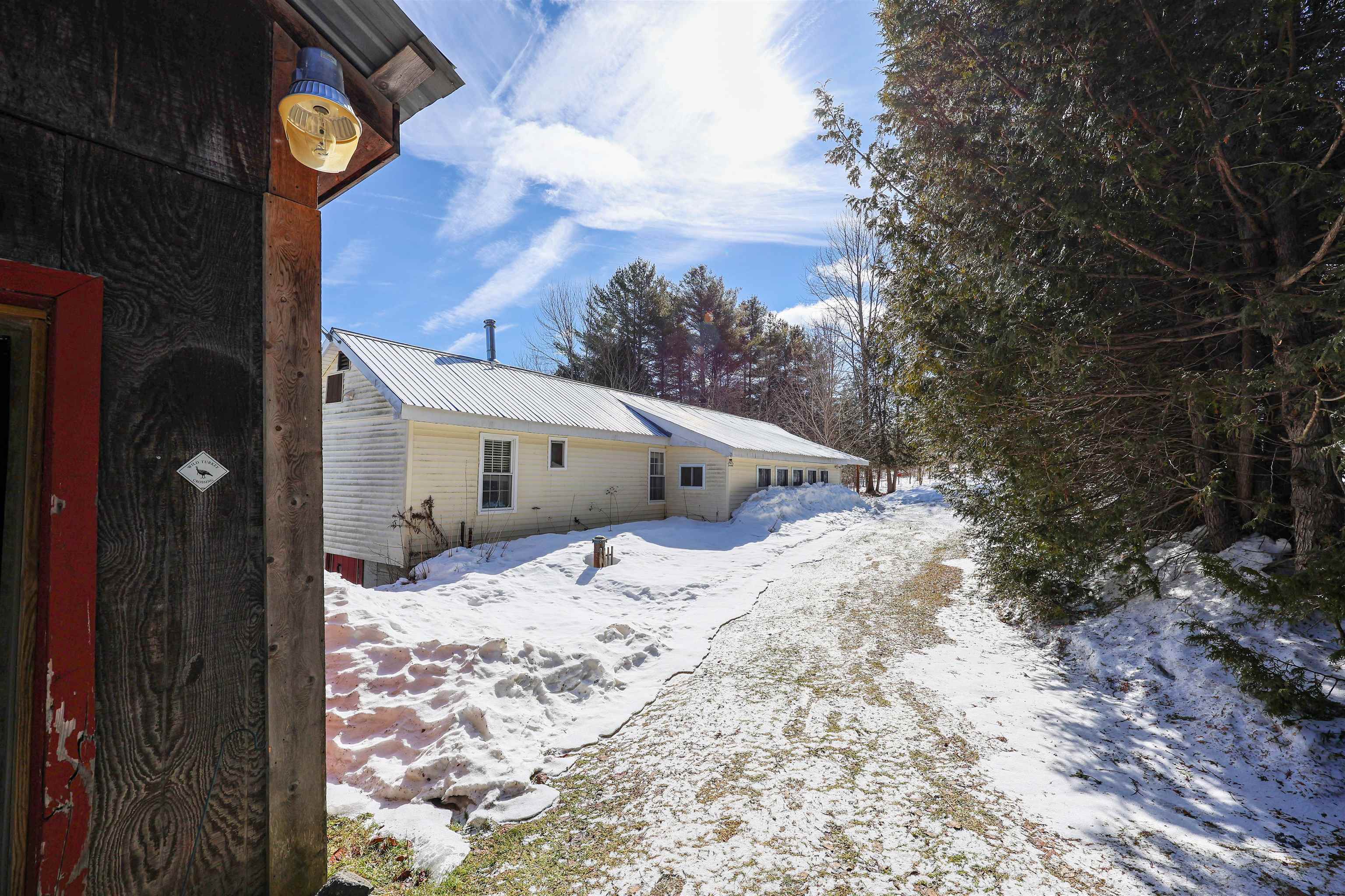 Set on 11+/- acres in a peaceful Danville setting, this well-maintained home offers easy one-level living with the added benefit of a full foundation. The eat-in kitchen is bright and welcoming, opening to the living room where sliding doors lead to a sun-filled room overlooking the backyard and private pond. A cozy sitting nook on the opposite side of the living room creates an inviting spot to relax or read. The primary bedroom is generously sized with ample closet space, and the main level also includes a second bedroom, bathroom, and a practical mudroom entry. The basement provides excellent storage and features a wood stove for added warmth and efficiency. Outside, the land offers a mix of open space and natural beauty with a small private pond, Roy Brook winding through the property, and plenty of room for gardens, outdoor activities, or simply enjoying the surroundings. A detached garage/barn adds useful space for vehicles, equipment, or hobbies. Located in the heart of Danville, known for its scenic setting, strong sense of community, and easy access to outdoor recreation, this property offers a wonderful balance of country living and convenience. Just a few miles to Route 2 for a smooth commute while still enjoying the quiet rhythm of life in the “Village in the Hills.” This sale must be contingent upon the seller finding suitable housing.