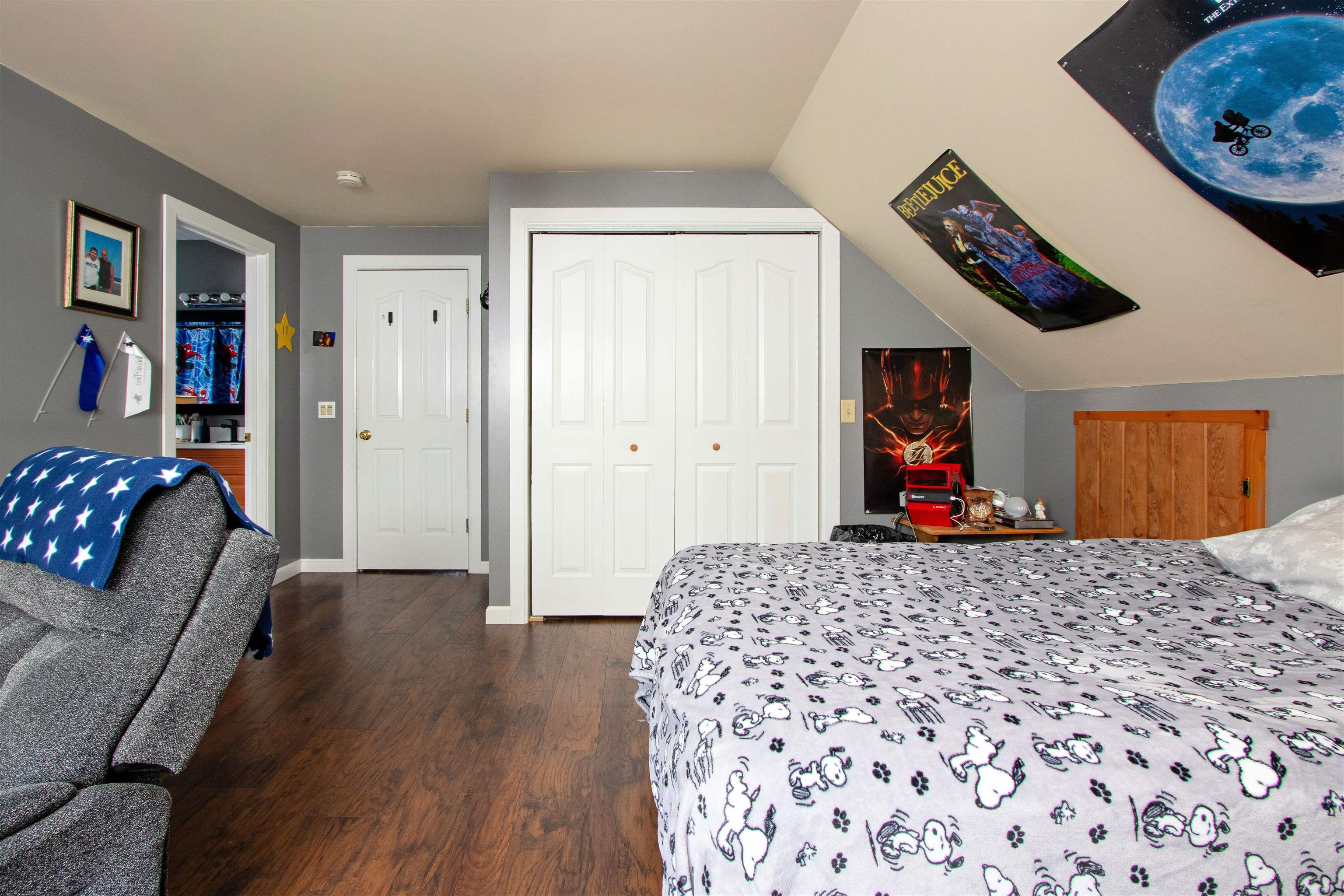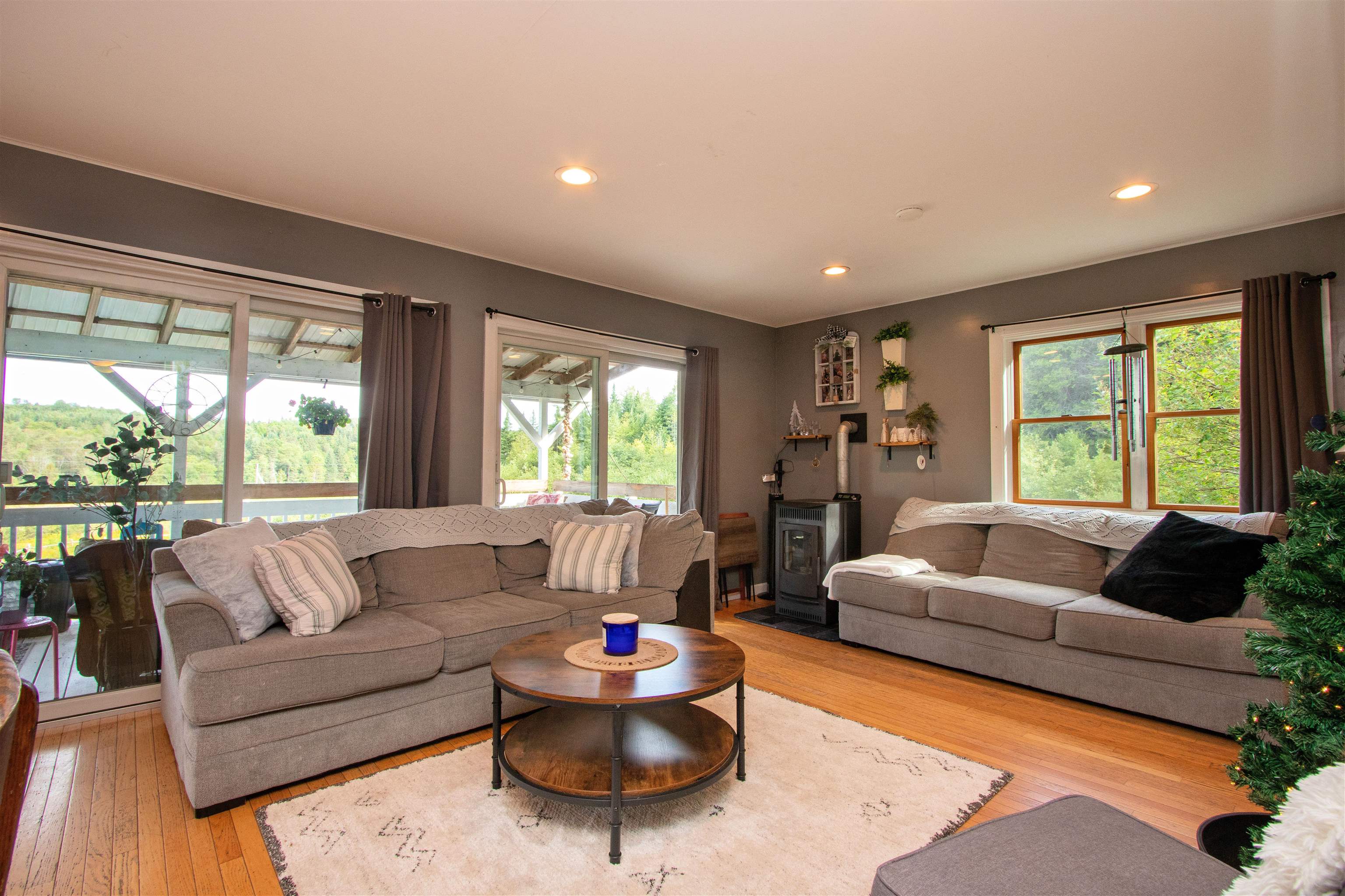 Set back from the road on 10+/- acres, this Hardwick home offers a bright and inviting open layout where the living room, dining area, and kitchen flow seamlessly together across hardwood floors. The kitchen features ample cabinet and counter space, a center island, and a walk-in pantry, while the living room is warmed by a pellet stove in the corner. Three sets of sliding glass doors connect this main living space to a covered porch overlooking the yard and private pond perfect for soaking up the light and embracing indoor-outdoor living. The main level also includes a family room, a bonus room ideal for a home office, and a full bath. Upstairs, you’ll find a convenient central laundry area, three bedrooms, and a full bath. The finished walkout lower level adds even more living space with a family room, a guest area, and a half bath. Outside, the land offers both open and wooded areas, plenty of room for gardens, a lean-to, and a shed. Living here means more than just enjoying your private retreat. Hardwick has earned a reputation as a hub for Vermont’s local food and farm-to-table movement, with nearby farms, cheesemakers, and markets adding to the community’s vibrant culture. The historic village center offers cafés and small shops along the Lamoille River, while the Lamoille Valley Rail Trail, beloved for walking, biking, and snowmobiling, runs right through town. It’s a place where outdoor recreation, community connection, and Vermont charm all come together.