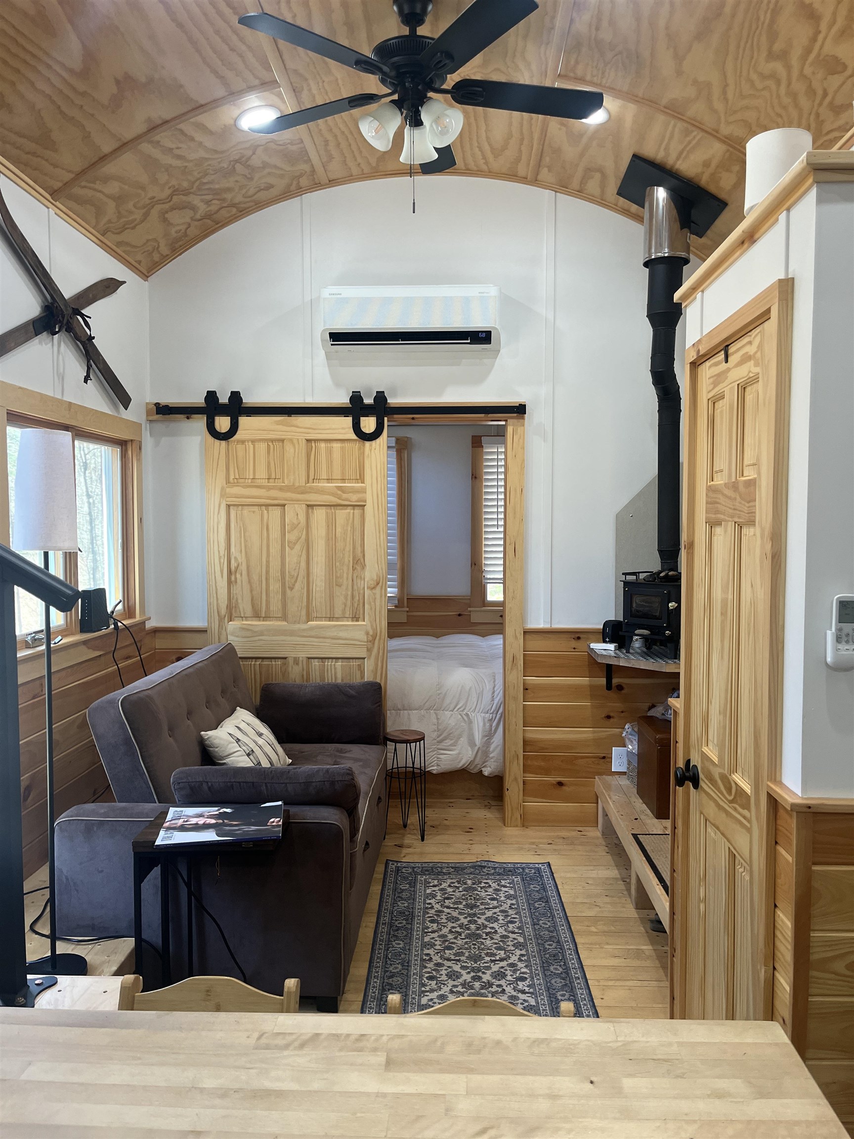 Discover a unique opportunity in Troy, Vermont with this thoughtfully designed 405 sq ft tiny home set on a .46-acre lot, offering a perfect blend of comfort, simplicity, and natural beauty. Designed for full-time living or a getaway retreat, this home features modern conveniences including a mini-split for heating and cooling, on-demand hot water, and a water filtration system. The property is equipped with a drilled well and a brand-new septic system, providing the functionality of a traditional home in a compact footprint. Inside, you’ll find a bright and efficient living space enhanced by natural wood finishes throughout, along with a lofted area that adds flexible sleeping or storage space. Step outside and enjoy the peaceful setting from the front deck, or gather around the outdoor fire pit—perfect for relaxing evenings under the stars. Located directly across the road from the scenic Big Falls Eddy, this property offers easy access to one of the area’s most beautiful natural attractions. Conveniently located just 15 minutes to Jay Peak Resort, this property is ideal for outdoor enthusiasts—bring your skis, kayak, or bike and enjoy all that the Northeast Kingdom has to offer. The current owner has received a permit for a 500 sq ft home, offering flexibility for future expansion or redevelopment. Whether you choose to enjoy the existing home or explore building options, this property presents a range of possibilities.
