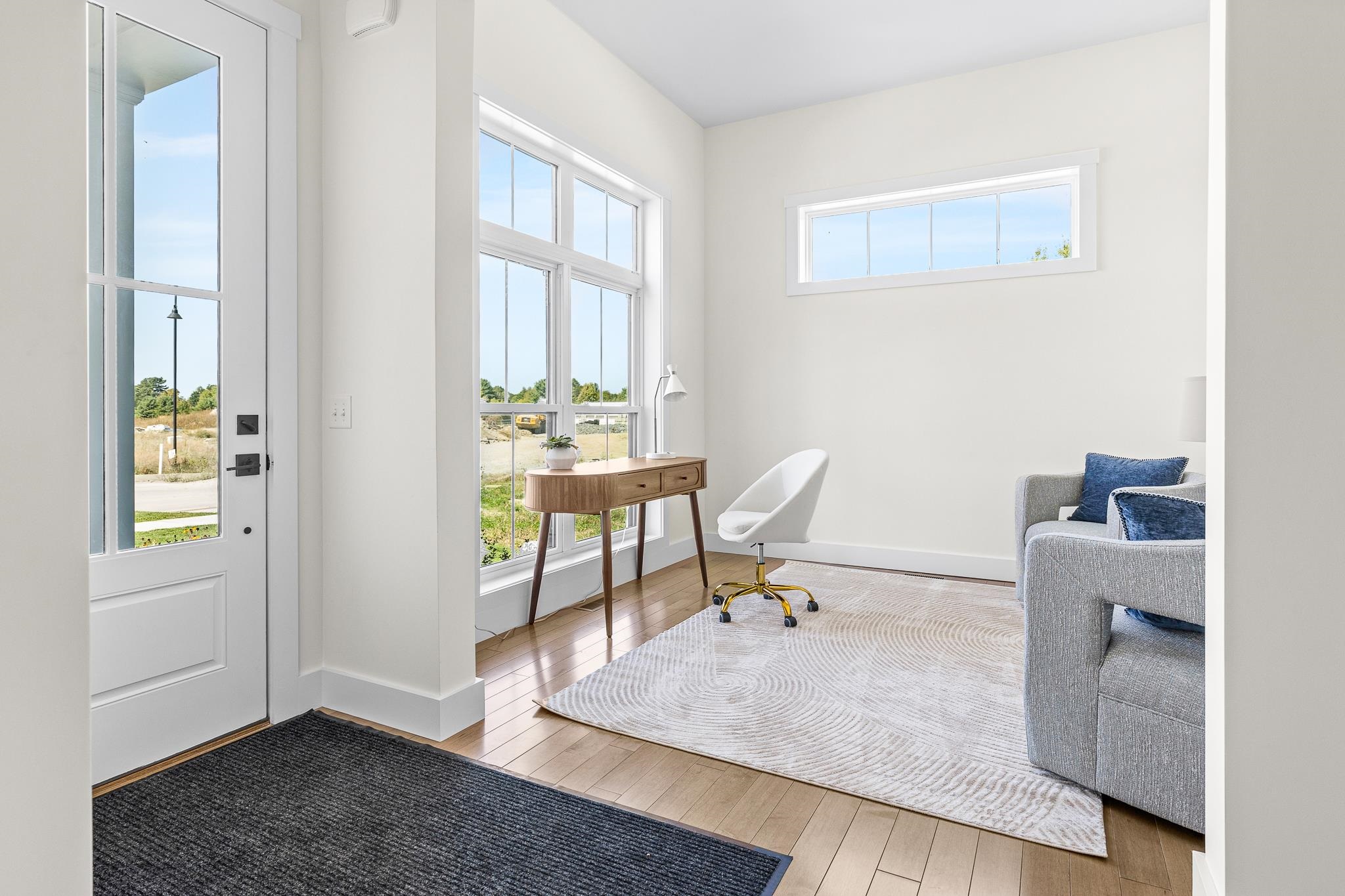 Move into this new carriage home this fall. This home backs up to open space, has all of the living spaces including primary suite on the first floor. The home has a walkout basement that can be finished to your needs. Our model home is open Thursday through Monday, 12 to 5 every week. This neighborhood community offers a perfect blend of serene landscape and city convenience. Tree lined streets lead to beautiful new homes, boasting open spaces, large windows and modern features. At the heart of the Annex will be amenities including an open space park with neighborhood swimming pool. Walking and bike paths to shopping, restaurants, schools and much more make this the prime location for your new home. Come see this great new home.