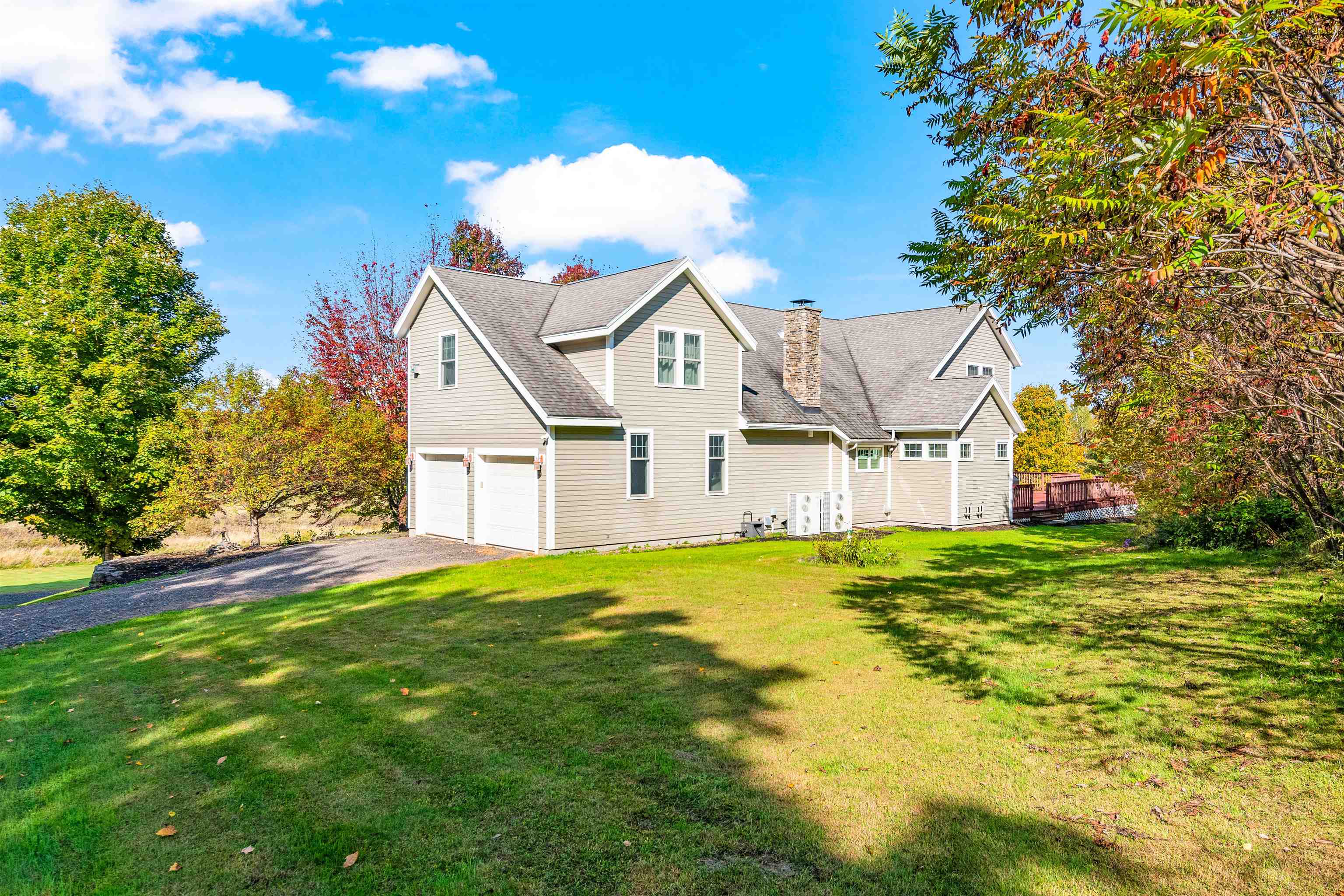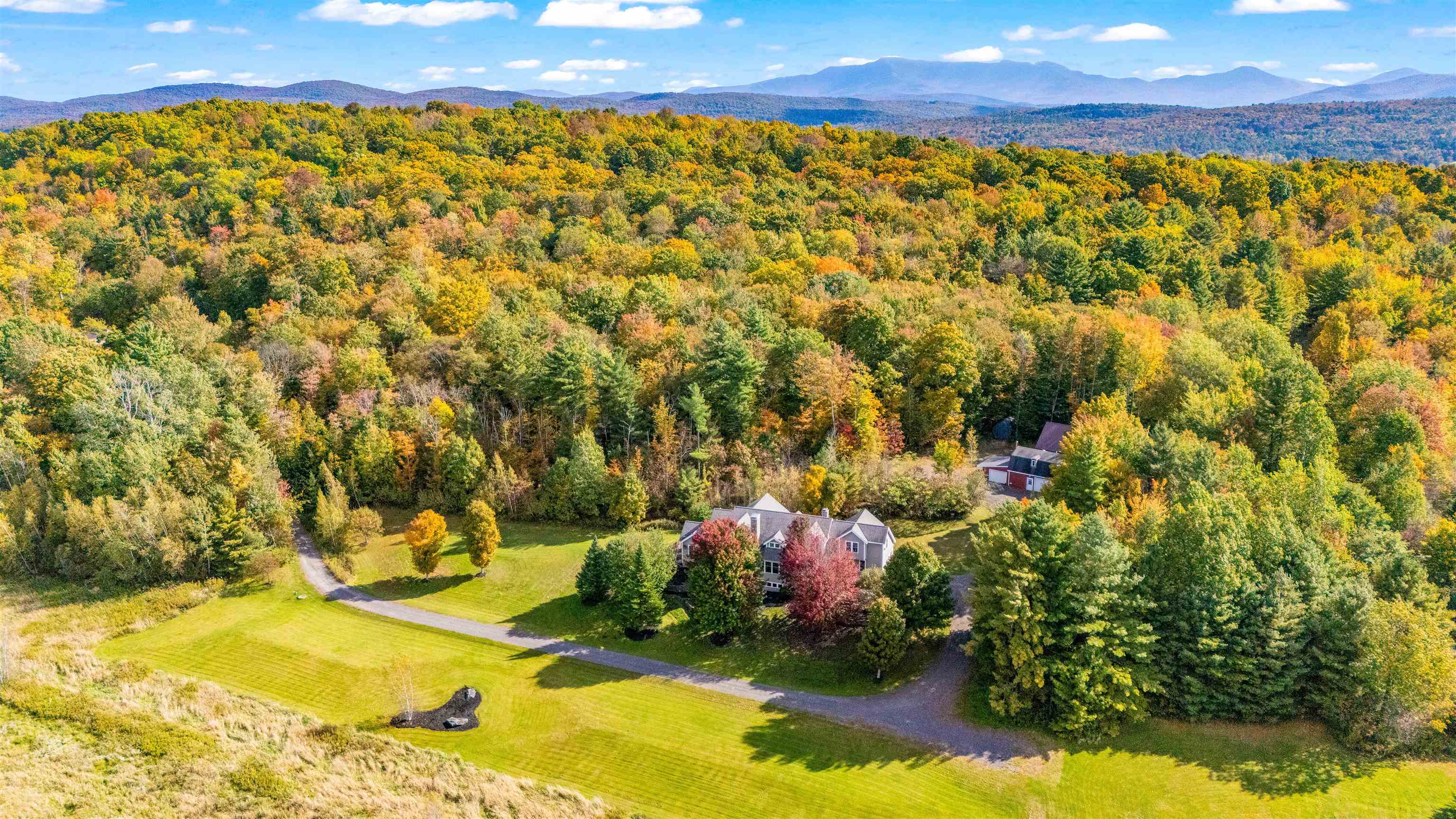 Exquisite Essex Vermont 4-bed, 4.5-bath luxury home with access to over 37 acres awaits your presence. Just 20 minutes to the Burlington Airport, this exceptional home blends modern comfort with timeless elegance—ideal for entertaining or peaceful everyday living. Inside, enjoy a bright open-concept layout with soaring cathedral ceilings, mini-splits for cooling, radiant hardwood heated floors, and a dramatic floor-to-ceiling stone fireplace. The chef’s kitchen boasts rich wood cabinetry, expansive counter space, a breakfast bar, and a sunlit breakfast nook with direct access to the deck & spacious formal dining room. The first-floor guest suite includes a 3/4 tiled bath and private deck access, plus a dedicated home office. Upstairs, the luxurious primary suite is your private retreat, featuring a gas fireplace, walk-in closet, and tiled shower and jacuzzi tub. Two additional bedrooms share a bath and nearby laundry. The finished lower level offers a fireplace, lounge space, full bar, game room, gym, & den—ideal for entertaining. Enjoy a heated attached 2-car garage, stone patio, and a detached outbuilding with finished space above, including a 3/4 bath. This home offers total privacy, peaceful wooded views, and endless space for recreation, gardening, or even homesteading. Don't miss the treehouse on the homes dedicated 10 acres and enjoy the 27+ common acres with walking trails, an iconic feature for a Vermont home. Perfect for those seeking a one-of-a-kind property.