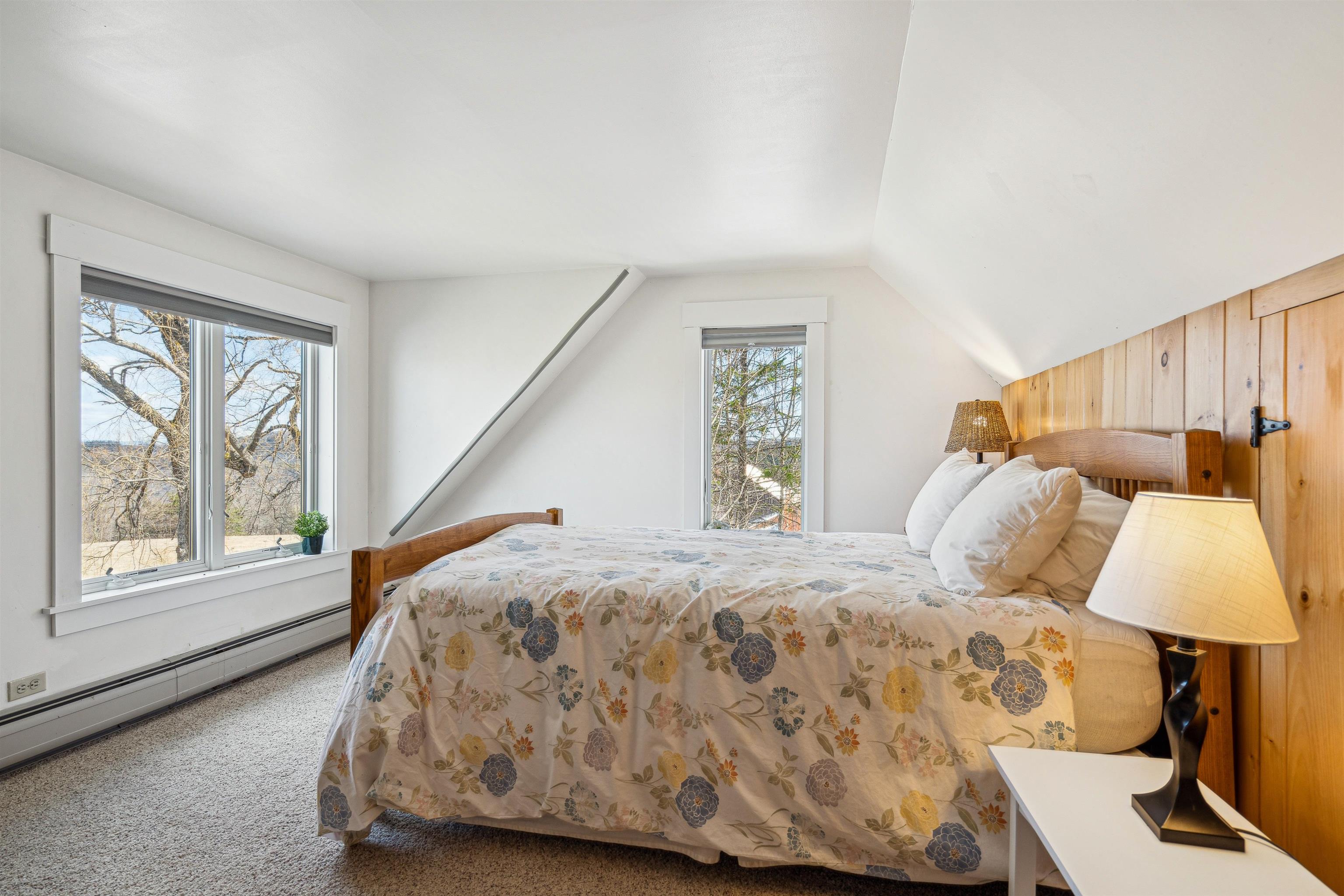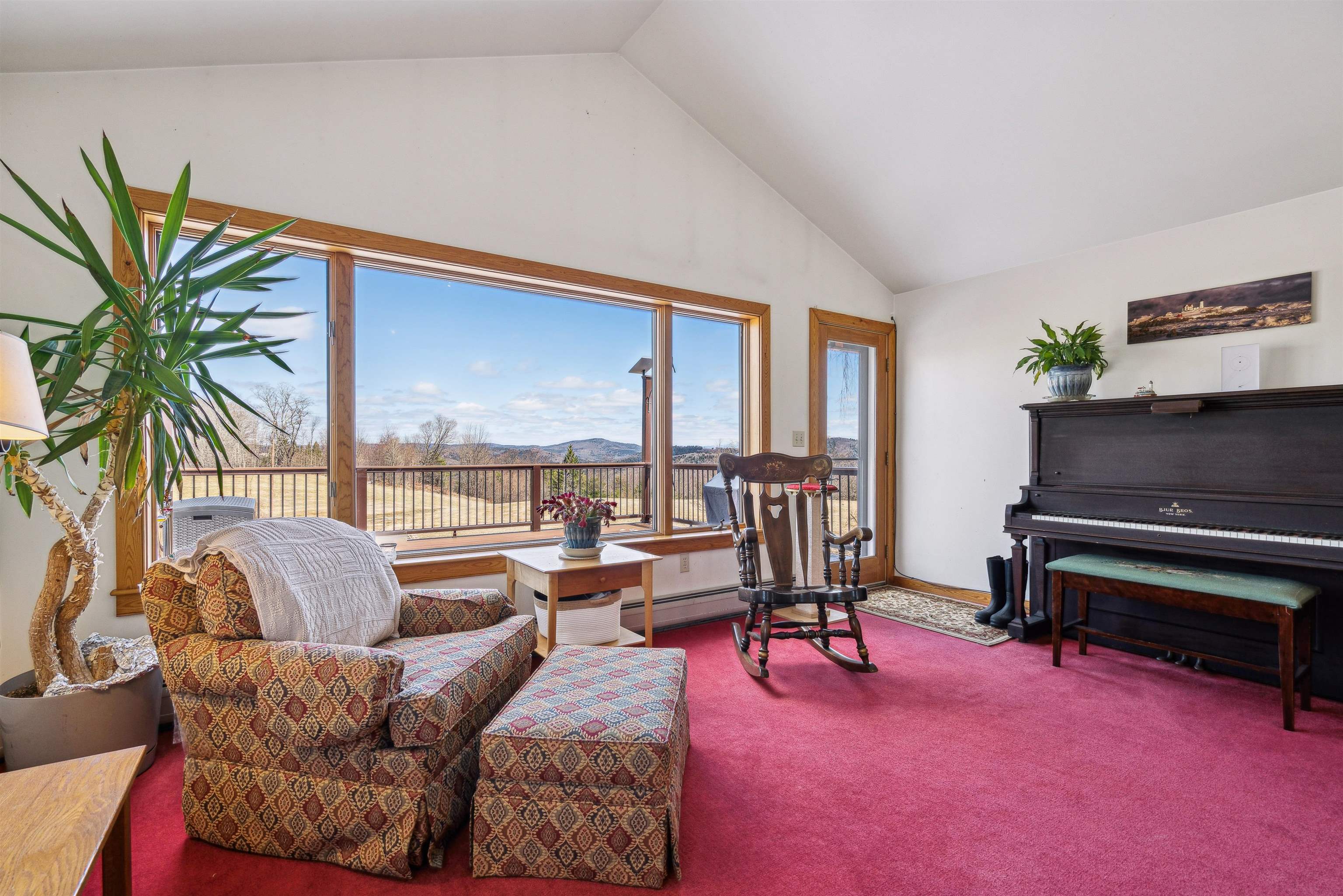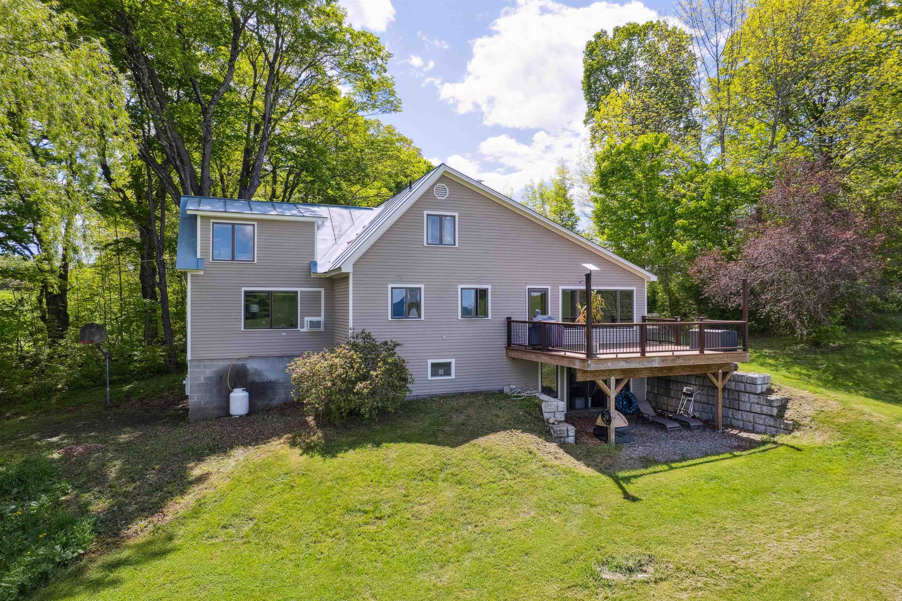 Price Improvement! Brand new 4 bedroom septic system installed and home inspection report ready to share with a buyer! Wake up to a stunning pastoral mountain view that makes your morning coffee on the composite deck feel extra special. This 4-bedroom, 2-bath home is perfect for a family, a second home, single-level living, or anyone looking for a peaceful escape. The main level offers a comfortable layout, while a full walkout basement—partially finished beneath the living room—adds extra usable space. You'll find two dedicated storage rooms, a workshop/utility area, and a converted garage currently used for wood storage. The cozy Rumford fireplace features three flues and, while the primary heat source is hot water baseboard from the oil-fired boiler, the fireplace brings warmth and ambiance throughout the colder months. The main bedroom, conveniently located off the kitchen, includes an en-suite bath. A second bathroom and separate laundry is also off the kitchen. Upstairs, you’ll find three additional bedrooms or flexible spaces—ideal for an office, craft room, or guest space. Generously sized with great natural light, two of these rooms (plus the primary) offer sweeping views of the distant mountain ranges. Be sure to check out the virtual staging for inspiration on how to make this peaceful retreat your own!