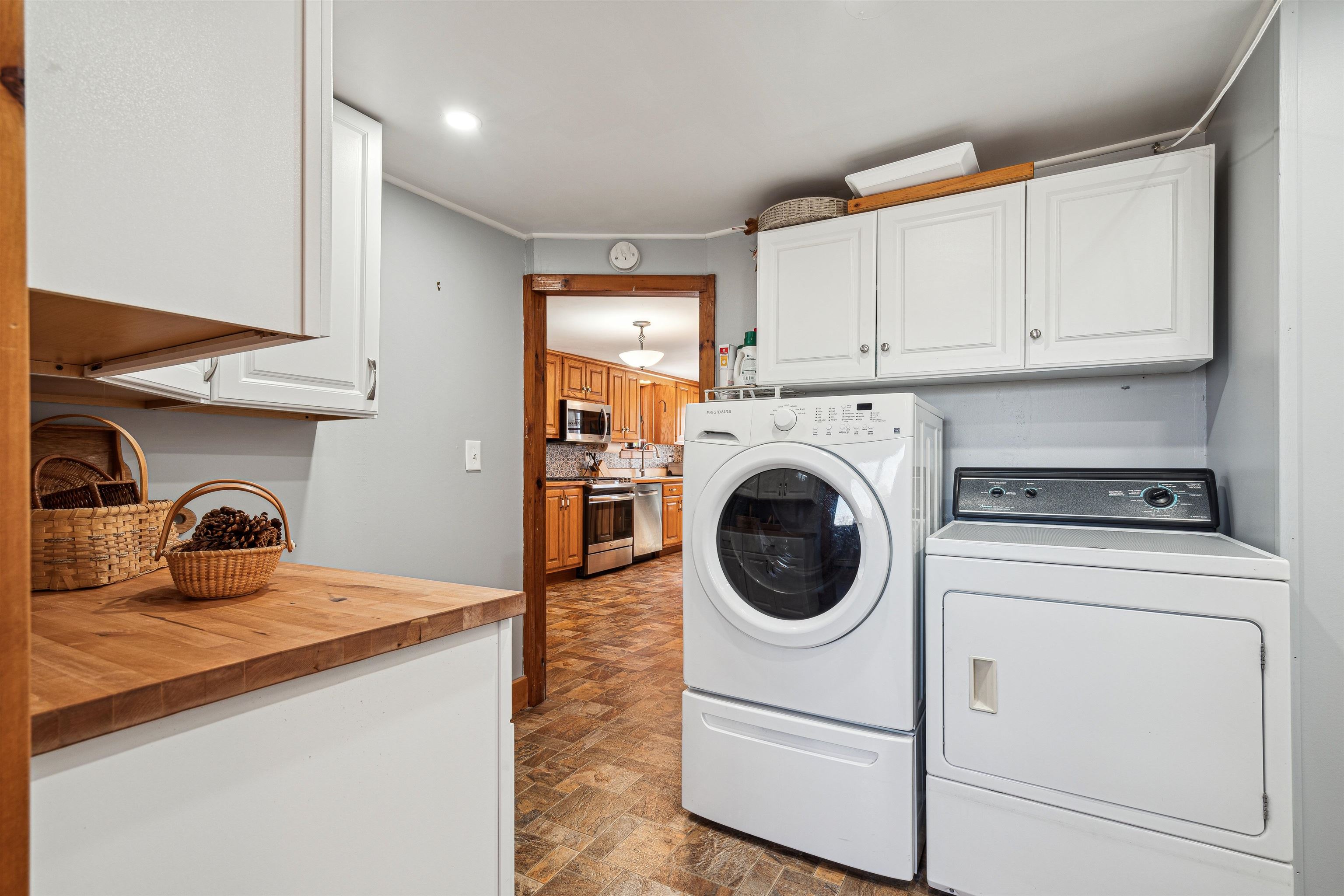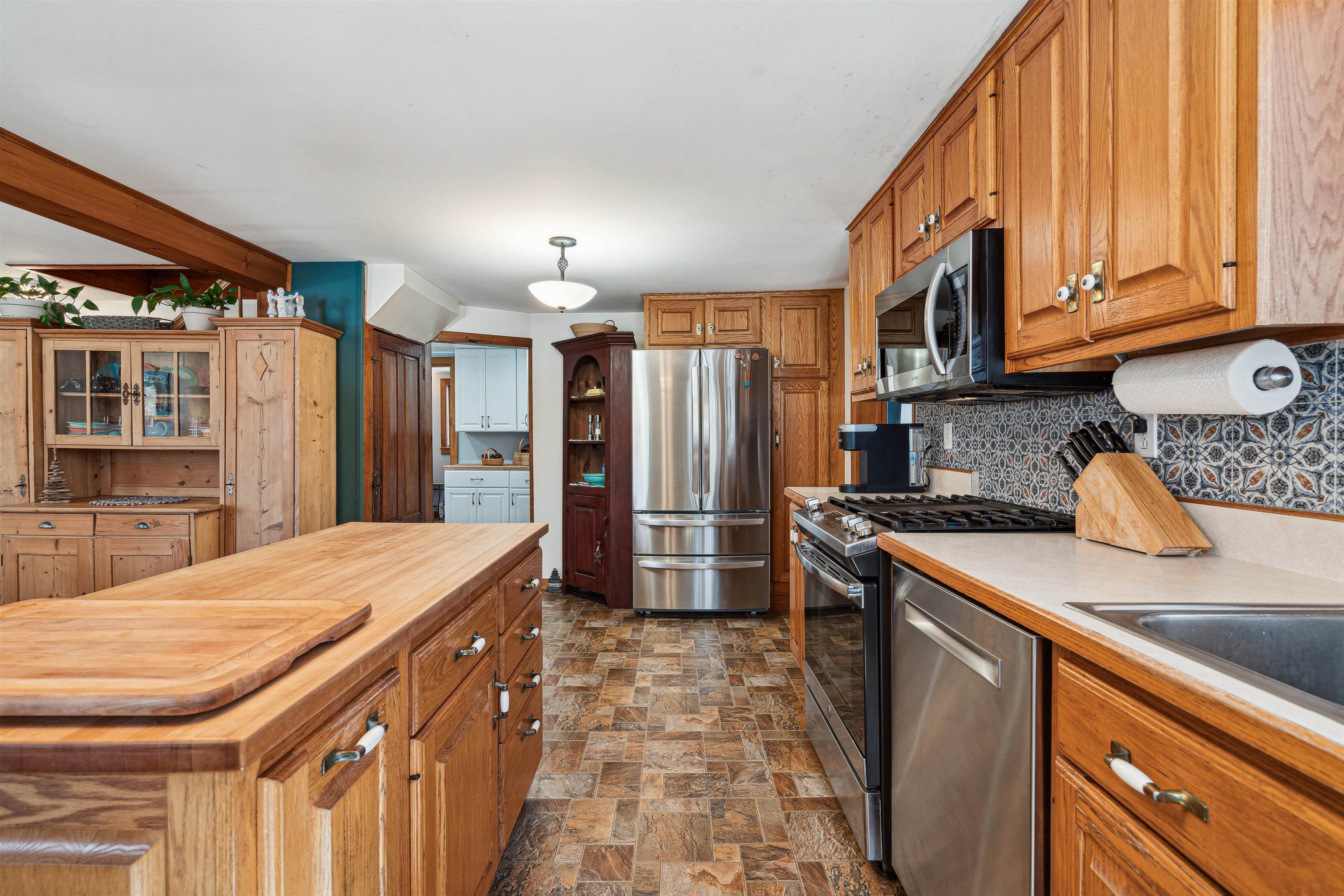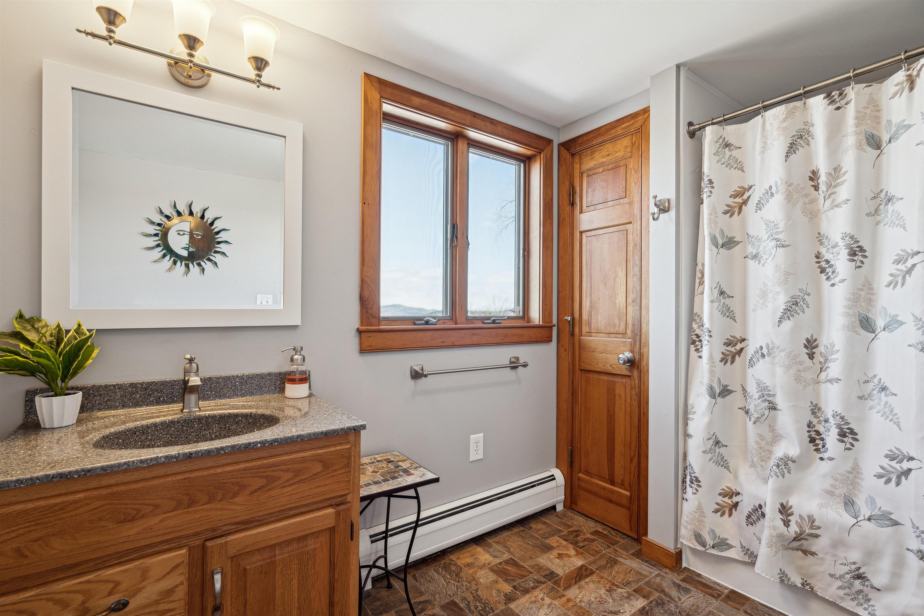Price Improvement! Brand new 4 bedroom septic system installed and home inspection report ready to share with a buyer! Wake up to a stunning pastoral mountain view that makes your morning coffee on the composite deck feel extra special. This 4-bedroom, 2-bath home is perfect for a family, a second home, single-level living, or anyone looking for a peaceful escape. The main level offers a comfortable layout, while a full walkout basement—partially finished beneath the living room—adds extra usable space. You'll find two dedicated storage rooms, a workshop/utility area, and a converted garage currently used for wood storage. The cozy Rumford fireplace features three flues and, while the primary heat source is hot water baseboard from the oil-fired boiler, the fireplace brings warmth and ambiance throughout the colder months. The main bedroom, conveniently located off the kitchen, includes an en-suite bath. A second bathroom and separate laundry is also off the kitchen. Upstairs, you’ll find three additional bedrooms or flexible spaces—ideal for an office, craft room, or guest space. Generously sized with great natural light, two of these rooms (plus the primary) offer sweeping views of the distant mountain ranges. Be sure to check out the virtual staging for inspiration on how to make this peaceful retreat your own!