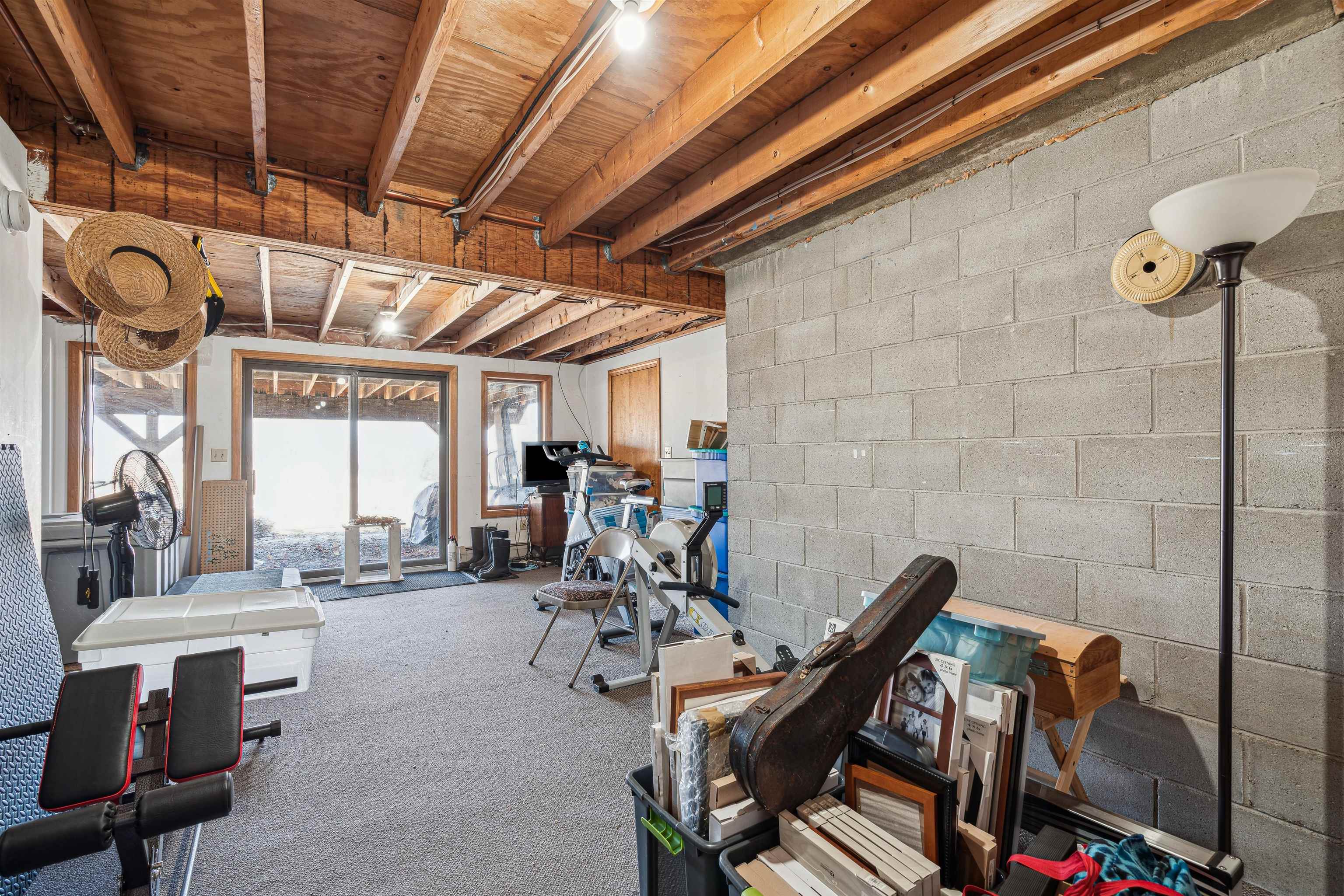 - Concrete Floor, Partially Finished, Interior Stairs, Storage Space, Walkout