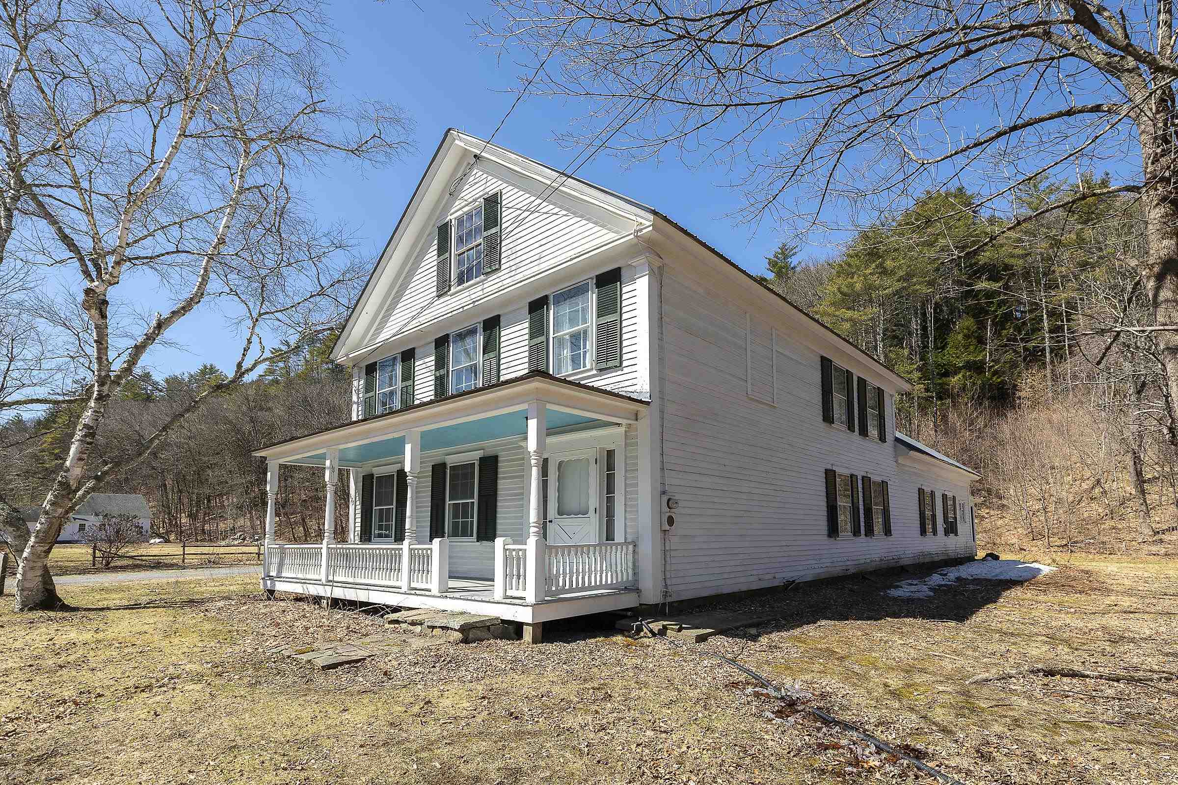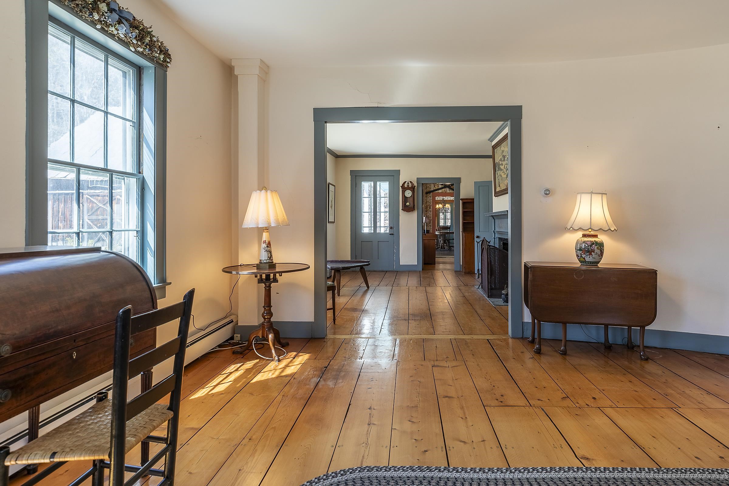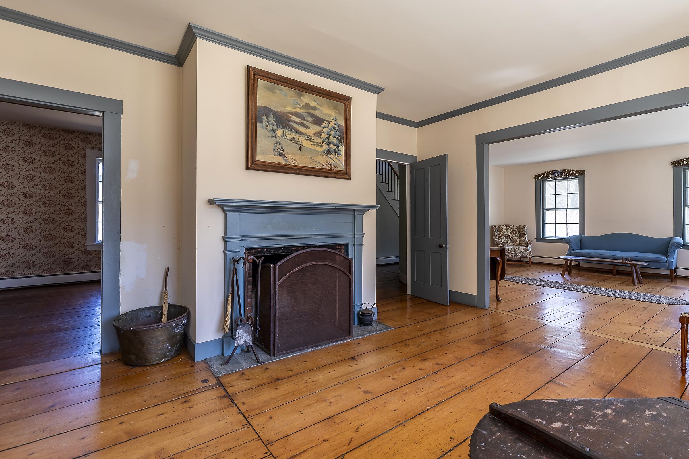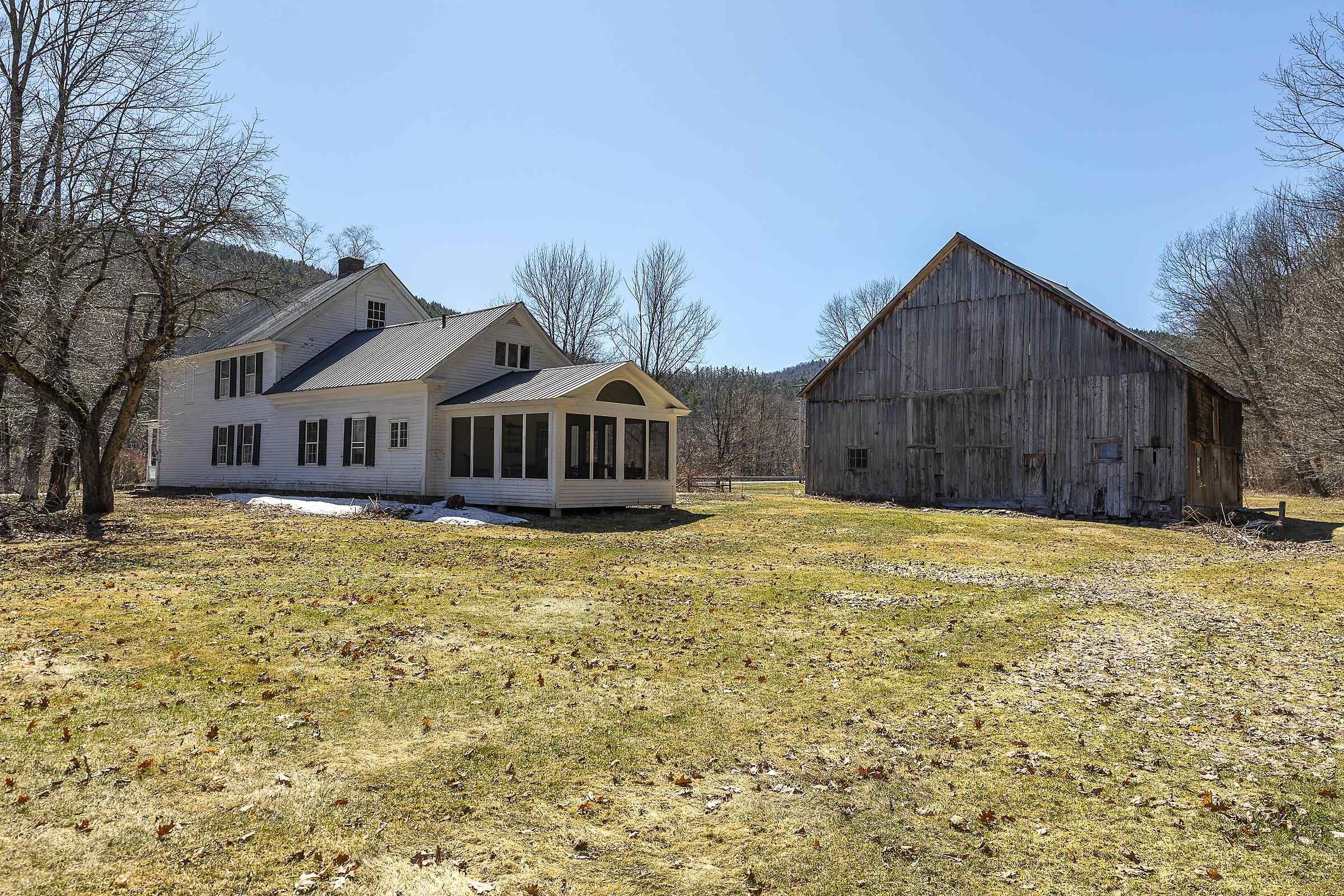 Step into a classic Vermont farmhouse from the 1830s, built by a successful mill owner and loved by its current stewards for over fifty years. Minutes from the center of charming Grafton and only thirty minutes from Okemo, this beautiful property offers wide, level lawns and sits on 45 acres of untouched woodland in the hills behind—never logged and fully unencumbered. Inside, the original features and modern updates make this home a pleasure. Enjoy the warmth of two fireplaces, admire the curved plaster walls, and relax in the spacious living room that connects to a cozy family room. Gather around the table in the dining room, or retreat to the downstairs bedroom and bath. Upstairs, three more bedrooms and a fun bunk room with five built-in beds make ideal accommodations for kids or guests. The welcoming eat-in kitchen leads to a lovely screened porch, a perfect spot for your morning coffee. There’s plenty of storage throughout the house, and the antique barn is as well suited for festive dinners as it is for a pony or two. Sit on the front porch and listen to the gentle sounds of the nearby Saxtons River. If you feel like exploring, take a short walk to the lively village center, where you can meet neighbors, grab a bite to eat at the Grafton Inn, or visit the library for your next read. This home is more than just a place to live—it's an entree into a warm and inviting community filled with history and natural beauty.