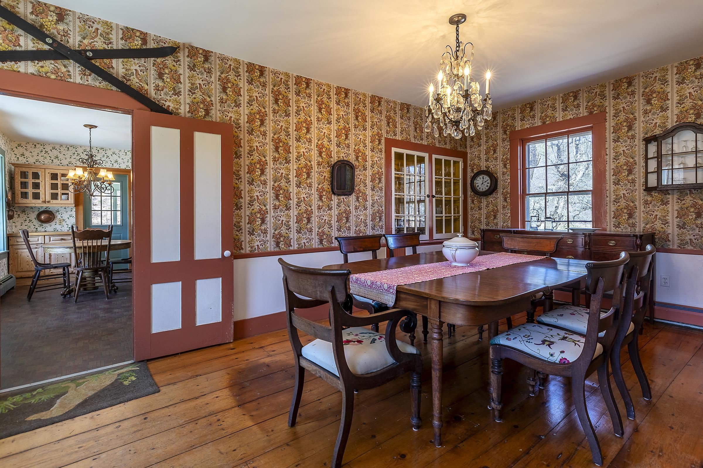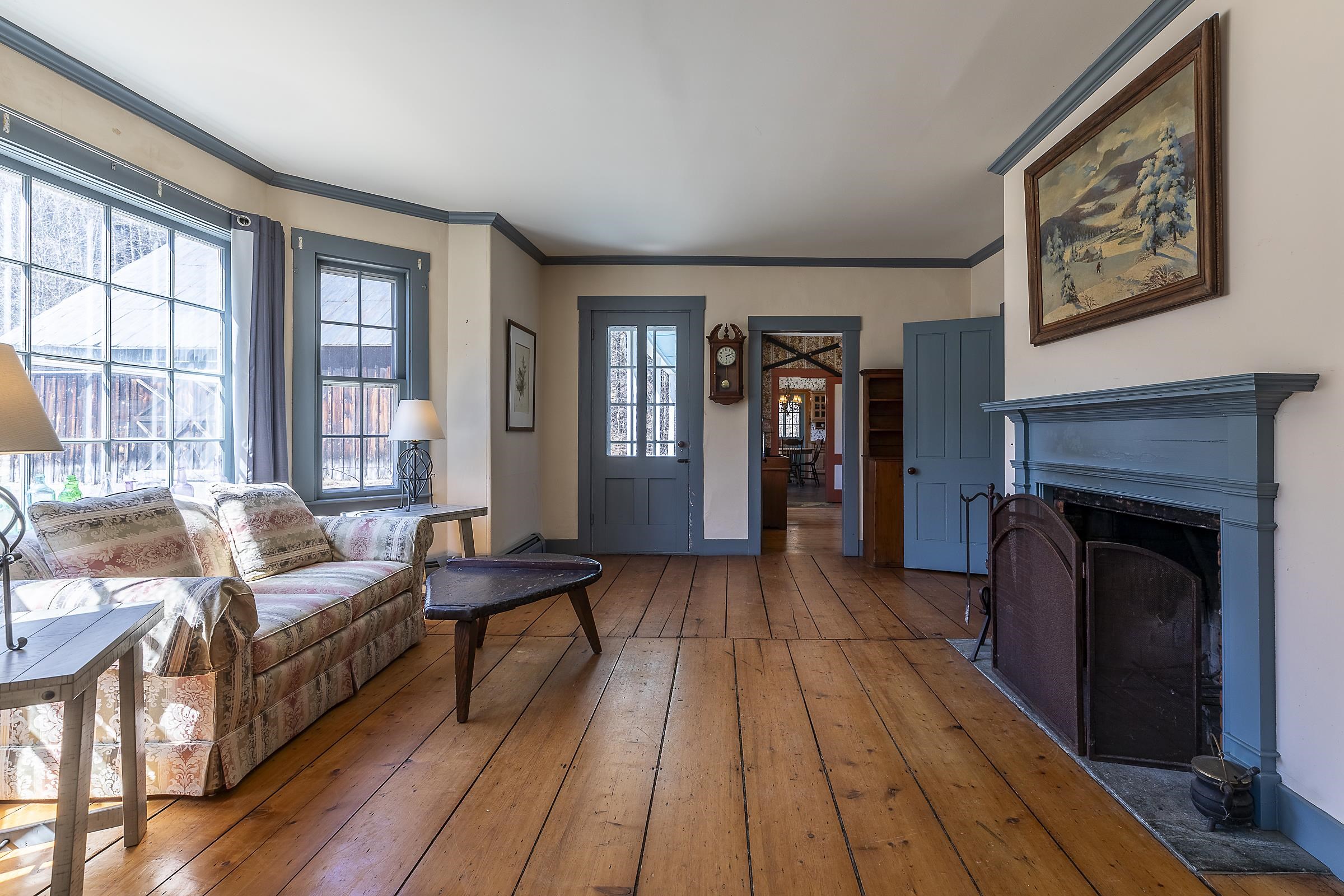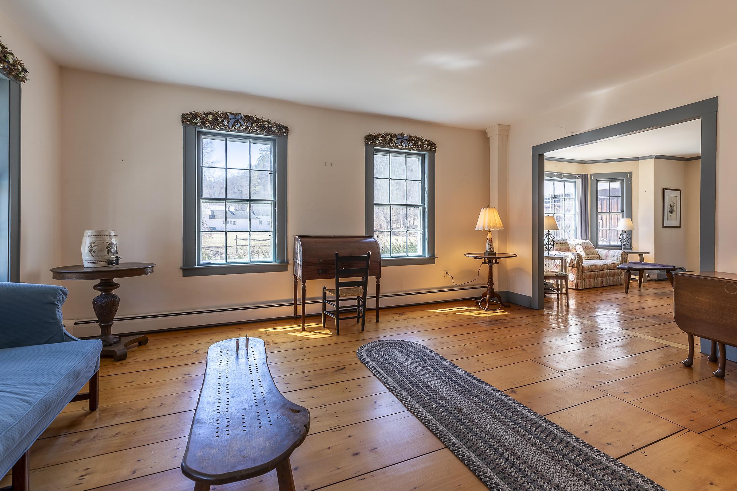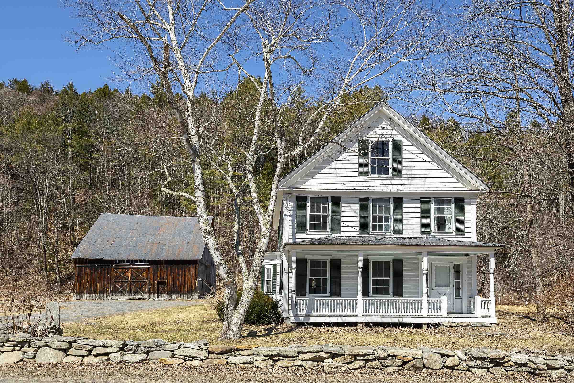 Step into a classic Vermont farmhouse from the 1830s, built by a successful mill owner and loved by its current stewards for over fifty years. Minutes from the center of charming Grafton and only thirty minutes from Okemo, this beautiful property offers wide, level lawns and sits on 45 acres of untouched woodland in the hills behind—never logged and fully unencumbered. Inside, the original features and modern updates make this home a pleasure. Enjoy the warmth of two fireplaces, admire the curved plaster walls, and relax in the spacious living room that connects to a cozy family room. Gather around the table in the dining room, or retreat to the downstairs bedroom and bath. Upstairs, three more bedrooms and a fun bunk room with five built-in beds make ideal accommodations for kids or guests. The welcoming eat-in kitchen leads to a lovely screened porch, a perfect spot for your morning coffee. There’s plenty of storage throughout the house, and the antique barn is as well suited for festive dinners as it is for a pony or two. Sit on the front porch and listen to the gentle sounds of the nearby Saxtons River. If you feel like exploring, take a short walk to the lively village center, where you can meet neighbors, grab a bite to eat at the Grafton Inn, or visit the library for your next read. This home is more than just a place to live—it's an entree into a warm and inviting community filled with history and natural beauty.