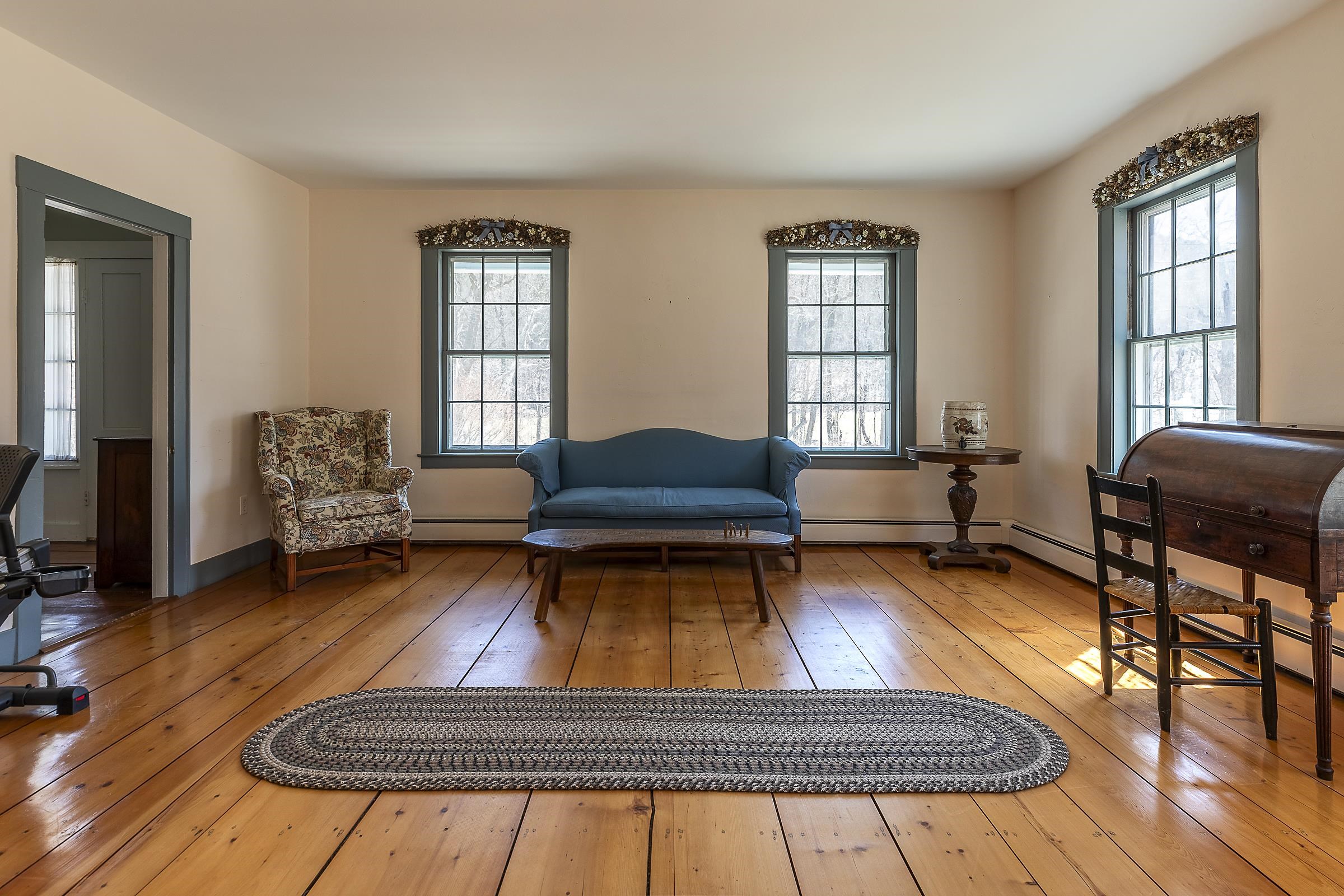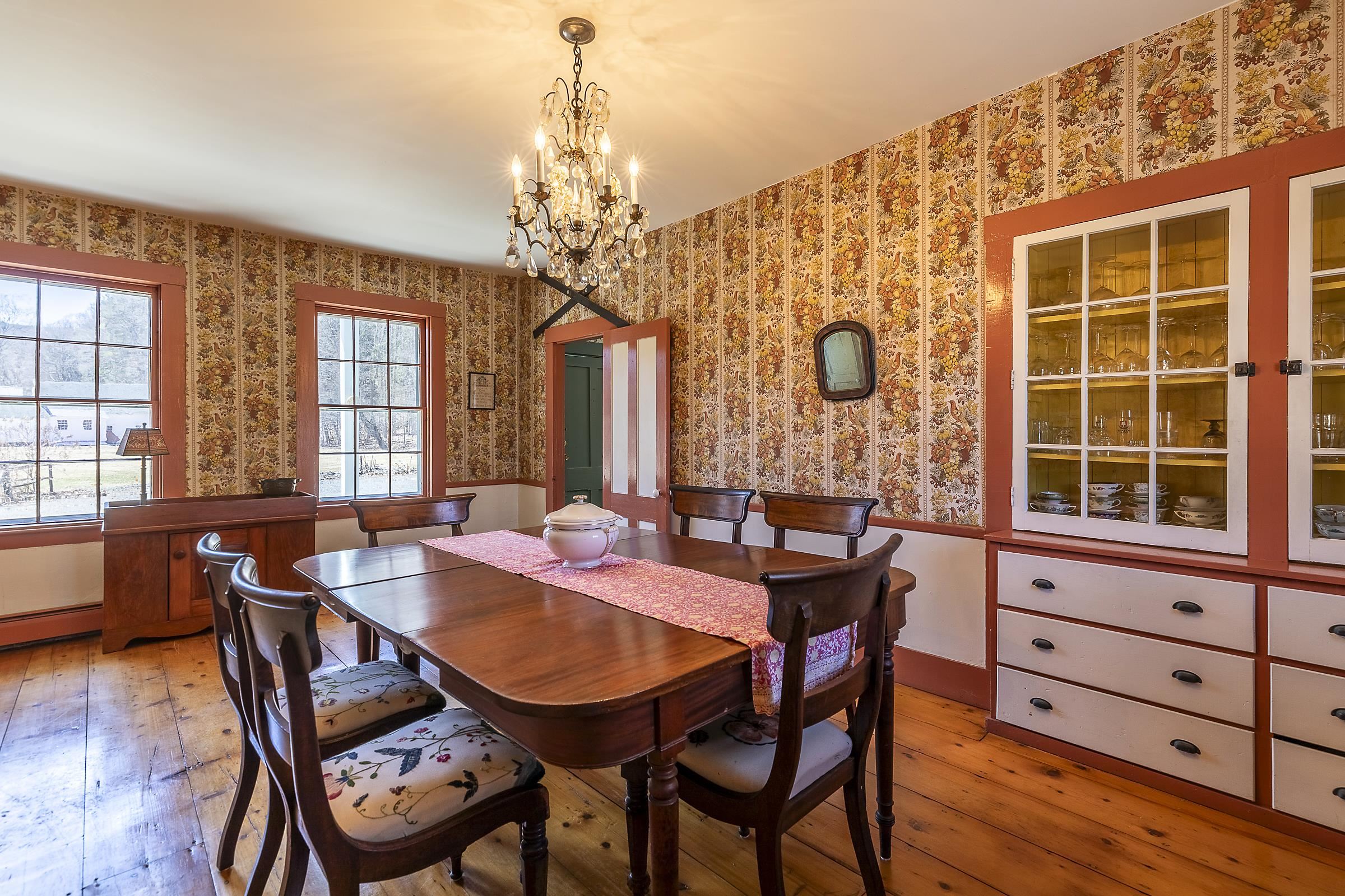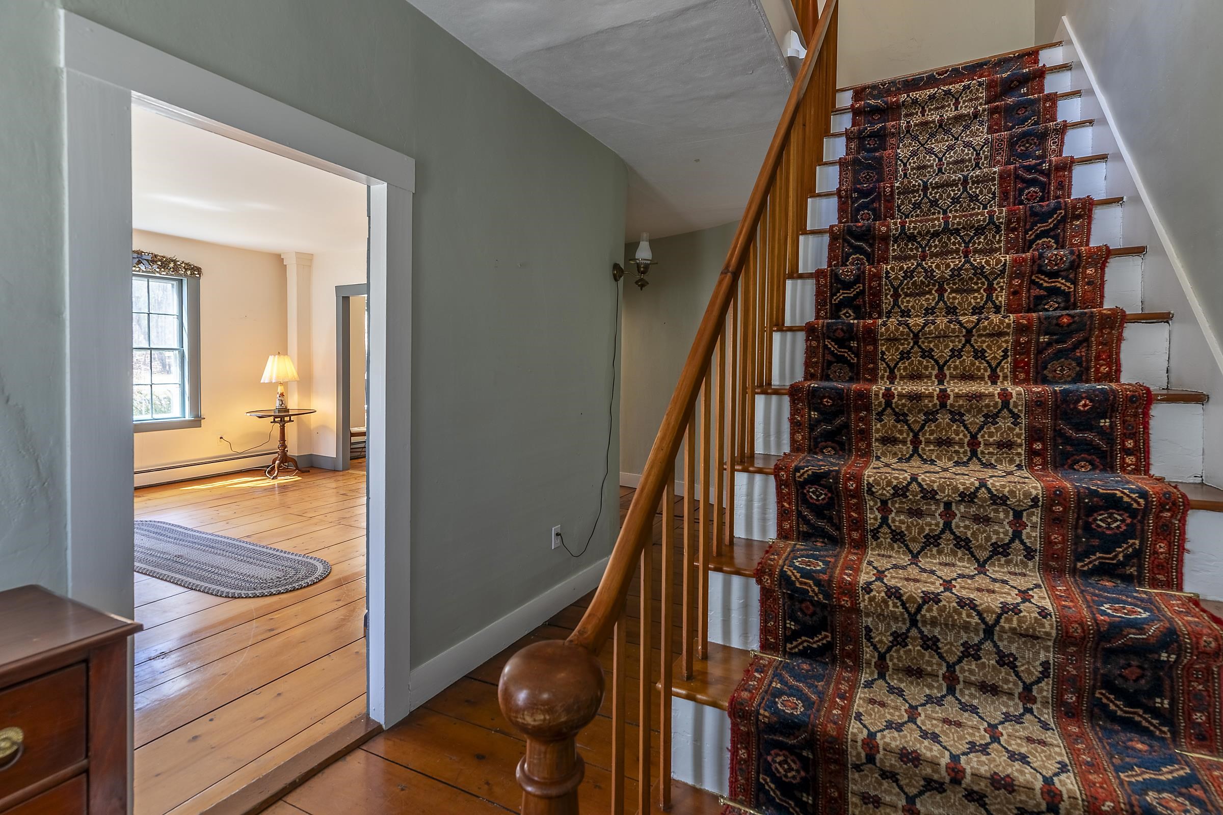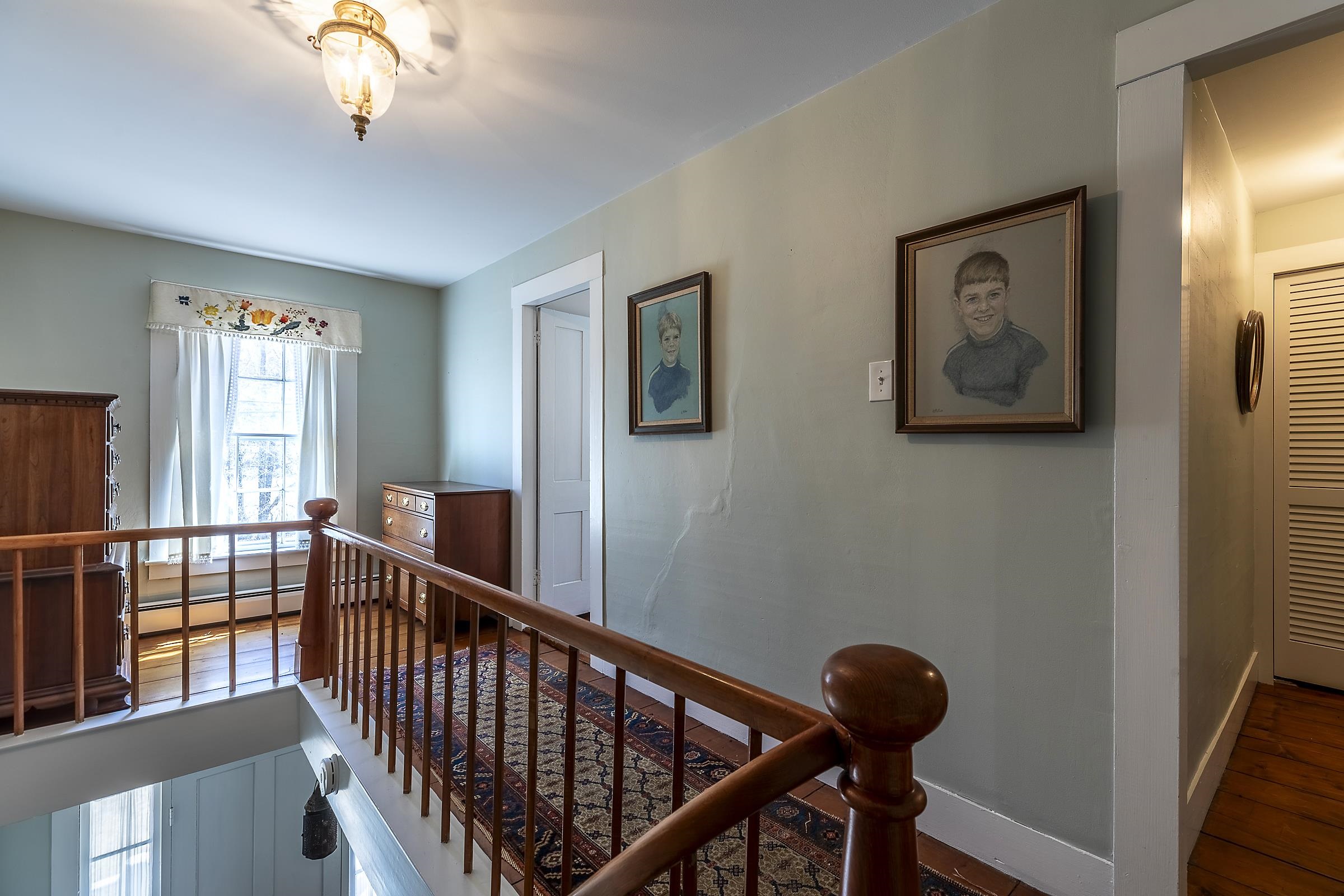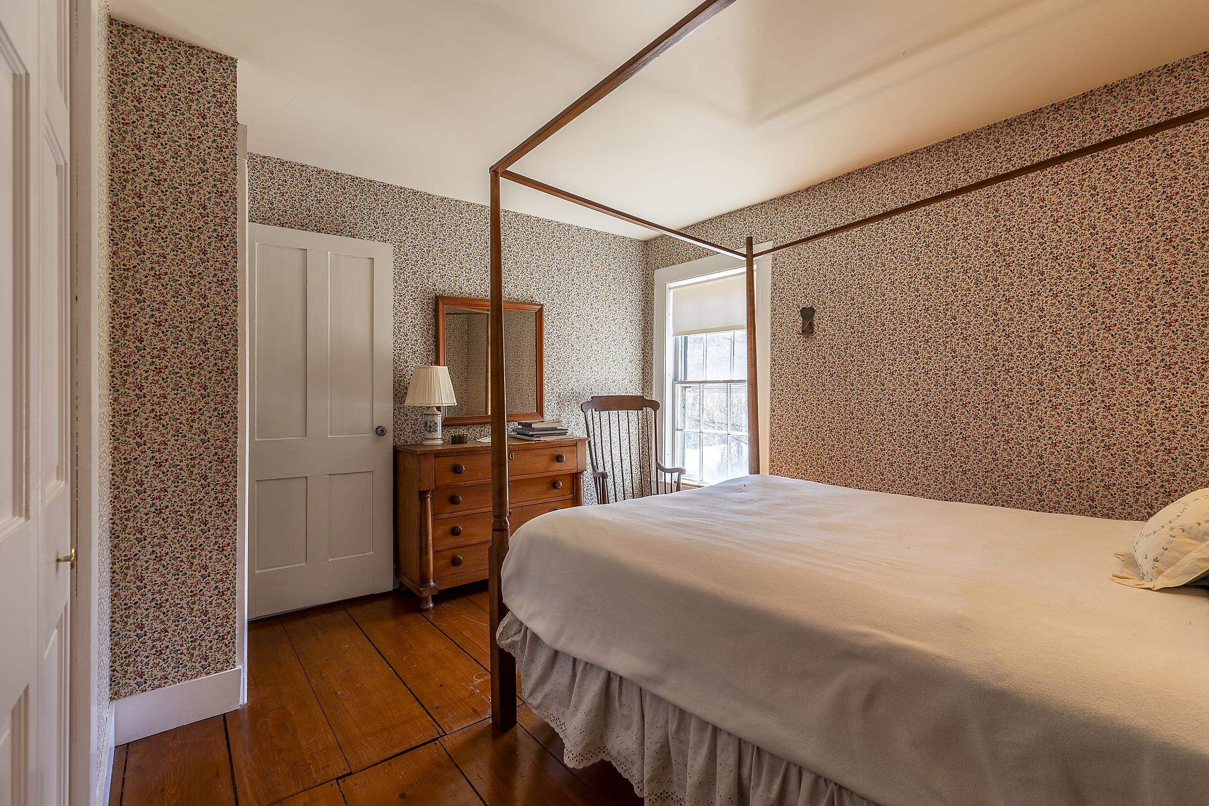 Step into a classic Vermont farmhouse from the 1830s, built by a successful mill owner and loved by its current stewards for over fifty years. Minutes from the center of charming Grafton and only thirty minutes from Okemo, this beautiful property offers wide, level lawns and sits on 45 acres of untouched woodland in the hills behind—never logged and fully unencumbered. Inside, the original features and modern updates make this home a pleasure. Enjoy the warmth of two fireplaces, admire the curved plaster walls, and relax in the spacious living room that connects to a cozy family room. Gather around the table in the dining room, or retreat to the downstairs bedroom and bath. Upstairs, three more bedrooms and a fun bunk room with five built-in beds make ideal accommodations for kids or guests. The welcoming eat-in kitchen leads to a lovely screened porch, a perfect spot for your morning coffee. There’s plenty of storage throughout the house, and the antique barn is as well suited for festive dinners as it is for a pony or two. Sit on the front porch and listen to the gentle sounds of the nearby Saxtons River. If you feel like exploring, take a short walk to the lively village center, where you can meet neighbors, grab a bite to eat at the Grafton Inn, or visit the library for your next read. This home is more than just a place to live—it's an entree into a warm and inviting community filled with history and natural beauty.