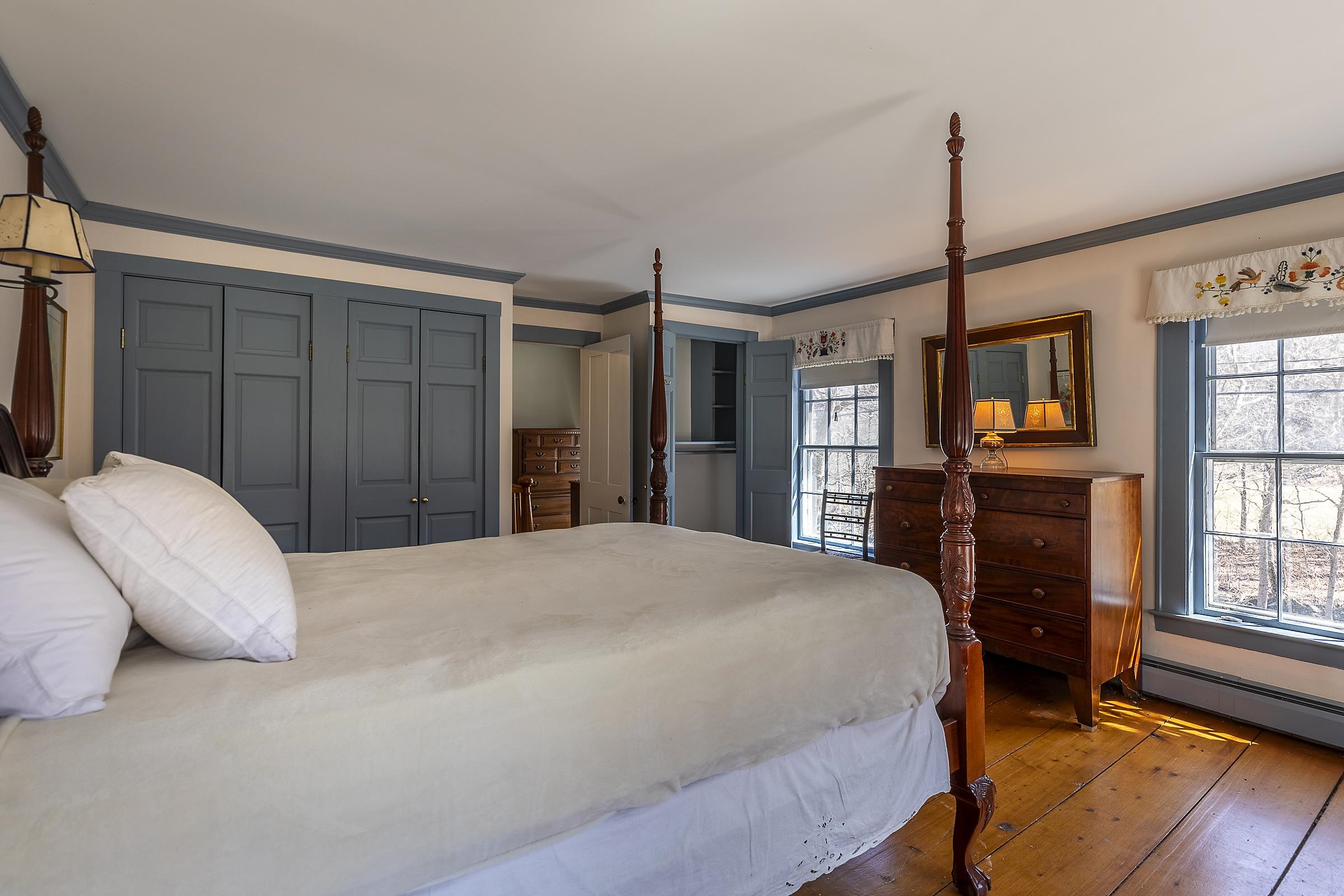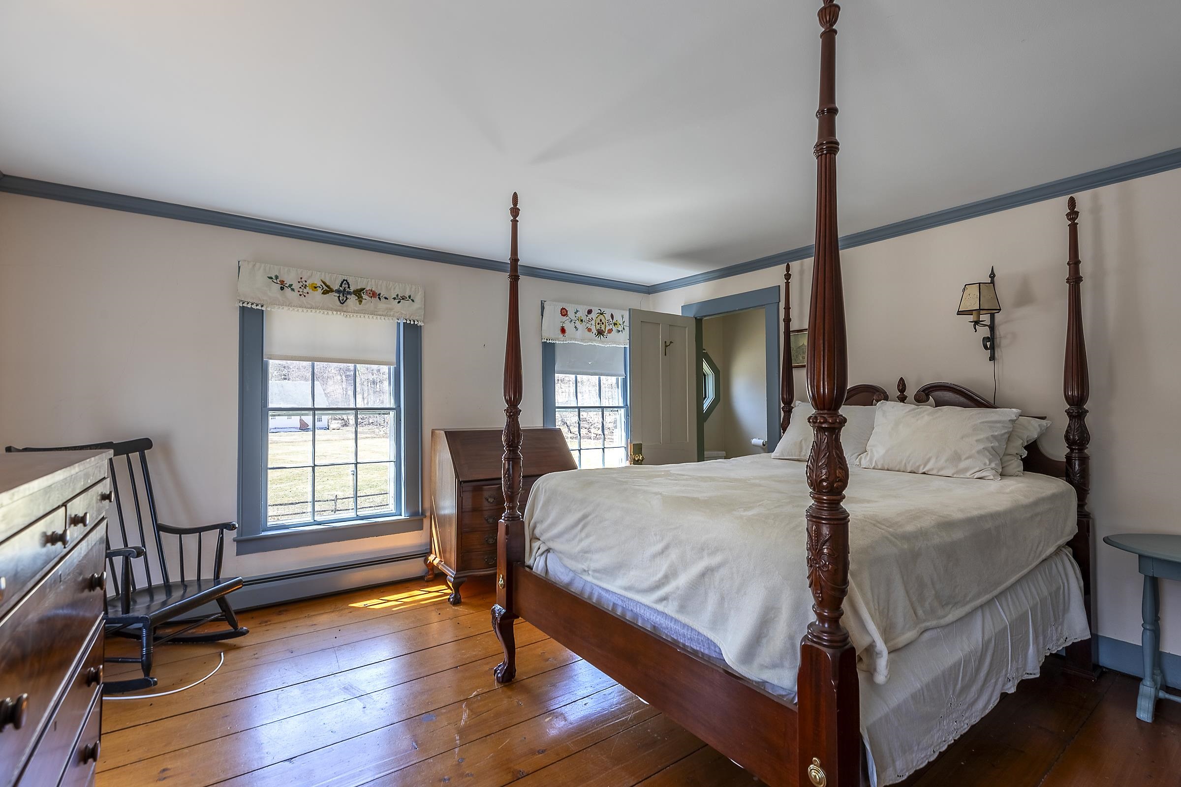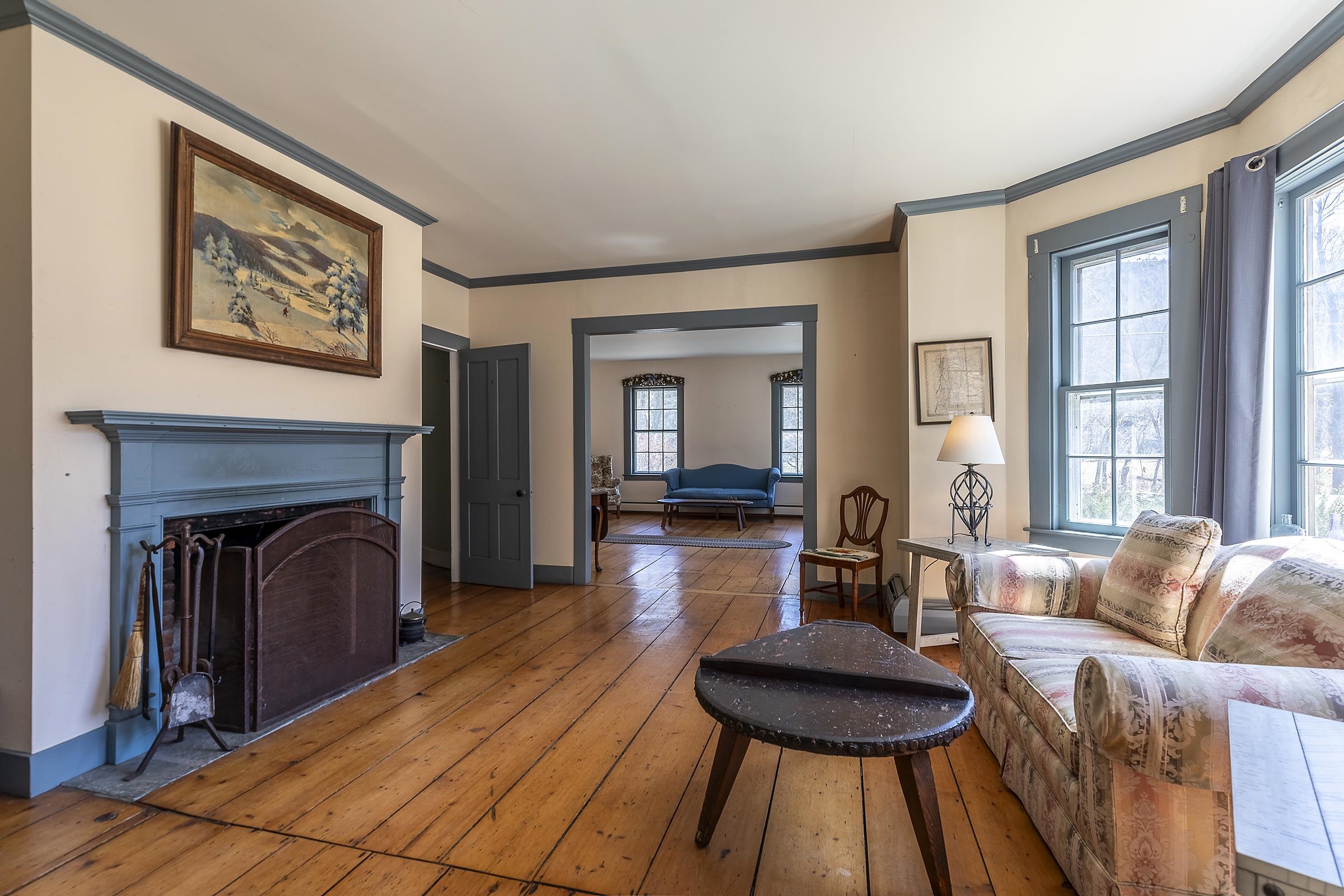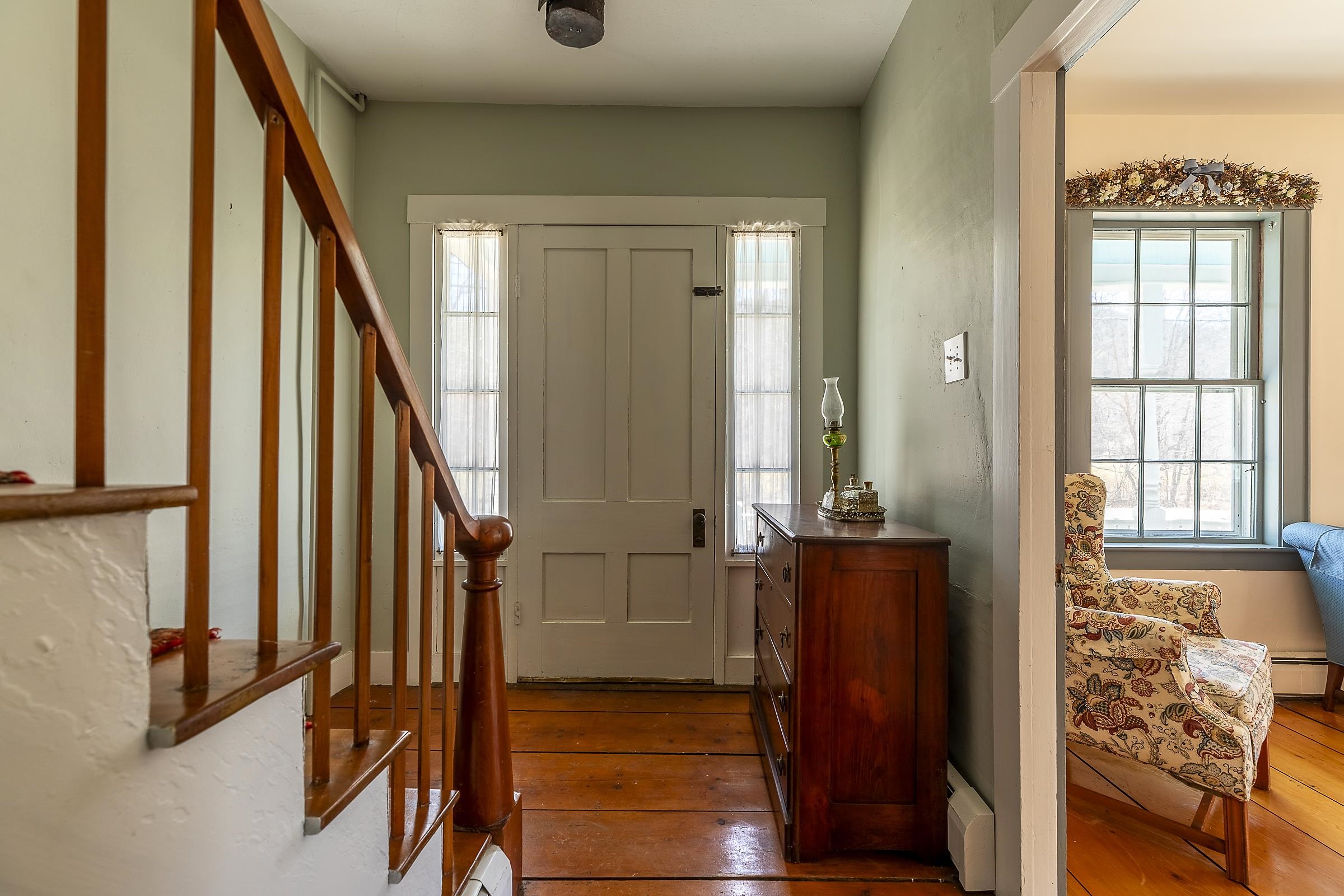 Step into a classic Vermont farmhouse from the 1830s, built by a successful mill owner and loved by its current stewards for over fifty years. Minutes from the center of charming Grafton and only thirty minutes from Okemo, this beautiful property offers wide, level lawns and sits on 45 acres of untouched woodland in the hills behind—never logged and fully unencumbered. Inside, the original features and modern updates make this home a pleasure. Enjoy the warmth of two fireplaces, admire the curved plaster walls, and relax in the spacious living room that connects to a cozy family room. Gather around the table in the dining room, or retreat to the downstairs bedroom and bath. Upstairs, three more bedrooms and a fun bunk room with five built-in beds make ideal accommodations for kids or guests. The welcoming eat-in kitchen leads to a lovely screened porch, a perfect spot for your morning coffee. There’s plenty of storage throughout the house, and the antique barn is as well suited for festive dinners as it is for a pony or two. Sit on the front porch and listen to the gentle sounds of the nearby Saxtons River. If you feel like exploring, take a short walk to the lively village center, where you can meet neighbors, grab a bite to eat at the Grafton Inn, or visit the library for your next read. This home is more than just a place to live—it's an entree into a warm and inviting community filled with history and natural beauty.