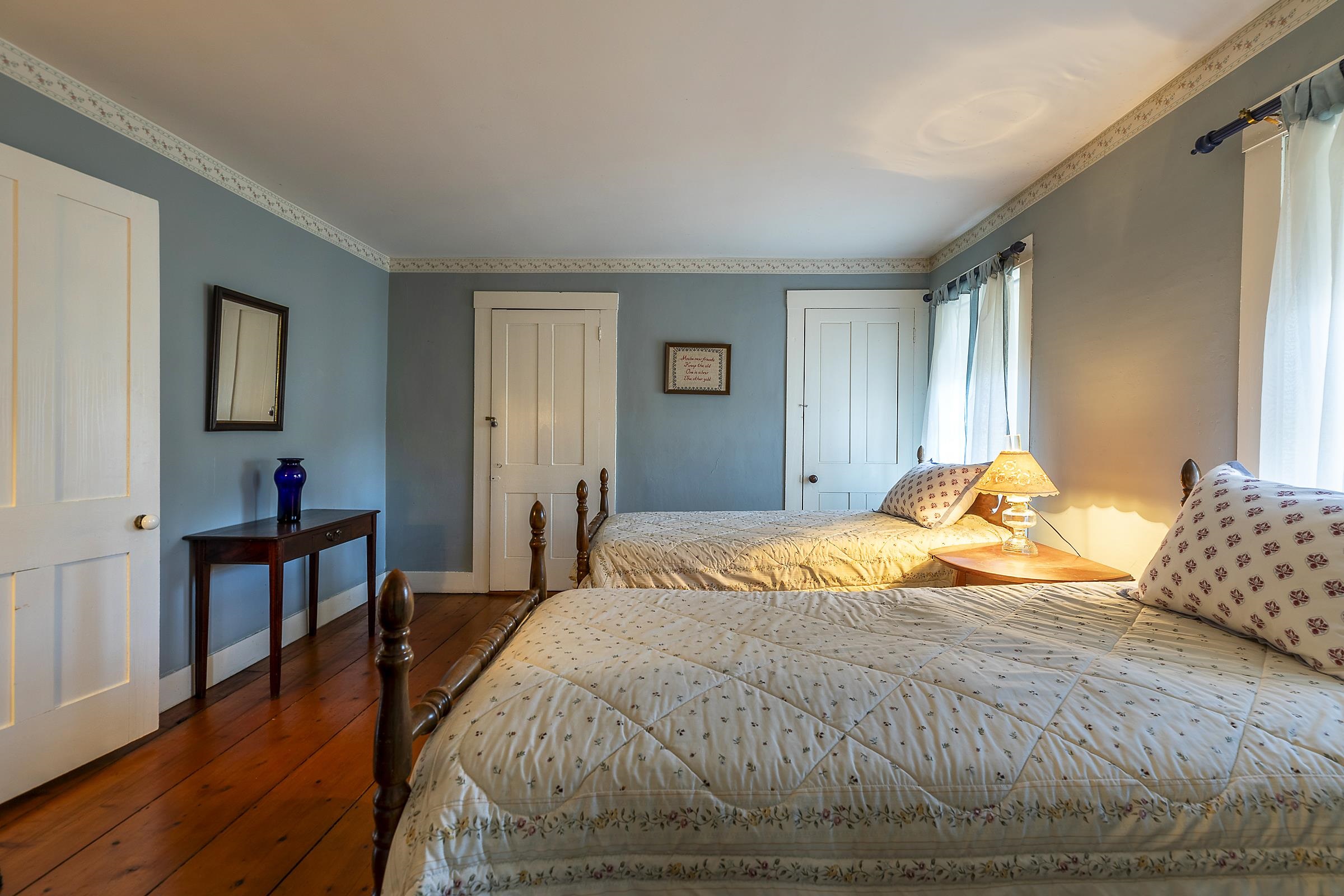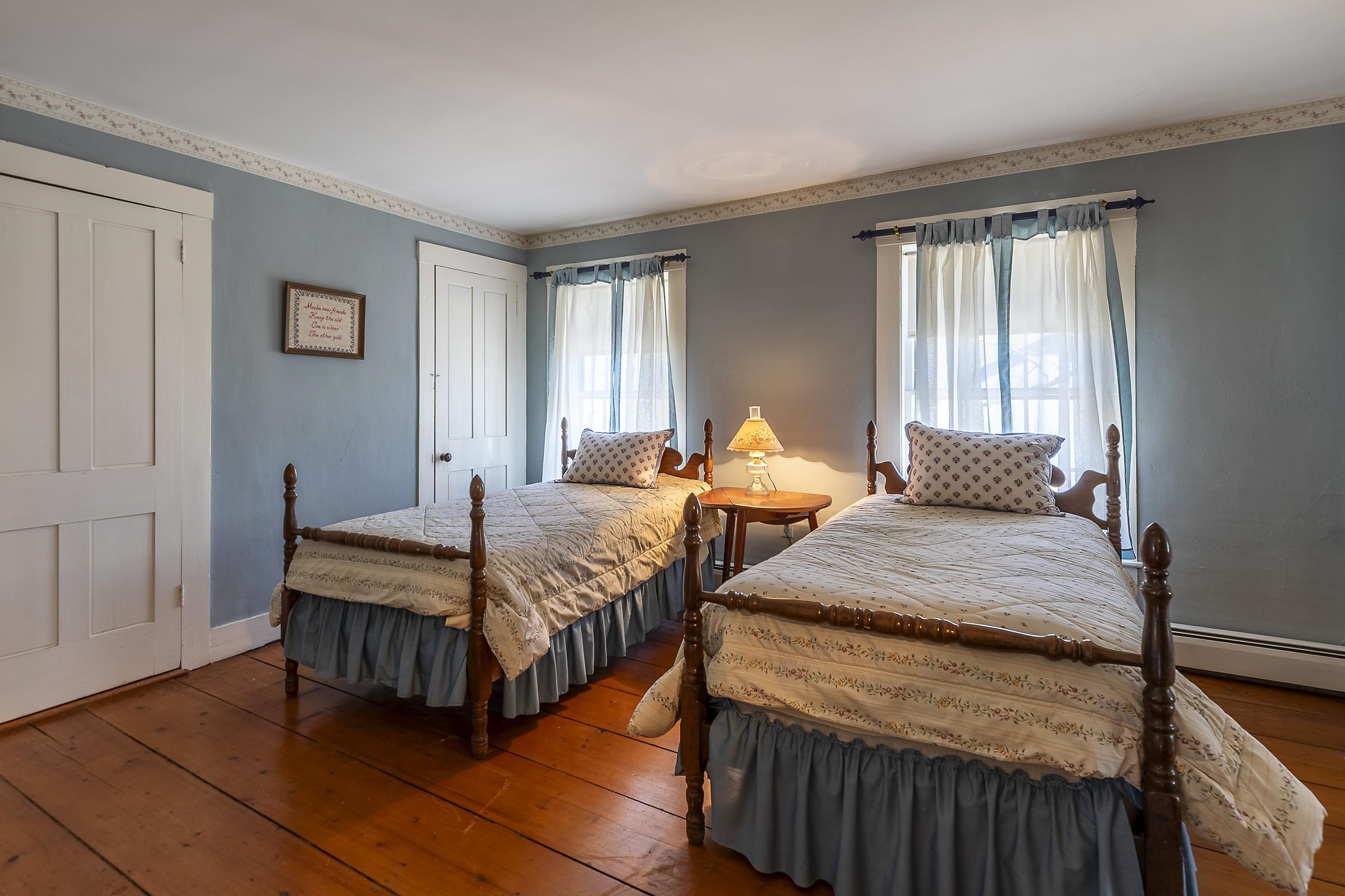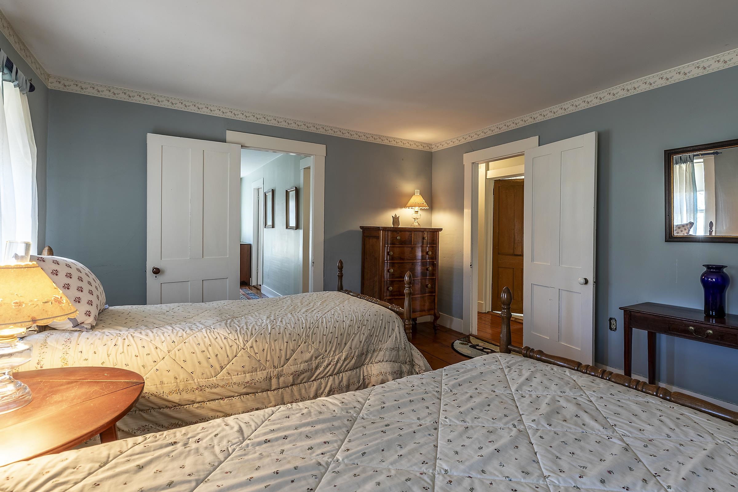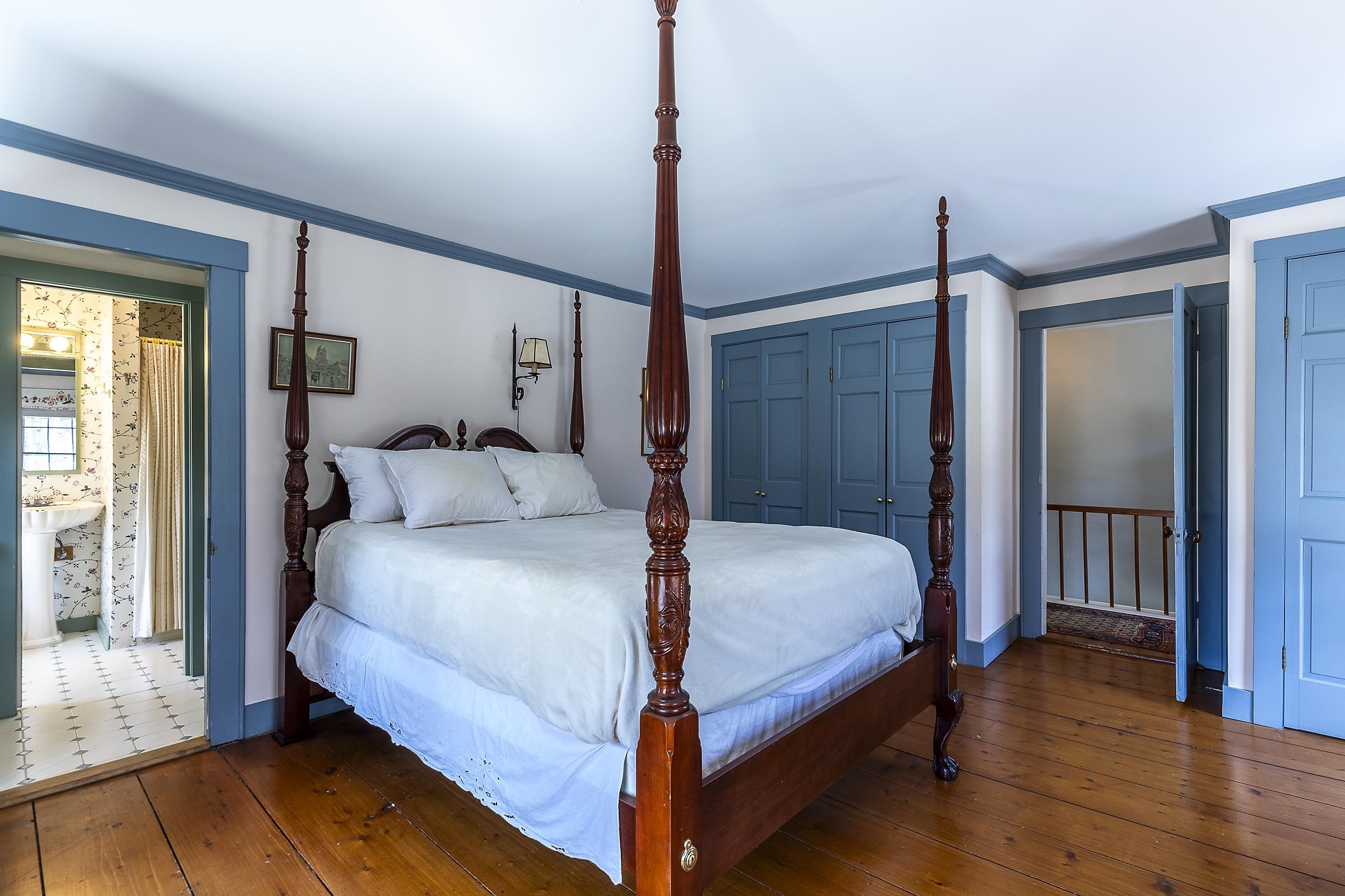 Step into a classic Vermont farmhouse from the 1830s, built by a successful mill owner and loved by its current stewards for over fifty years. Minutes from the center of charming Grafton and only thirty minutes from Okemo, this beautiful property offers wide, level lawns and sits on 45 acres of untouched woodland in the hills behind—never logged and fully unencumbered. Inside, the original features and modern updates make this home a pleasure. Enjoy the warmth of two fireplaces, admire the curved plaster walls, and relax in the spacious living room that connects to a cozy family room. Gather around the table in the dining room, or retreat to the downstairs bedroom and bath. Upstairs, three more bedrooms and a fun bunk room with five built-in beds make ideal accommodations for kids or guests. The welcoming eat-in kitchen leads to a lovely screened porch, a perfect spot for your morning coffee. There’s plenty of storage throughout the house, and the antique barn is as well suited for festive dinners as it is for a pony or two. Sit on the front porch and listen to the gentle sounds of the nearby Saxtons River. If you feel like exploring, take a short walk to the lively village center, where you can meet neighbors, grab a bite to eat at the Grafton Inn, or visit the library for your next read. This home is more than just a place to live—it's an entree into a warm and inviting community filled with history and natural beauty.
