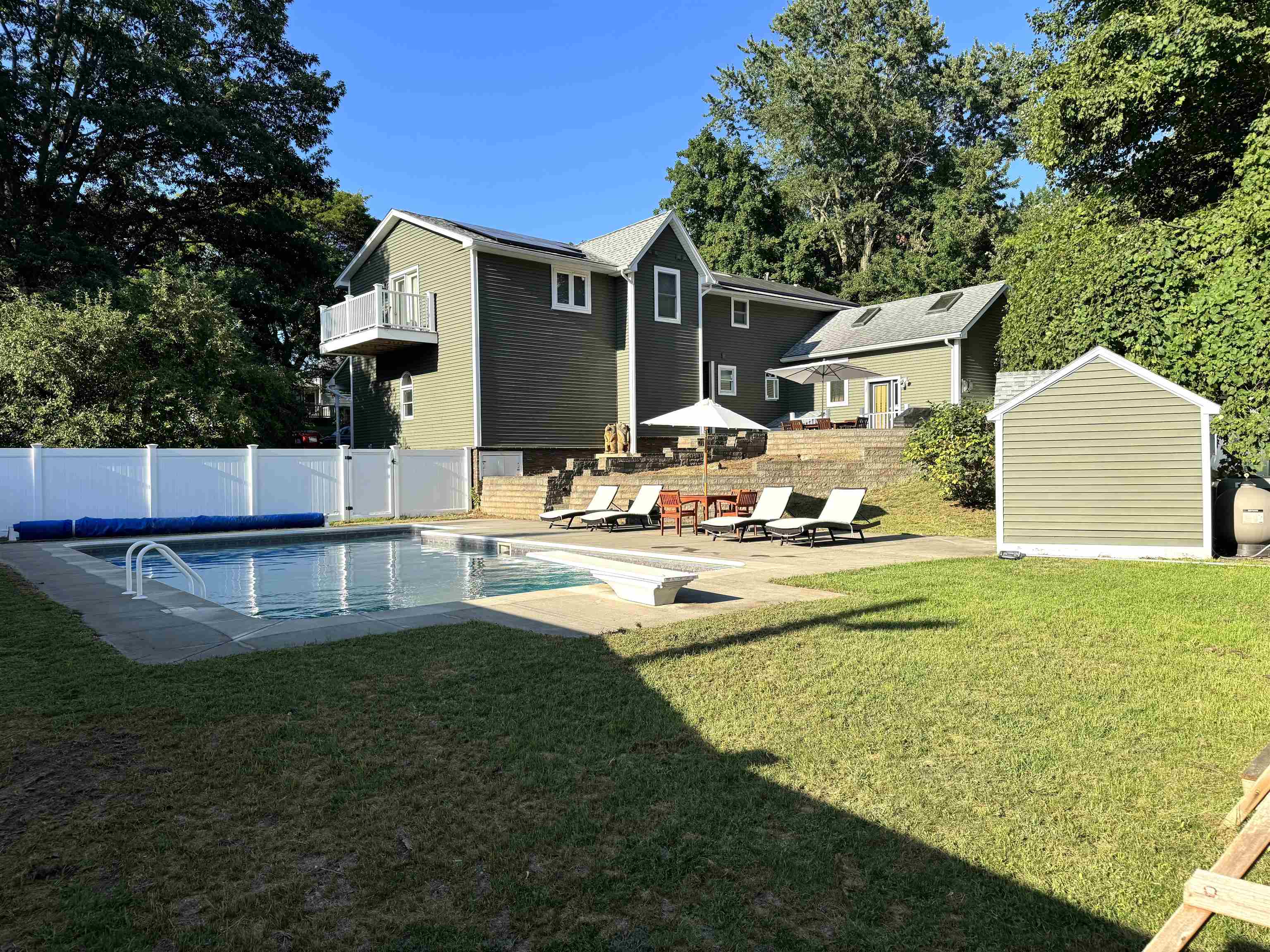 Welcome to your dream home in Colchester, VT! This 5-bedroom, 2.5-bath single-family gem offers over 3, 300 sq ft of beautifully finished living space, with maple and bamboo hardwood floors in almost every room. Enjoy scenic mountain views from the private balcony off the primary suite. The home features an inviting Adirondack room with a vaulted ceiling and cozy gas fireplace—perfect for relaxing year-round. Step outside to your private oasis with an in-ground heated pool (40x20 with 8 foot deep end and diving board) and a lighted hockey/soccer rink area, ideal for active living and entertaining. Pool area is fully privacy-fenced and has multiple spacious concrete decking areas: one at the pool and and a second elevated dining area closer to the house. All patio/pool furniture and equipment included. The finished basement has a theater room, a bonus storage room as well as ample unfinished storage space and a second laundry room, also equipped with washer/dryer. The home is efficiently heated with a new boiler installed in 2025 and has mini-split air conditioning in the primary suite and the large bonus room. Don’t miss this rare blend of comfort, recreation, and natural beauty in one of Colchester’s most desirable locations! Approx. 8 min drive to UVM Medical Center, 10 min to Church Street/Downtown, 8 min to Costco and I-89, 7 minutes to Blakely Road 3-12 grade school district area, Bayside Park and the new Colchester Rec Center. Listing agent is seller and owner of home.