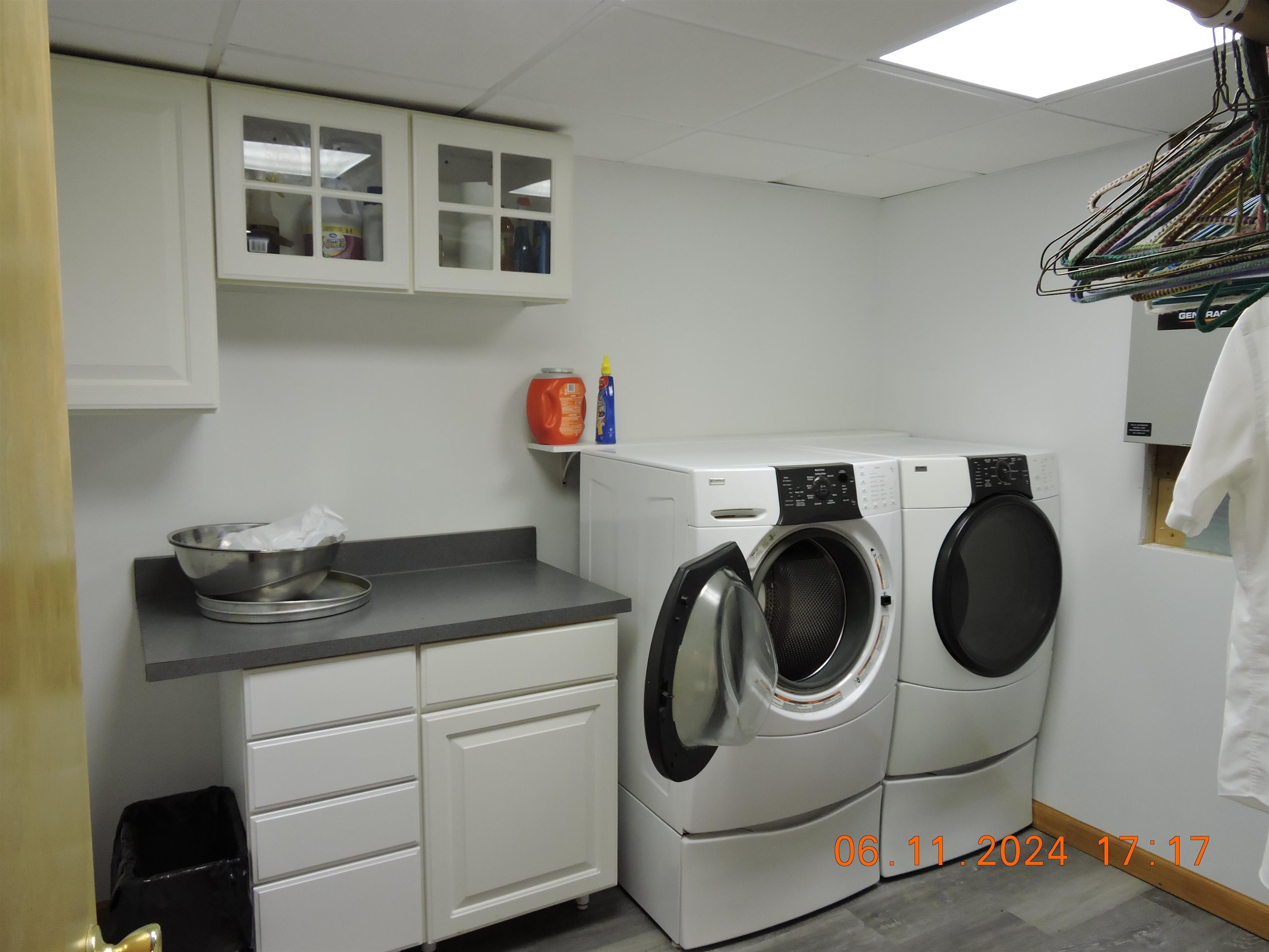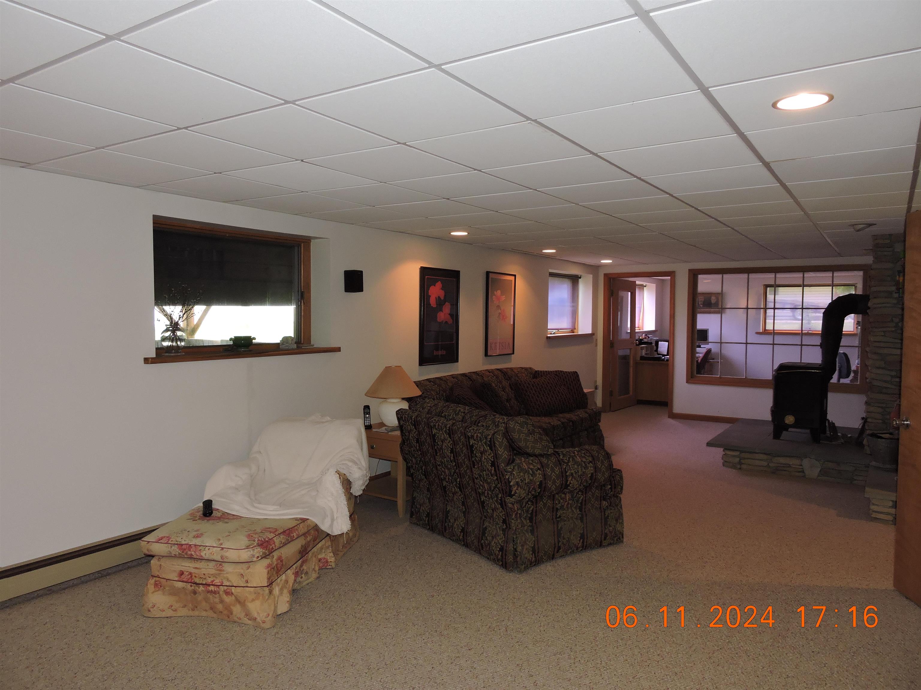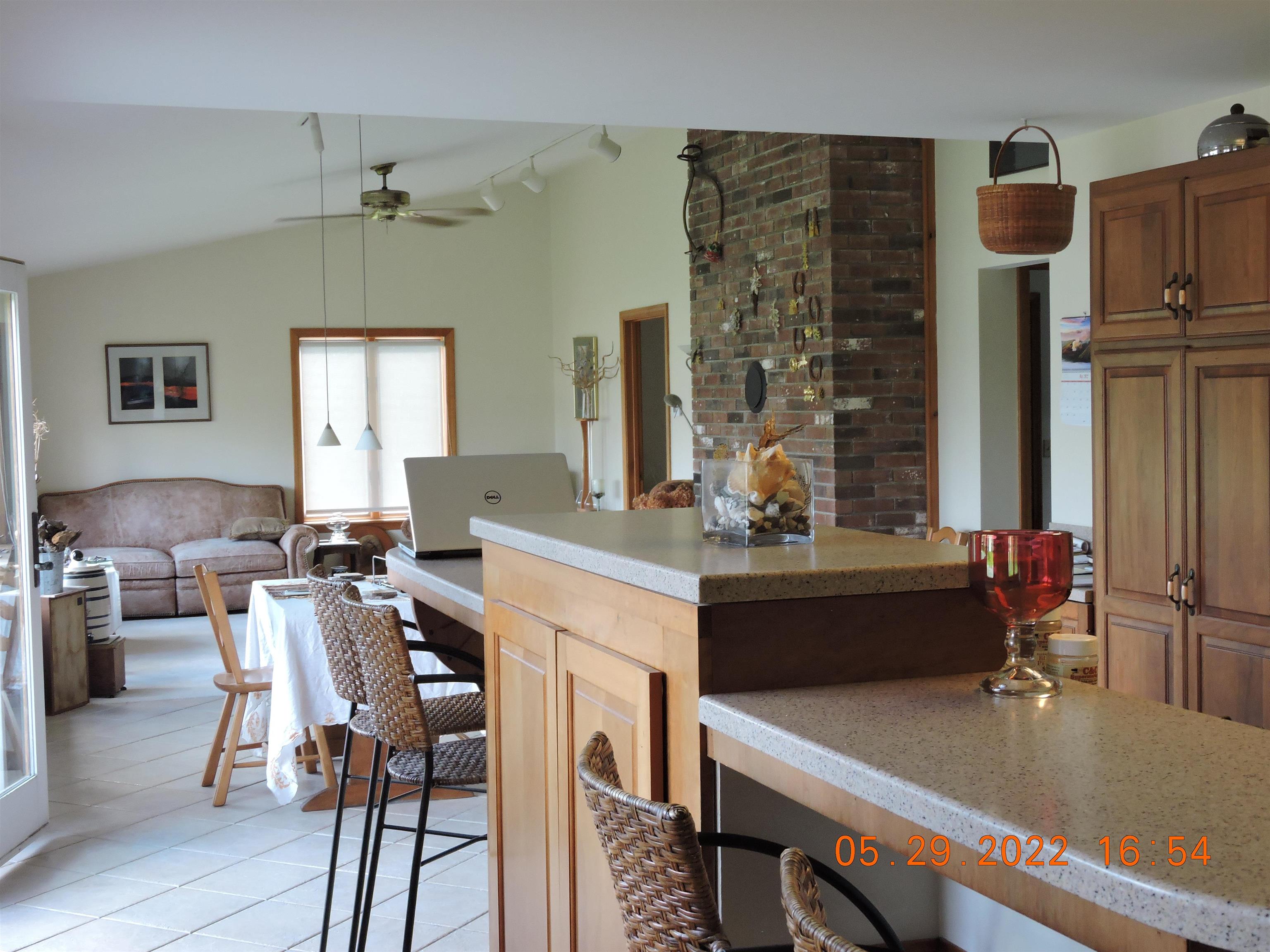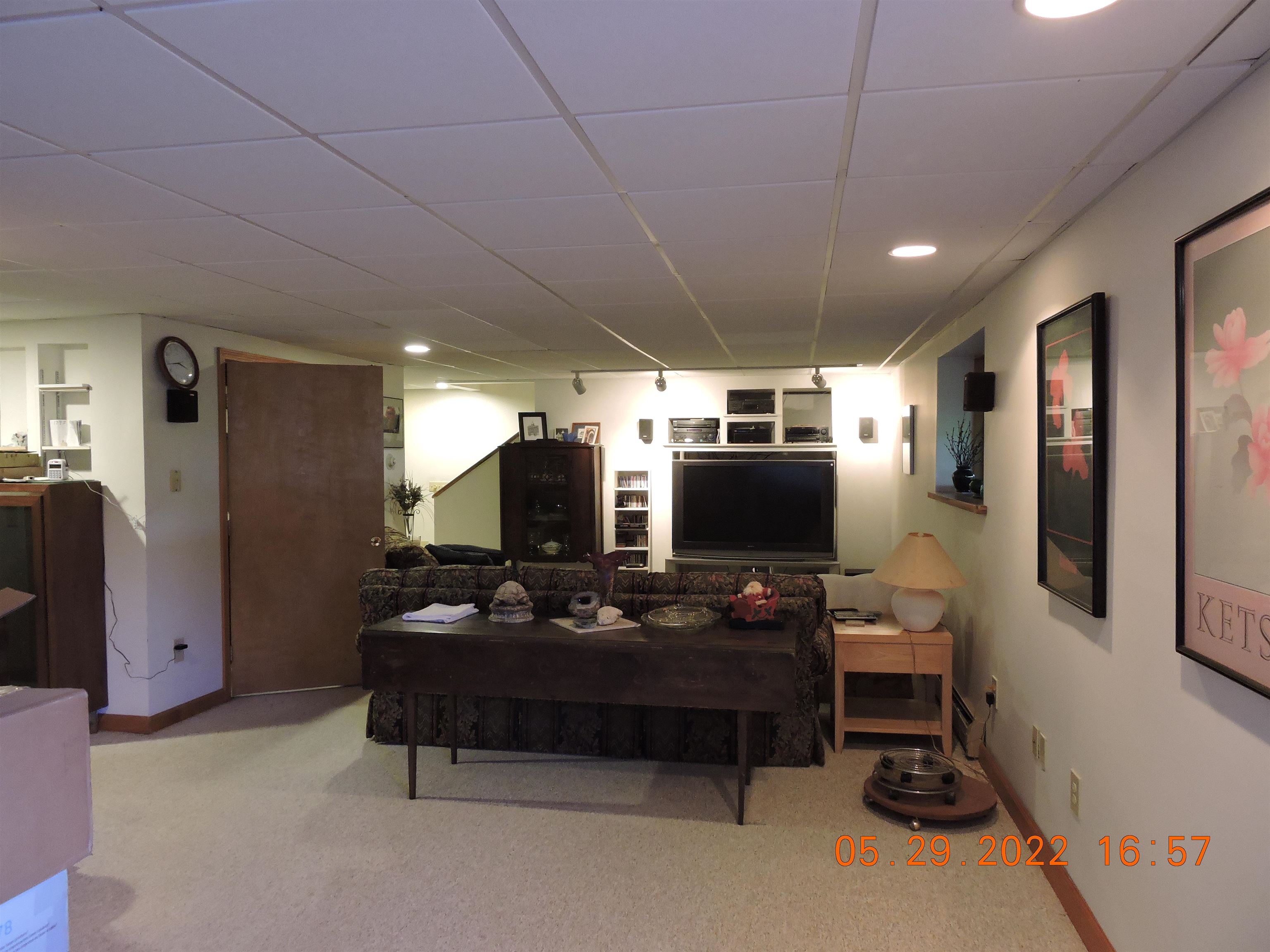 - Blinds, Cathedral Ceiling, Ceiling Fan, Dining Area, Kitchen Island, Kitchen/Dining, LED Lighting, T8 Fluorescent Lighting, Natural Light, Vaulted Ceiling, Window Treatment, Wood Stove Hook-up, Programmable Thermostat, Basement Laundry, Smart Thermostat