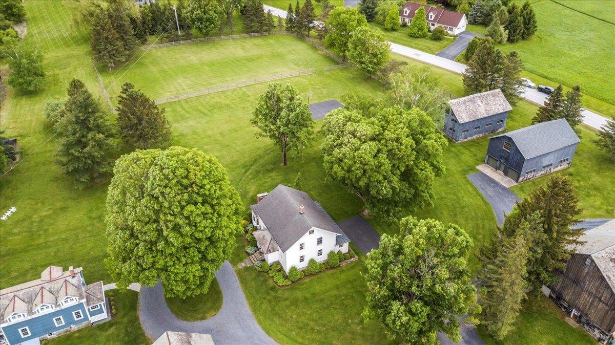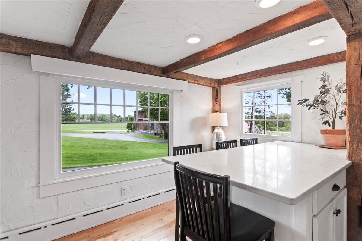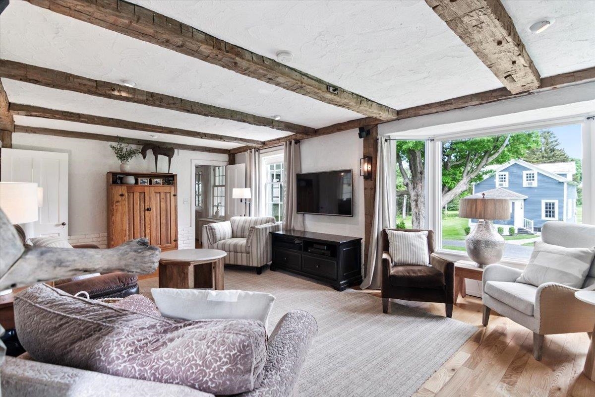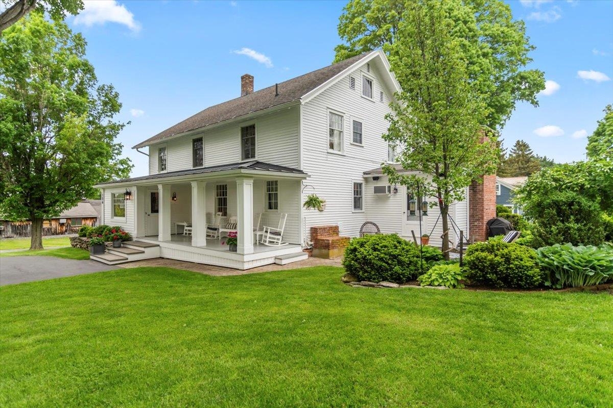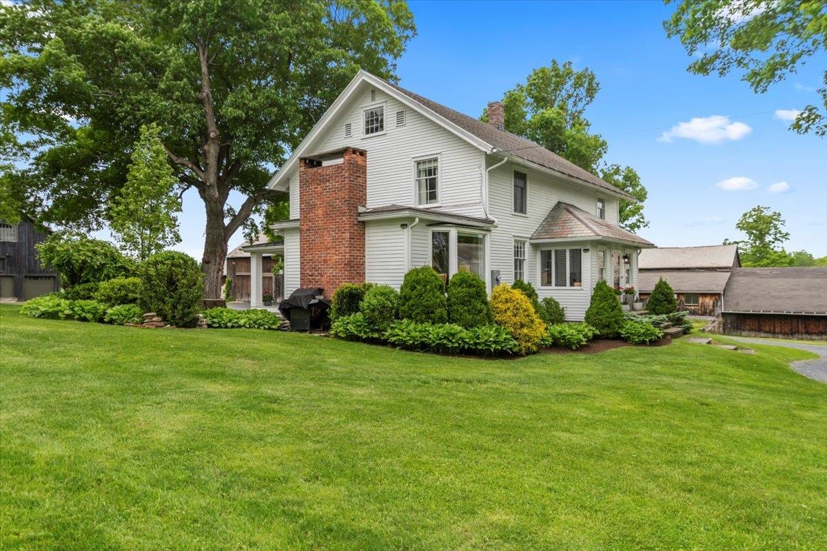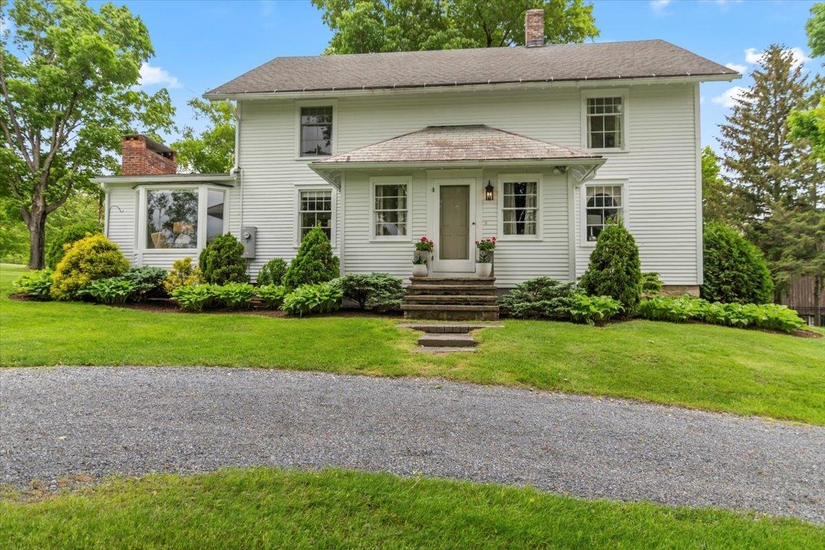 Welcome to this stunning 1850s home, perfectly sited on 2.72 acres with breathtaking mountain views. With 5 bedrooms, 2 full baths, and over three decades of loving ownership, this property offers the perfect blend of historic charm and modern updates in a peaceful, scenic setting. Inside, you'll find spacious, light-filled rooms enhanced by large windows and a calming palette of neutral colors throughout. The main level boasts beautiful hardwood floors, a formal living room, and an elegant dining room -ideal for entertaining or family gatherings. The updated kitchen is both functional and stylish, complemented by a large island. The cozy family room features a gas fireplace and a stunning bay window that frames the natural beauty outside, making it a perfect space to relax year-round. Step out onto the architect-designed covered porch and take in the mountain views-it’s a tranquil retreat like no other. Outbuildings include a former four-stall horse barn, now used as excellent storage, and a second barn that has been transformed into a four-car garage with additional storage above -perfect for hobbies, vehicles, or workshop space. This rare property offers historic charm, modern comfort, and unbeatable views-an exceptional opportunity for those seeking space, serenity, and timeless New England character.