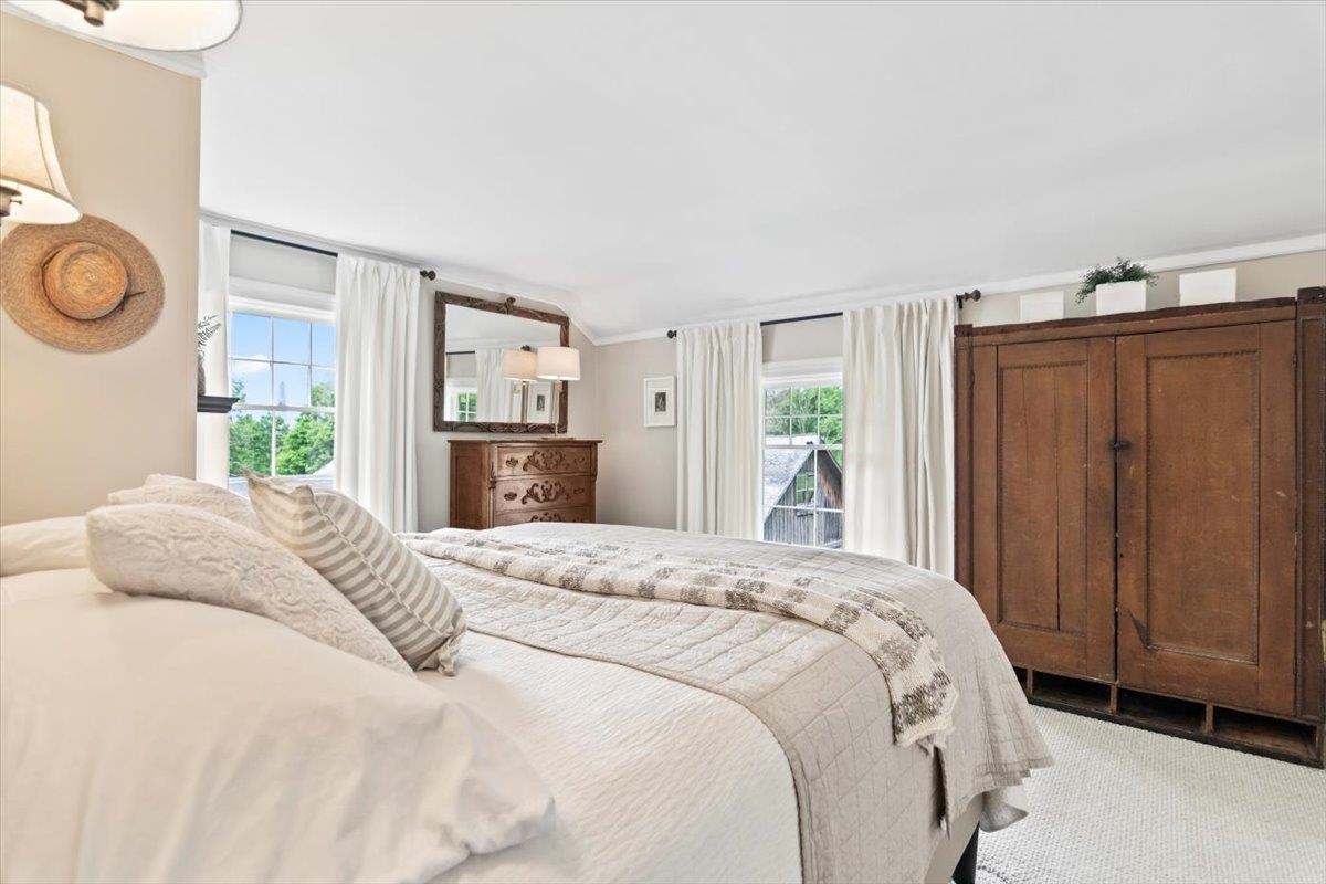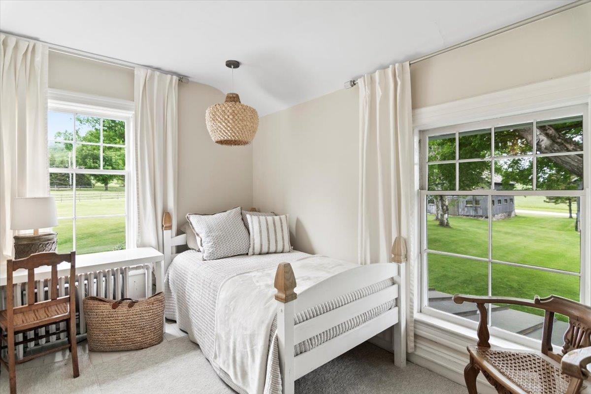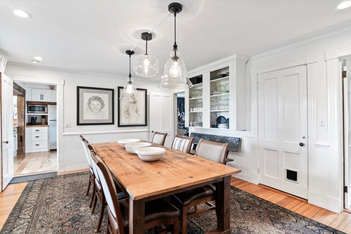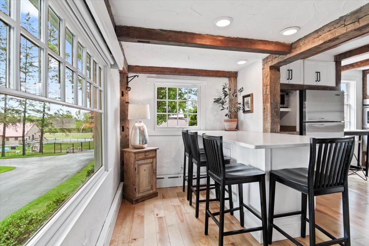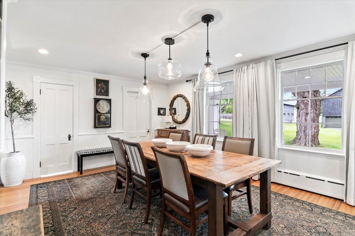 Welcome to this stunning 1850s home, perfectly sited on 2.72 acres with breathtaking mountain views. With 5 bedrooms, 2 full baths, and over three decades of loving ownership, this property offers the perfect blend of historic charm and modern updates in a peaceful, scenic setting. Inside, you'll find spacious, light-filled rooms enhanced by large windows and a calming palette of neutral colors throughout. The main level boasts beautiful hardwood floors, a formal living room, and an elegant dining room -ideal for entertaining or family gatherings. The updated kitchen is both functional and stylish, complemented by a large island. The cozy family room features a gas fireplace and a stunning bay window that frames the natural beauty outside, making it a perfect space to relax year-round. Step out onto the architect-designed covered porch and take in the mountain views-it’s a tranquil retreat like no other. Outbuildings include a former four-stall horse barn, now used as excellent storage, and a second barn that has been transformed into a four-car garage with additional storage above -perfect for hobbies, vehicles, or workshop space. This rare property offers historic charm, modern comfort, and unbeatable views-an exceptional opportunity for those seeking space, serenity, and timeless New England character.