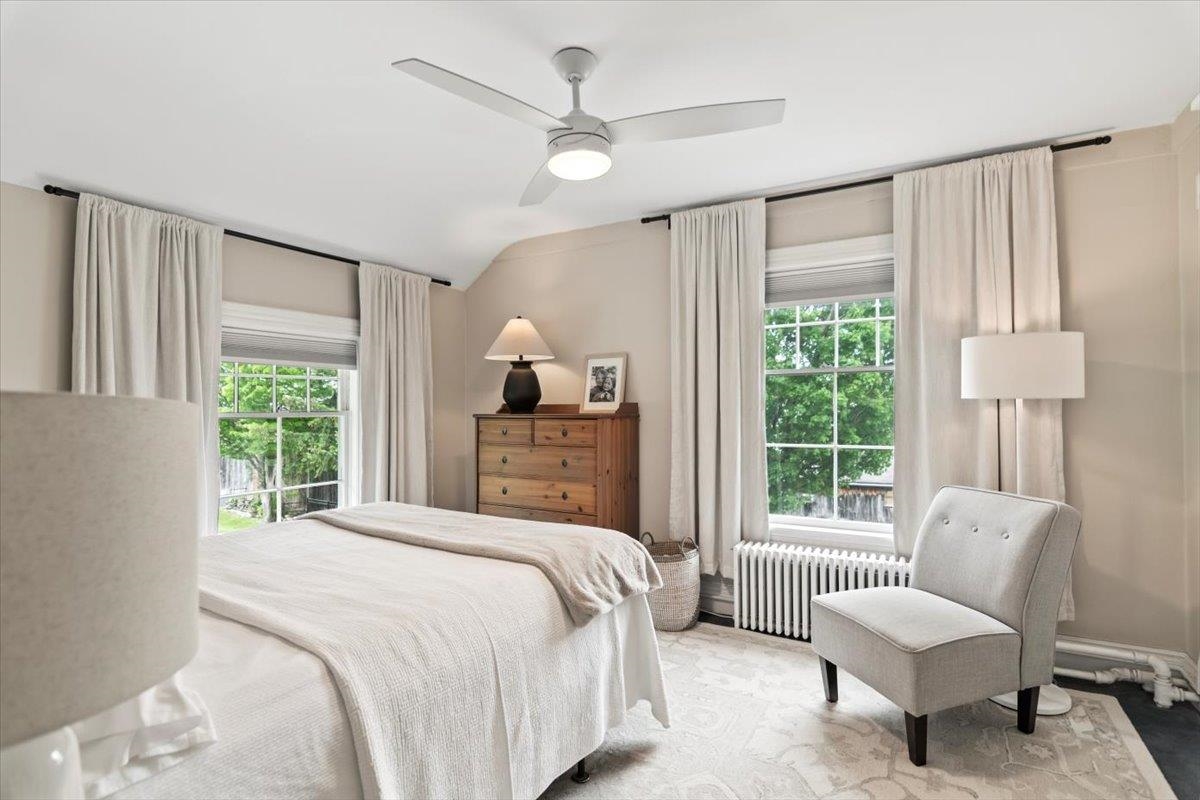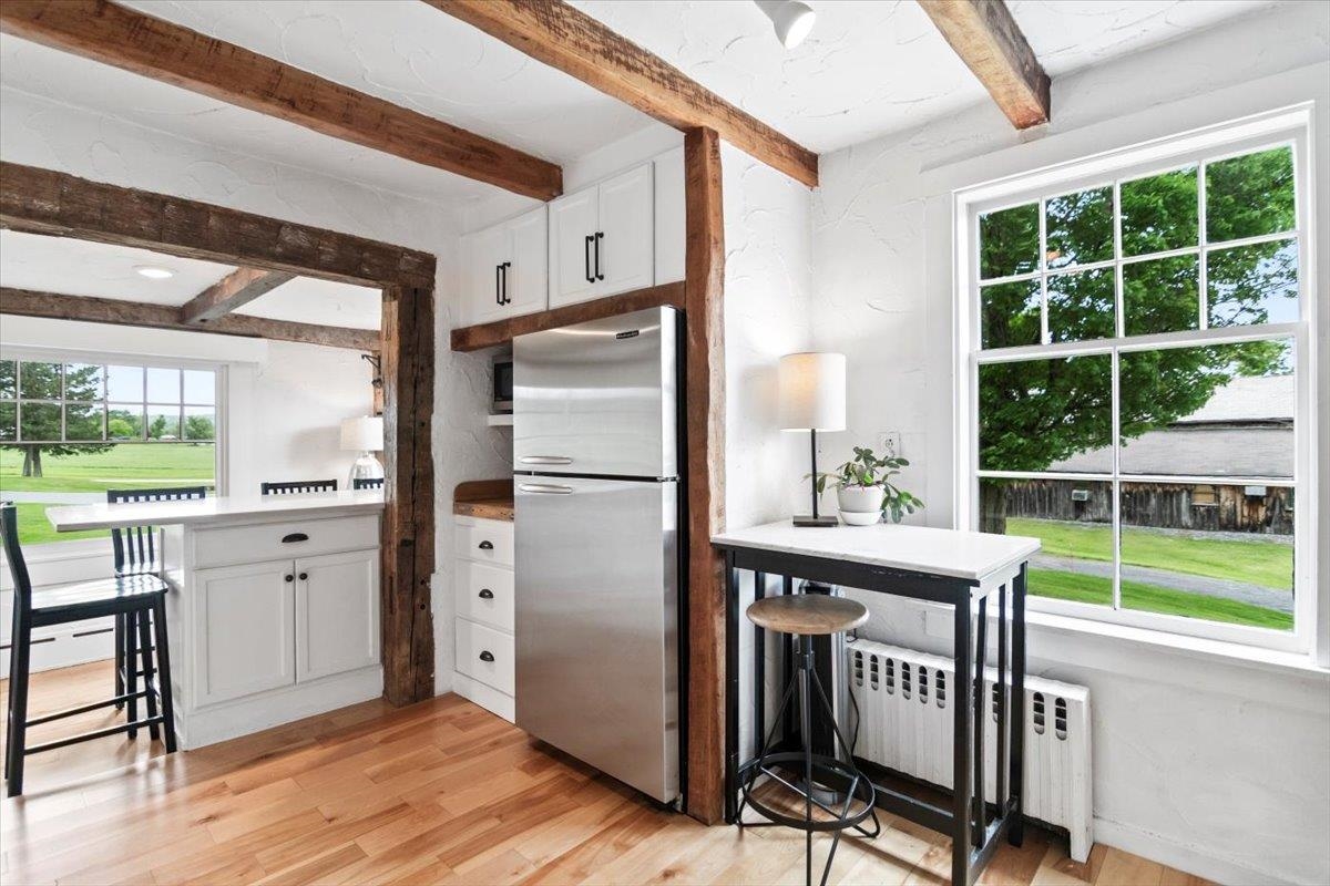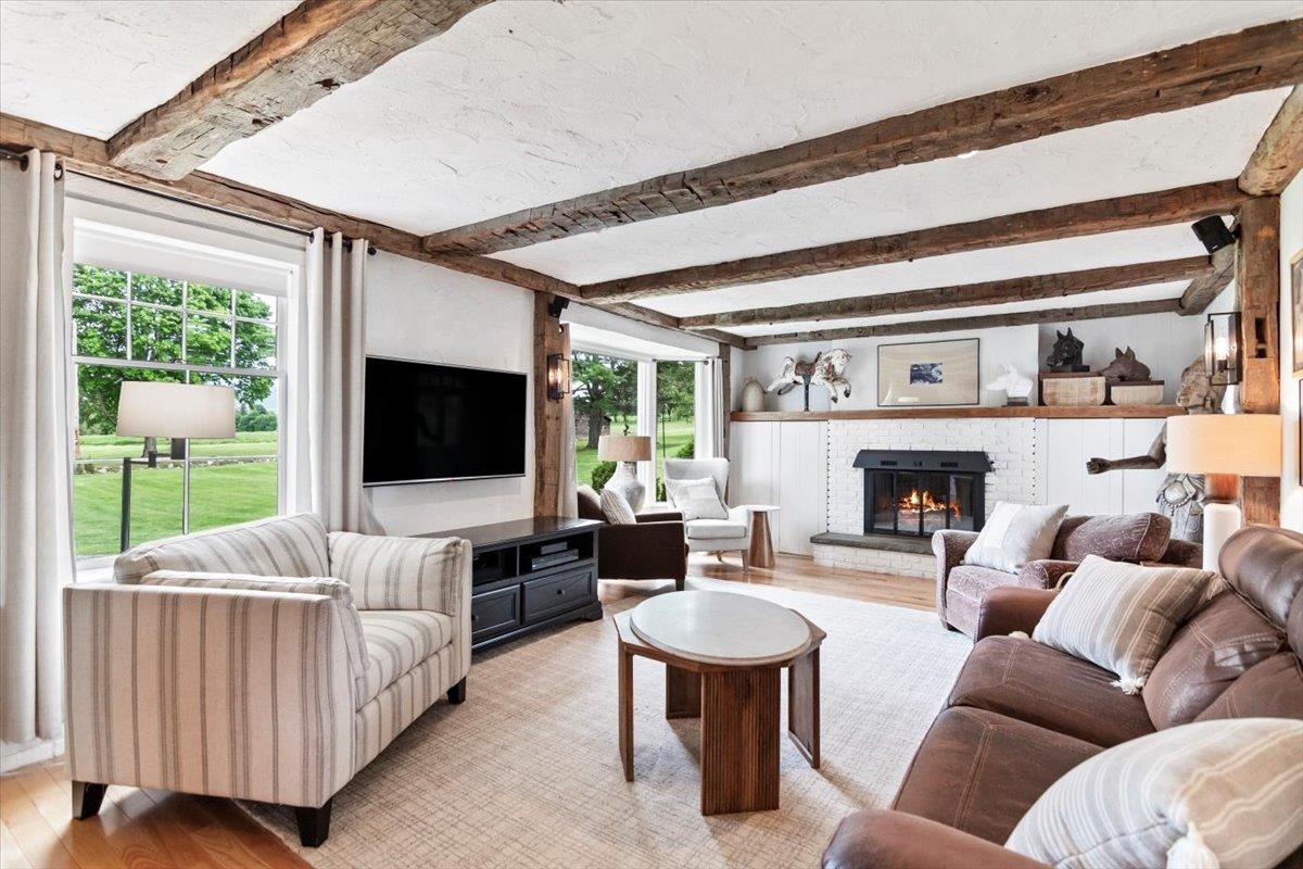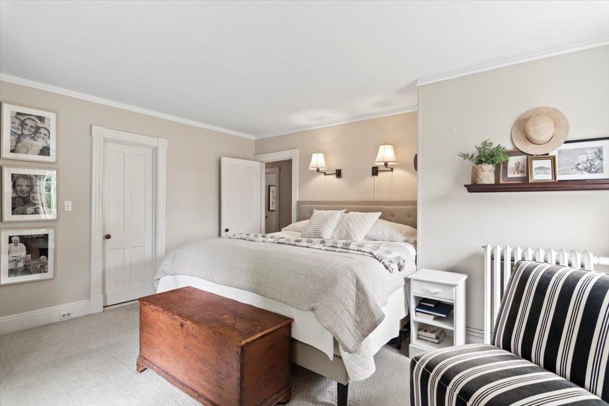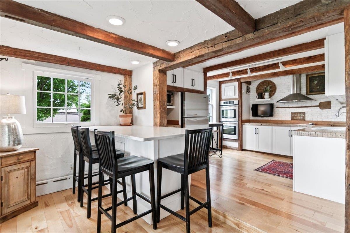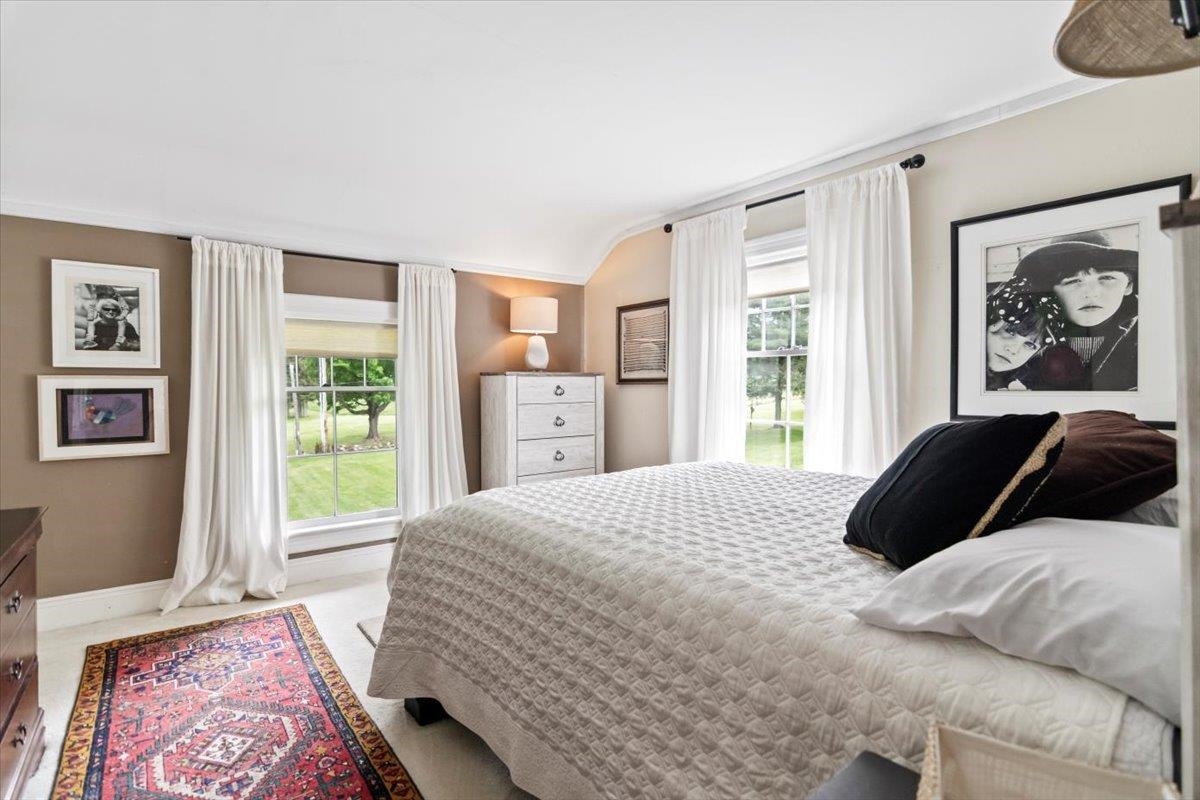 Welcome to this stunning 1850s home, perfectly sited on 2.72 acres with breathtaking mountain views. With 5 bedrooms, 2 full baths, and over three decades of loving ownership, this property offers the perfect blend of historic charm and modern updates in a peaceful, scenic setting. Inside, you'll find spacious, light-filled rooms enhanced by large windows and a calming palette of neutral colors throughout. The main level boasts beautiful hardwood floors, a formal living room, and an elegant dining room -ideal for entertaining or family gatherings. The updated kitchen is both functional and stylish, complemented by a large island. The cozy family room features a gas fireplace and a stunning bay window that frames the natural beauty outside, making it a perfect space to relax year-round. Step out onto the architect-designed covered porch and take in the mountain views-it’s a tranquil retreat like no other. Outbuildings include a former four-stall horse barn, now used as excellent storage, and a second barn that has been transformed into a four-car garage with additional storage above -perfect for hobbies, vehicles, or workshop space. This rare property offers historic charm, modern comfort, and unbeatable views-an exceptional opportunity for those seeking space, serenity, and timeless New England character.