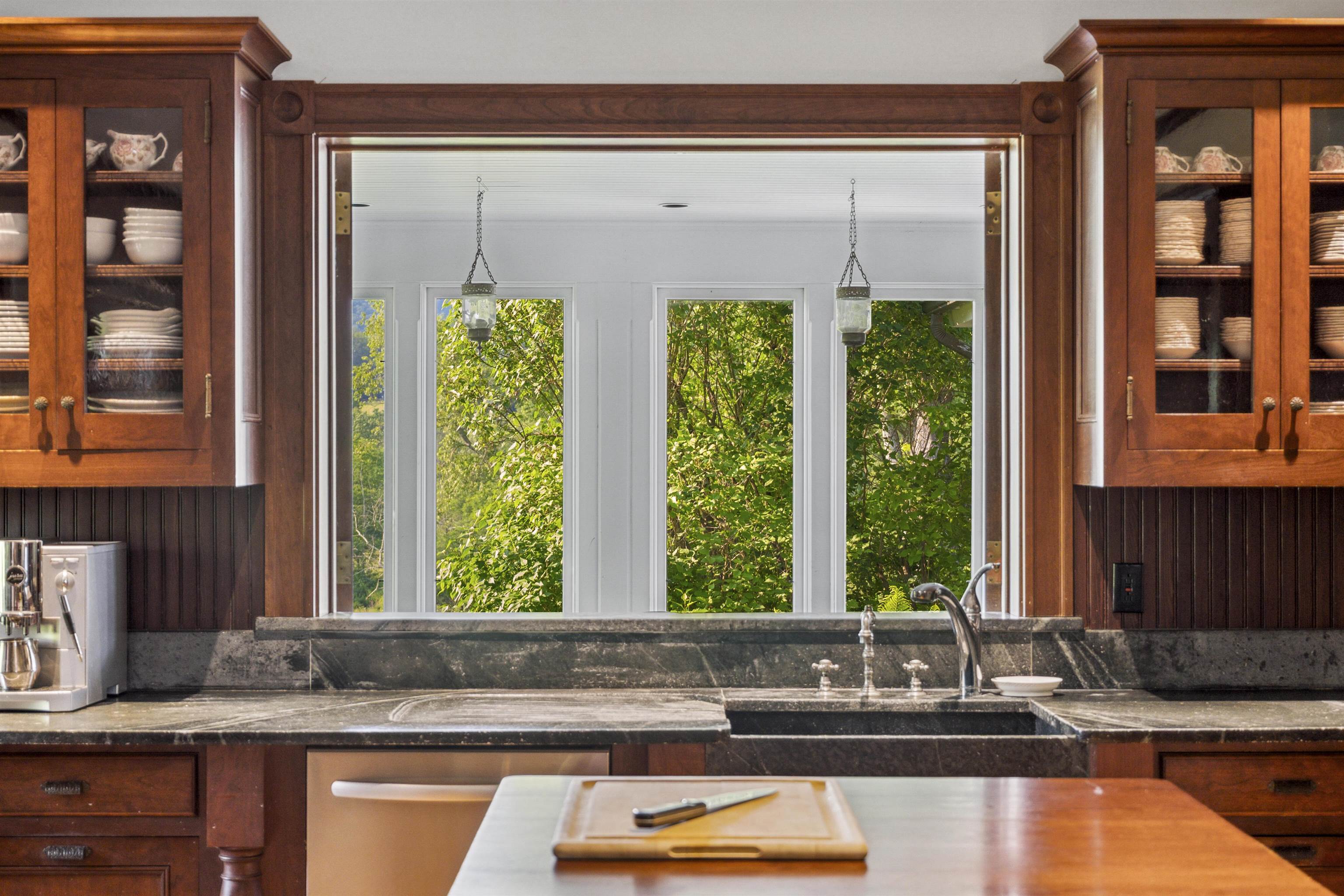 Two Pigs Farm is a hillside retreat in Southern Vermont's Taconic Range, where meadows are bound by ancient maple trees, stone walls and two clear brooks. The circa 1989 farmhouse and barns feel timeless—rooted, quietly graceful—designed for comfort, and connection. Inspired by childhood summers in Sandgate, the owner dreamed of a place where time stretches—mornings for berry picking, afternoons for reading, and late winter for tapping maples, reconnecting with the rhythms of nature. A wide porch gazes across to rounded hills. The screened porch, with its pass-through to the kitchen, is perfect for summer suppers. Under the dappled shade of trees, a walled stone terrace welcomes lingering meals and conversations that last into starlight. Perennial gardens bloom from early spring to autumn’s last blaze. The kitchen is a true chef’s haven—spacious and inviting, with an AGA range, Viking appliances, marble and soapstone counters, a walk-in pantry, and a tucked-away office. Wood-burning fireplaces anchor the library and living room. The primary suite has its own hearth; four more bedrooms offer room for guests. With a 7-stall horse barn, one bedroom studio/art space over the car barn with a commercial kitchen below, infinity pool, sauna house, solar array, greenhouse, trout pond, fruit trees and berries, this is more than a farm—it’s a place to re-create. 30 minutes from Manchester/Dorset, 3 hours from New York and Boston. Showings begin June 27