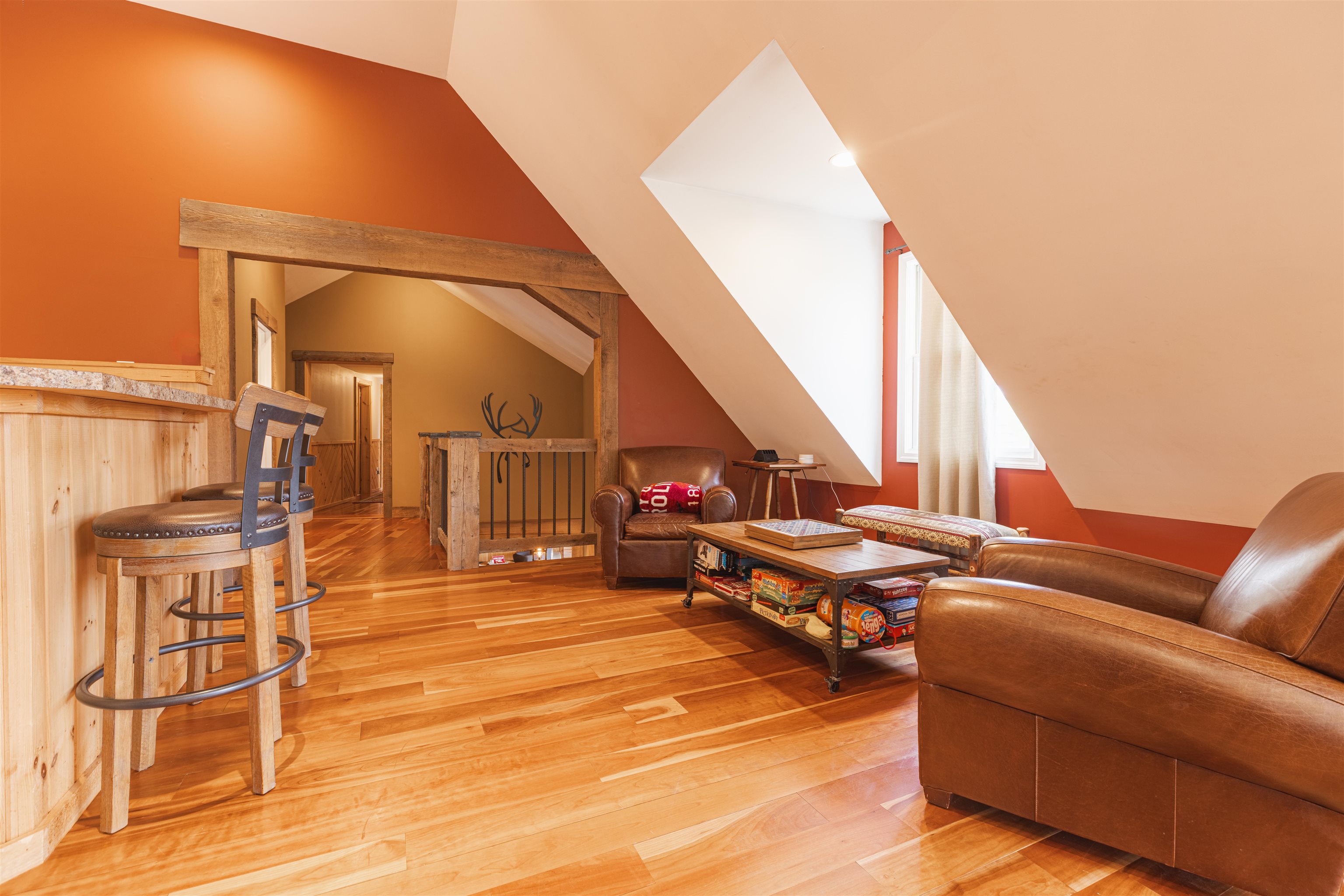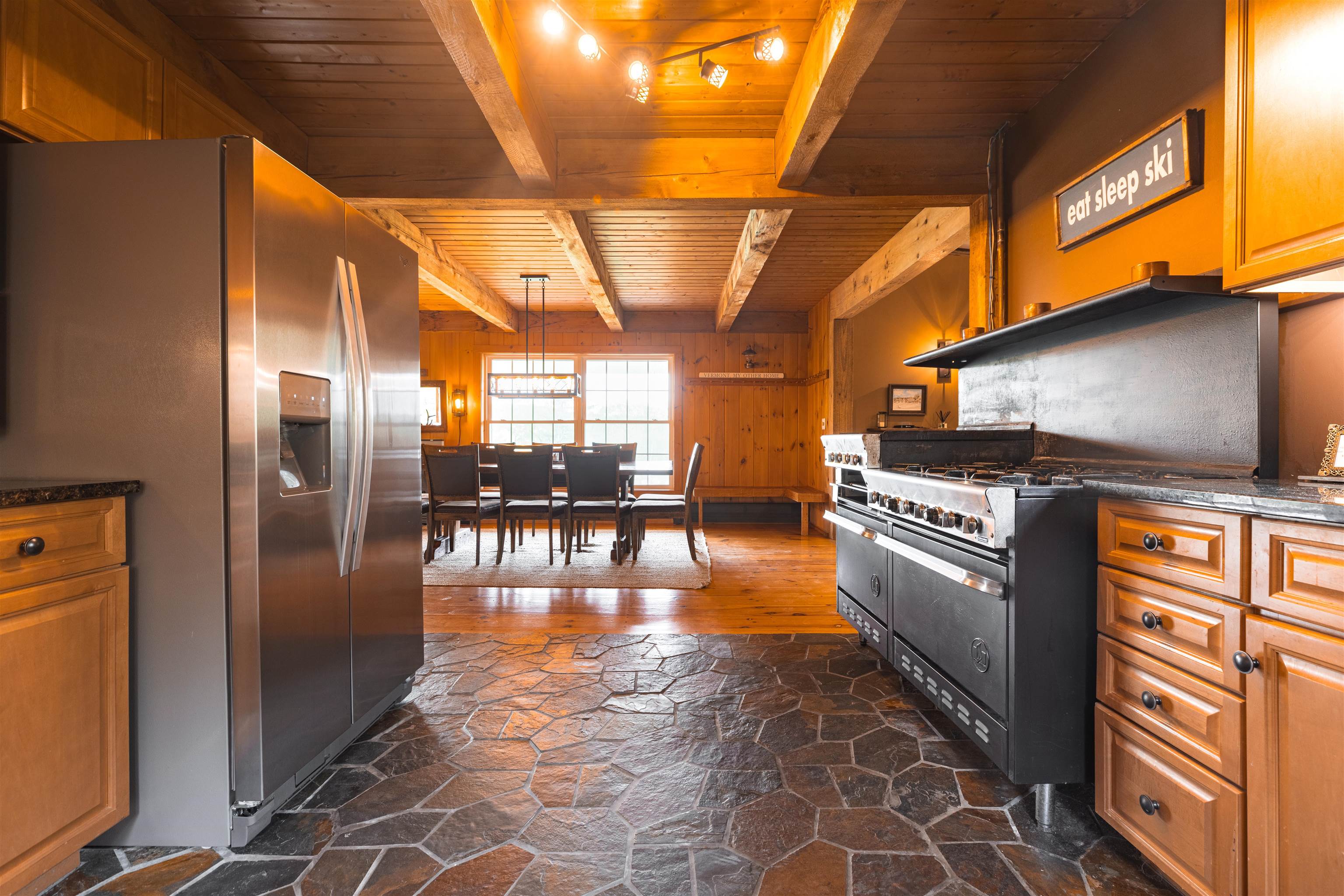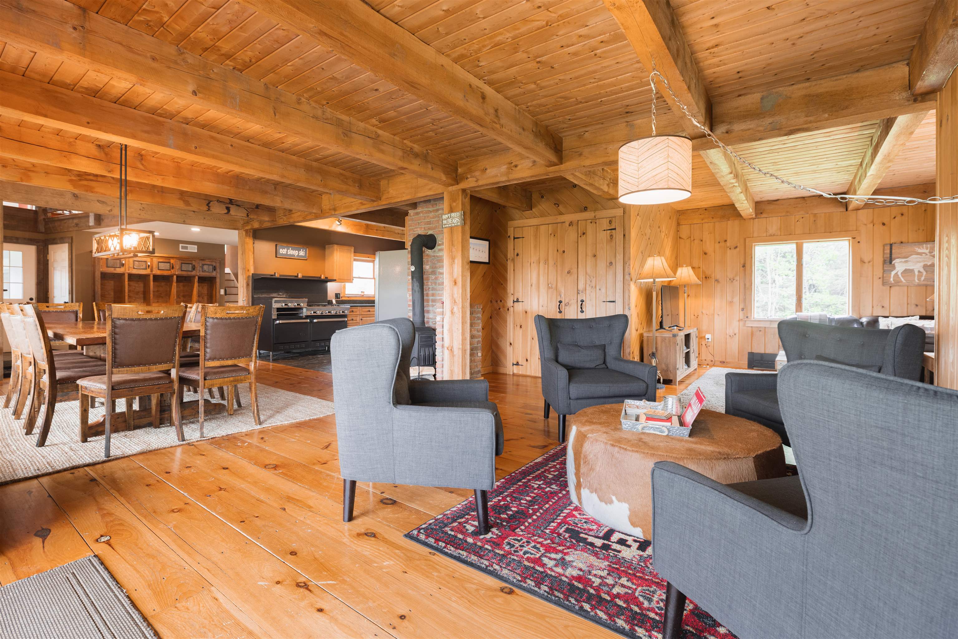 Just a half mile from The Hermitage Club, 3.5 miles to Mount Snow, and only a mile from Haystack Golf Club, this 4 bedroom, 3 bathroom home on 10.1 acres offers the perfect blend of rustic charm and modern comfort. Direct access to the VAST snowmobile trails and mountain views makes this an outdoor enthusiast’s dream.Step inside to find warm wood finishes, exposed beams, and rich natural textures throughout. The inviting mudroom with custom-built lockers and storage creates the ideal entry point for all your gear after a day on the trails or the slopes. The living area is the heart of the home, featuring warm wood floors, a cozy wood stove set against a brick hearth, and a large dining area perfect for gatherings. The kitchen offers ample space for cooking and entertaining, with stainless steel appliances, a gas range, and a rustic aesthetic that complements the natural surroundings. The primary bedroom with vaulted ceiling and a large arched window fills the the room with light frames the view. The additional bedrooms provide plenty of space for family and guests, including a fun bunkroom with direct access to a deck overlooking the property. The recreation room is perfect for game nights, with a bar area, gaming tables, and a stone fireplace ideal for après-ski relaxation. From the handcrafted woodwork to the mountain lodge feel, every detail of this home invites you to settle in and embrace the Vermont lifestyle.