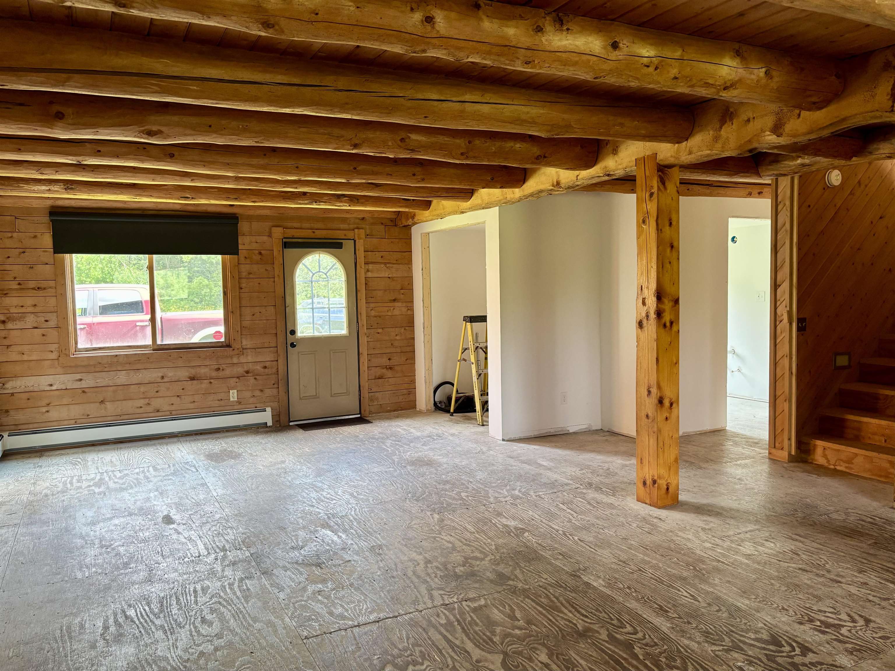 Tucked away in the heart of Vermont's Northeast Kingdom, this exceptional log home offers a rare blend of character, privacy, and flexibility across 56+ acres. Designed for multi-generational living or income potential, this spacious property offers 3 bedrooms and 3 bathrooms including a private in-law suite and a full walkout basement with a third kitchen. The main level welcomes you with warm wood tones, exposed beams, and an open concept layout. The kitchen and dining room flow effortlessly into the living room with cathedral ceilings and the view of Vermont mountains and terrain. The separate in law suite on the main level offers independence and comfort with its own living space and bathroom. Outside the land is a true Vermont treasure. The pastures are ideal for farming and animals, and there's room to roam, ride or explore. Included in the 56+ acres is a state permitted 5.66 acre building lot offering future development potential or an incredible compound opportunity.