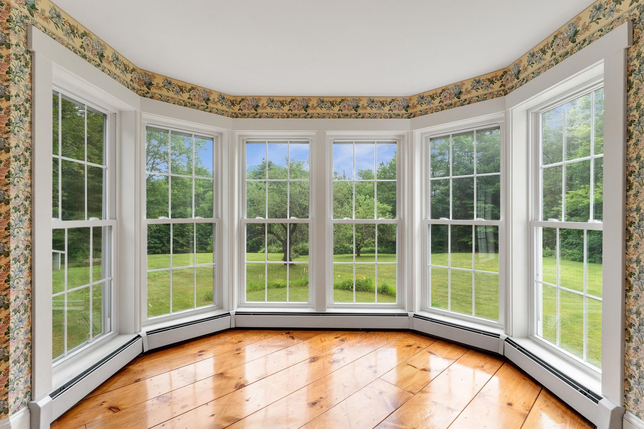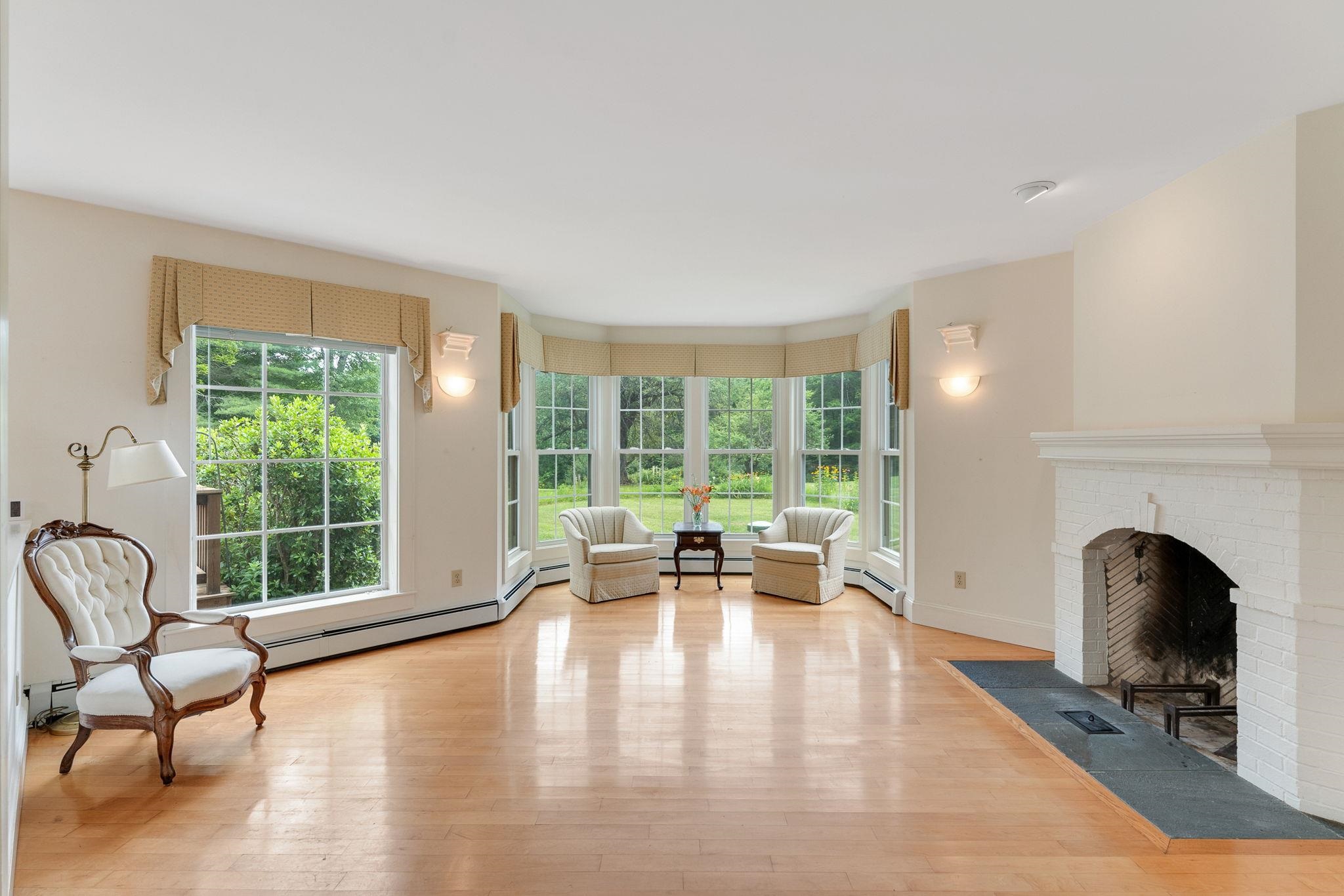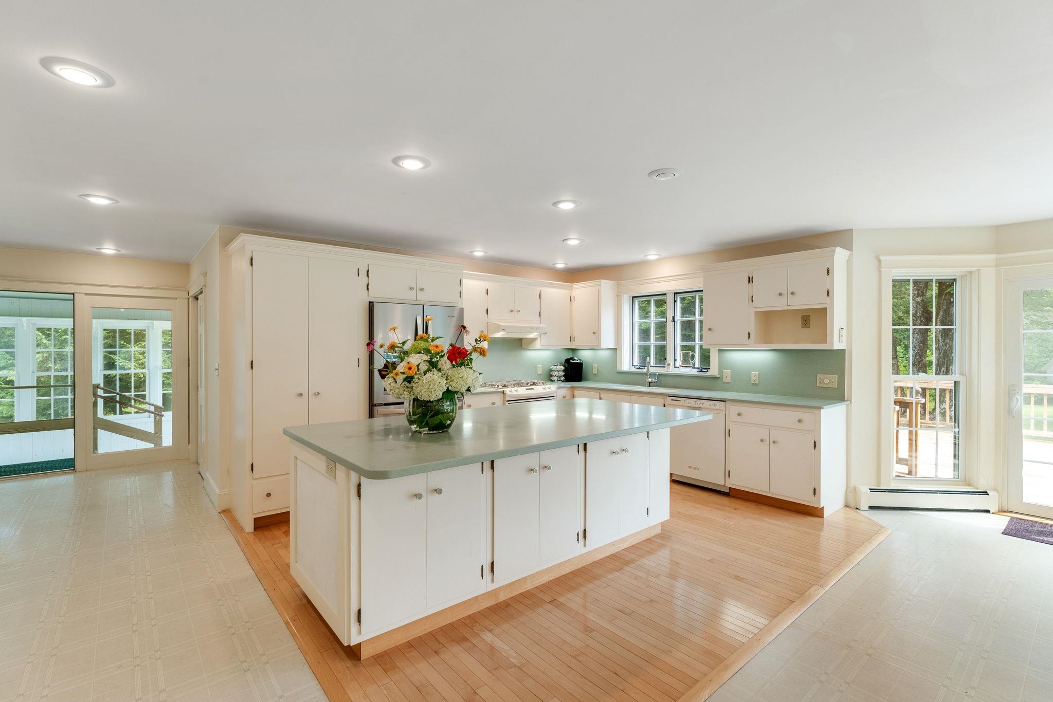This hidden gem is one of the best kept secrets in West Windsor. Sited at the end of a private road with rolling green lawns, and a tree top view of Mount Ascutney, this lovingly stewarded home was impeccably constructed and orchestrated with flowing wide open, bright spaces. The perfect home for full or part time living, and entertaining. The living room is anchored by a painted brick Rumford fireplace, and a bank of windows overlooking gardens and lawns. The open concept dining/kitchen area with a woodstove steps out to a spacious deck. There is an attached two car garage entering a mudroom with a sunroom looking across perennial beds to the swimming pond and cabana. There is a study off the foyer which could easily transition into a first floor accommodation for guests. Primary ensuite and three more bedrooms on the second floor, along with a spacious studio/playroom over the garage. The partially finished basement is perfect for a billiards room, play room or bunkroom. The possibilities are endless with a spacious free standing, heated studio building ready to accommodate your hobby, or a great bunk house. There is a separate barn/garden shed for tools and equipment. Easy access to hiking, cycling trails, skiing and all recreation.
