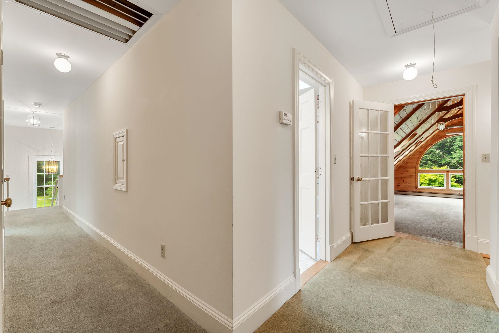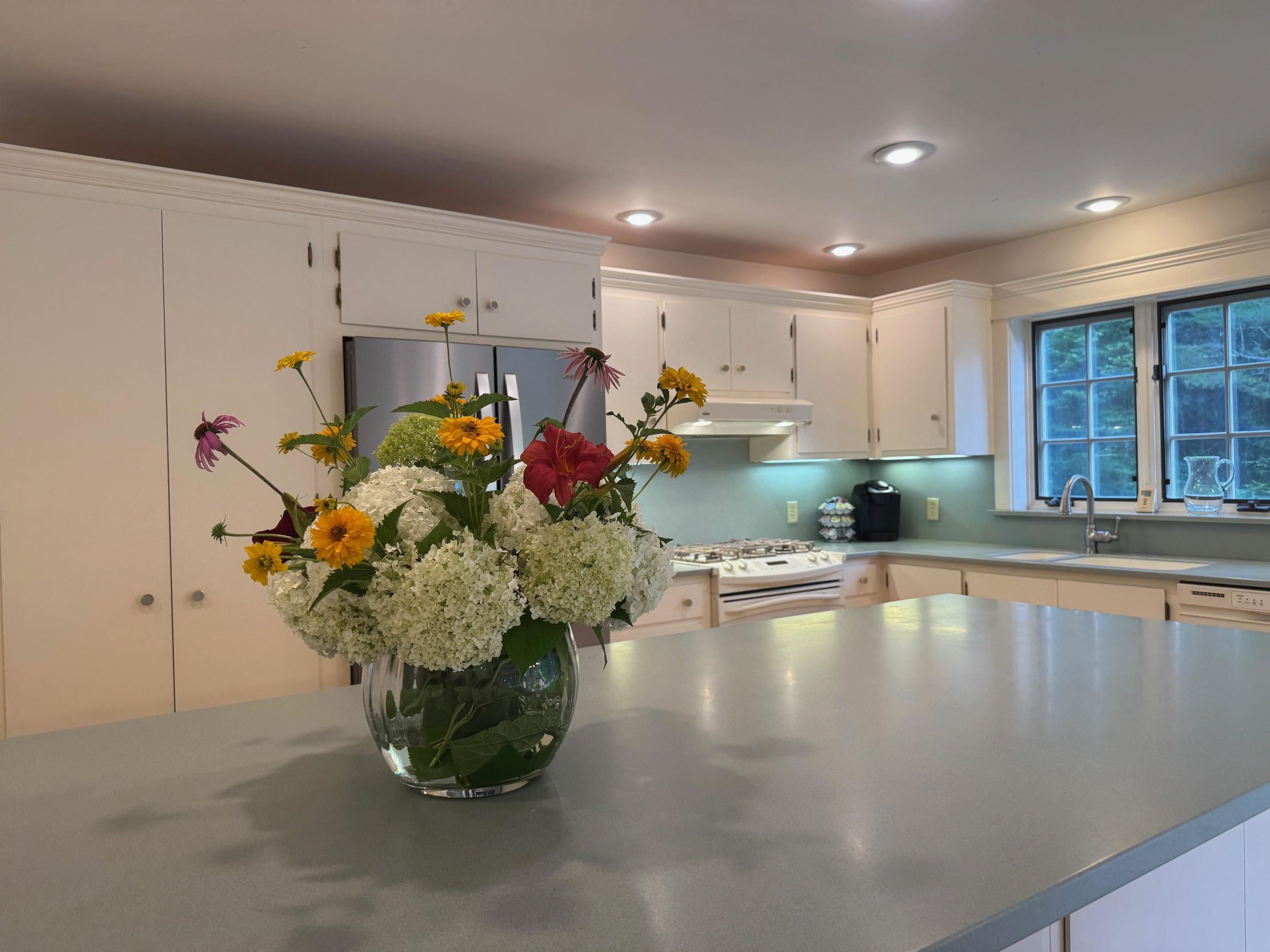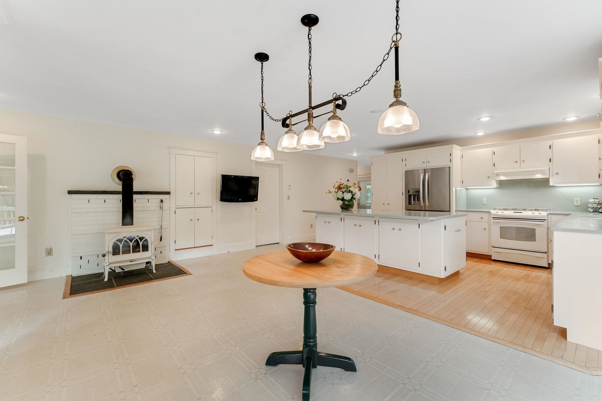 This hidden gem is one of the best kept secrets in West Windsor. Sited at the end of a private road with rolling green lawns, and a tree top view of Mount Ascutney, this lovingly stewarded home was impeccably constructed and orchestrated with flowing wide open, bright spaces. The perfect home for full or part time living, and entertaining. The living room is anchored by a painted brick Rumford fireplace, and a bank of windows overlooking gardens and lawns. The open concept dining/kitchen area with a woodstove steps out to a spacious deck. There is an attached two car garage entering a mudroom with a sunroom looking across perennial beds to the swimming pond and cabana. There is a study off the foyer which could easily transition into a first floor accommodation for guests. Primary ensuite and three more bedrooms on the second floor, along with a spacious studio/playroom over the garage. The partially finished basement is perfect for a billiards room, play room or bunkroom. The possibilities are endless with a spacious free standing, heated studio building ready to accommodate your hobby, or a great bunk house. There is a separate barn/garden shed for tools and equipment. Easy access to hiking, cycling trails, skiing and all recreation.