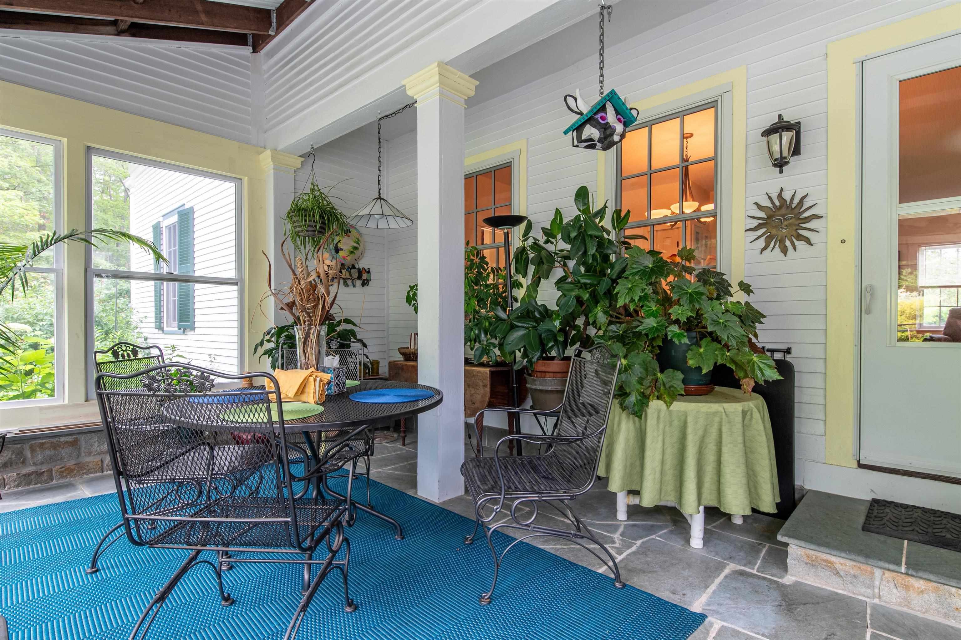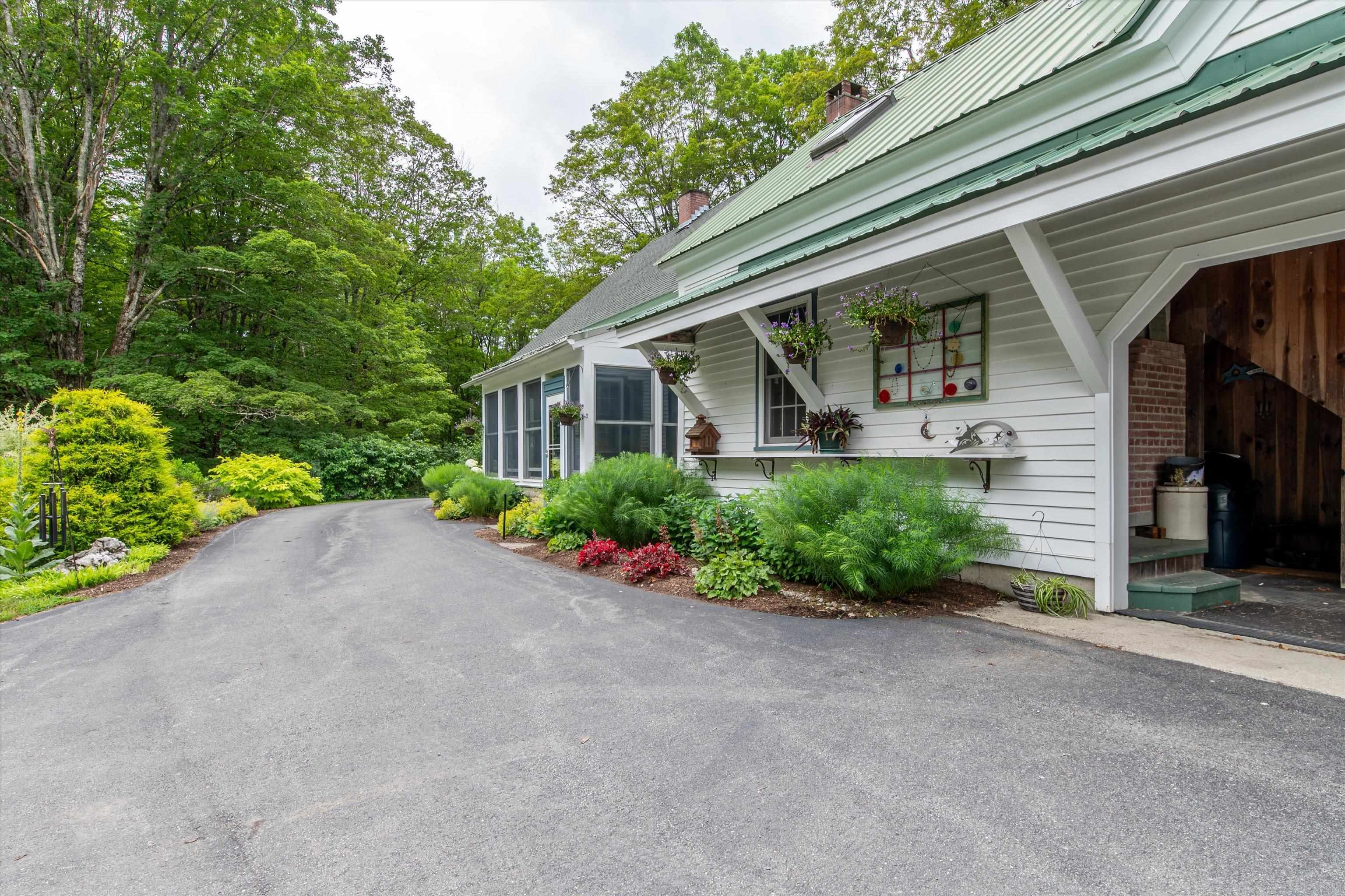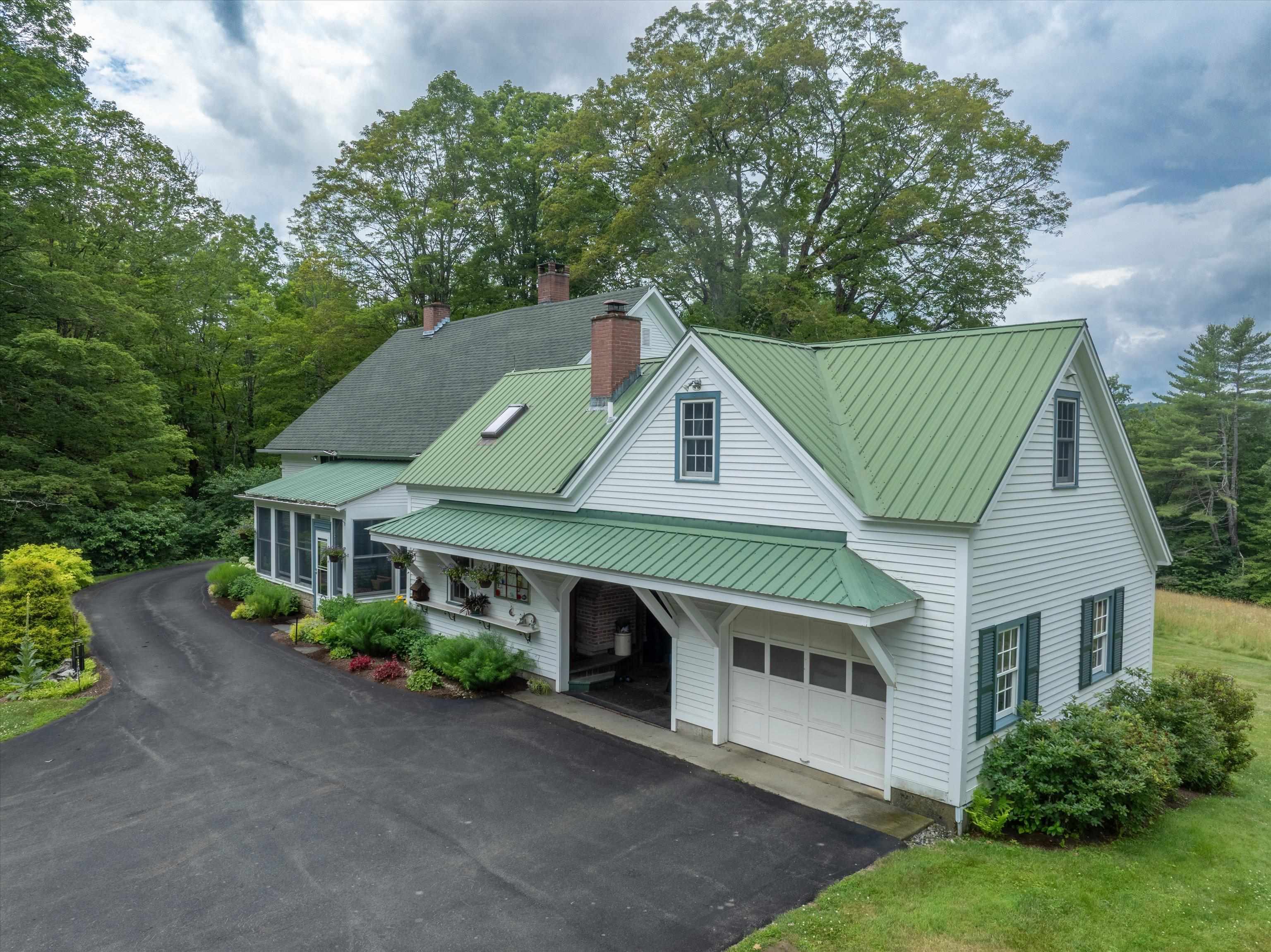 This charming vintage cape set on 6.6 acres is the perfect blend of classic character and modern updates. The home offers 5 bedrooms, 4 baths and spacious common rooms including a lovely three season room just perfect for morning coffee or unwinding at the end of the day. There is a separate entrance in the garage leading to the second floor which offers an opportunity for a private space for extended family, guests or potential income rental. The first floor office can be turned into a bedroom allowing for one level living. Two pantries, a storage room and ample closet space offer lots of storage space inside the house. Updated kitchen, baths, newer windows, newer roofing, and a Tesla wall are just a few of the improvements made to this property. Outside there is a detached 2 car garage with additional storage space and an attached deck. There are stately maples as you approach the house which is graced with lovely perennial beds. A stunning stone patio with a screened gazebo is perfect for entertaining or just relaxing taking in the local view over the open field. The land is a combination of open land, manicured flower beds and woods offering an idyllic setting in every season. Not enough can be said in this brief description. A visit is needed to experience the privacy, serenity and beauty this property offers. Located 1/2 hour to Okemo ski area and 6-7 minutes to I-91.