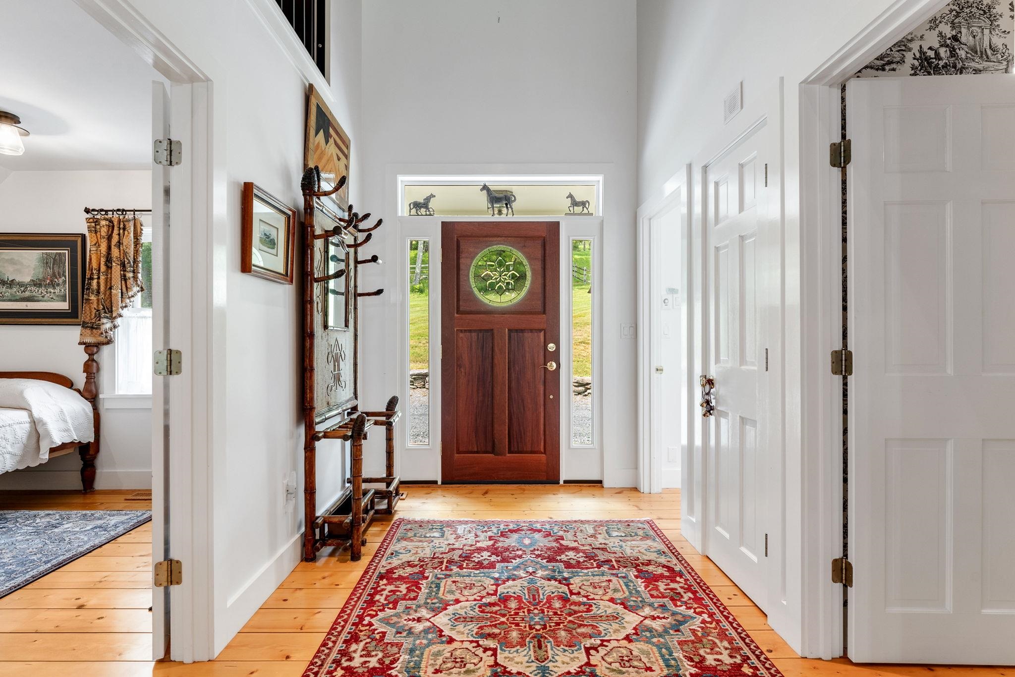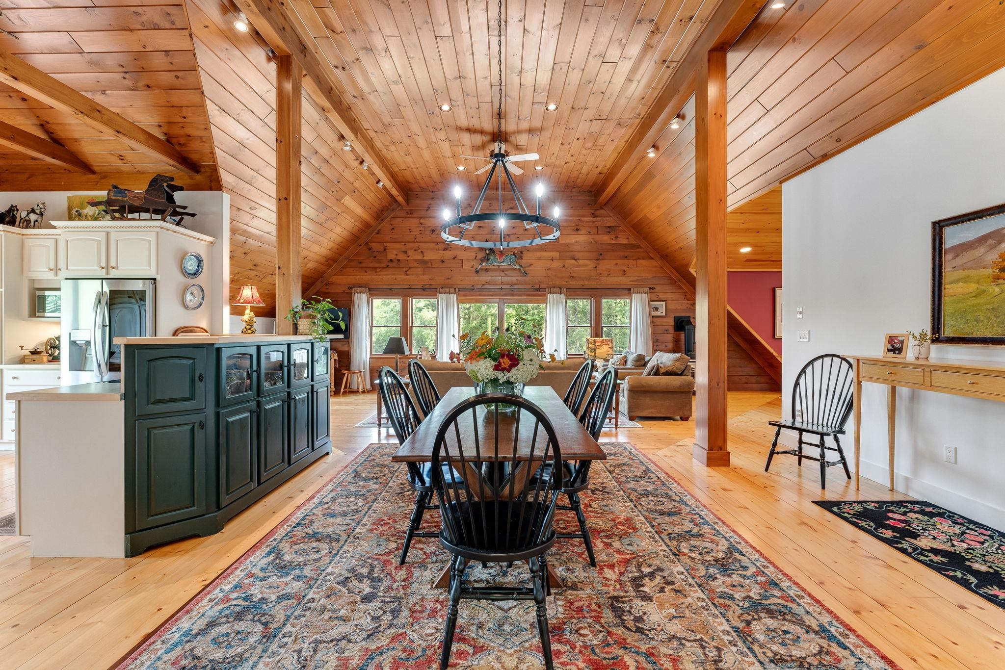 Situated amongst the finest equine estates in the region, Tuacknback Farm is an iconic landmark, best known as the most popular hold along the famed Vermont 100 ride. Located on a scenic country road, accessing the most extensive trail systems in New England, the entire property was impeccably orchestrated for ease with direct walk-in access to the connected stable and hay loft, and a wide circular entry. The grounds are gorgeous with long, verdant lawns, fenced pastures and pens, a maple tree lined entry, ancient stone walls, and copious established perennial beds offering a lovely palette throughout the seasons. The home was originally built in 1988, benefitting from a top-quality expansion and renovation in 2018. The interior spaces are generous, bright and inviting with sweeping wooden cathedral ceilings and gleaming pine floors running throughout the main level with a cupola providing additional light and dramatic interest. The kitchen is well appointed with plenty of cabinet and counter space. A propane stove warms the living and dining area. Open-concept common spaces connect to a balcony and two exterior decks overlooking the pastures and lawns. A spacious and comfortable primary bedroom features custom maple cabinetry and walk in closets. 4 additional bedrooms and 3 bathrooms. Walkout lower family room. Heated tack room and direct access to the impressive stables with wash room, seven stalls. Property conducive to a myriad of recreational interests, or lifestyles.