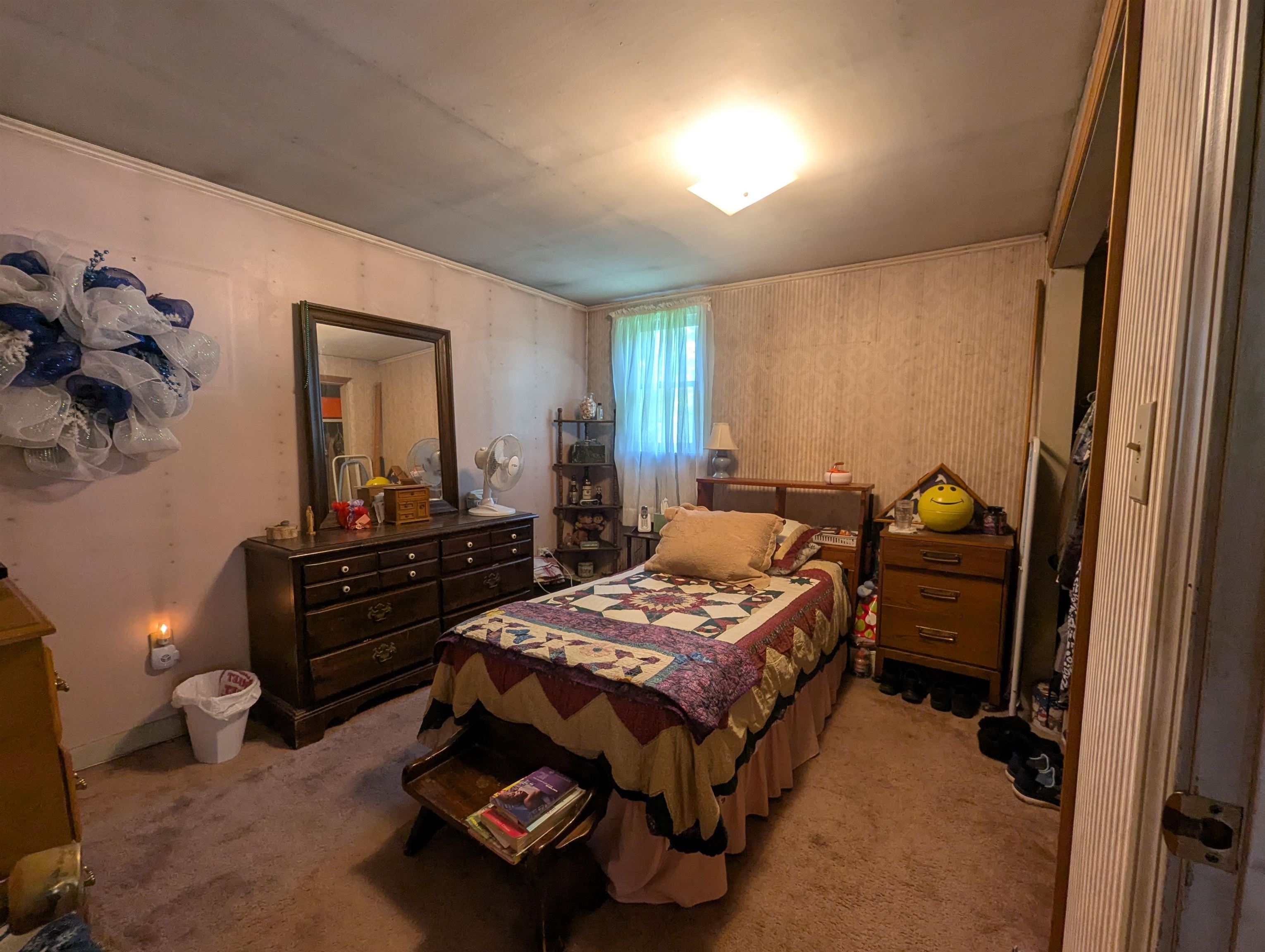 Country Setting on a shared drive surrounded by 3 acres w/ a small pond. First floor has 1 BR, full bath, kitchen/dining area and living room. Lower level has 1 BR and laundry room. Heat is a propane Rannai direct vent, plus a lower-level pellet stove. Property is in need of repair but livable. This is an ideal candidate for a 203K loan.