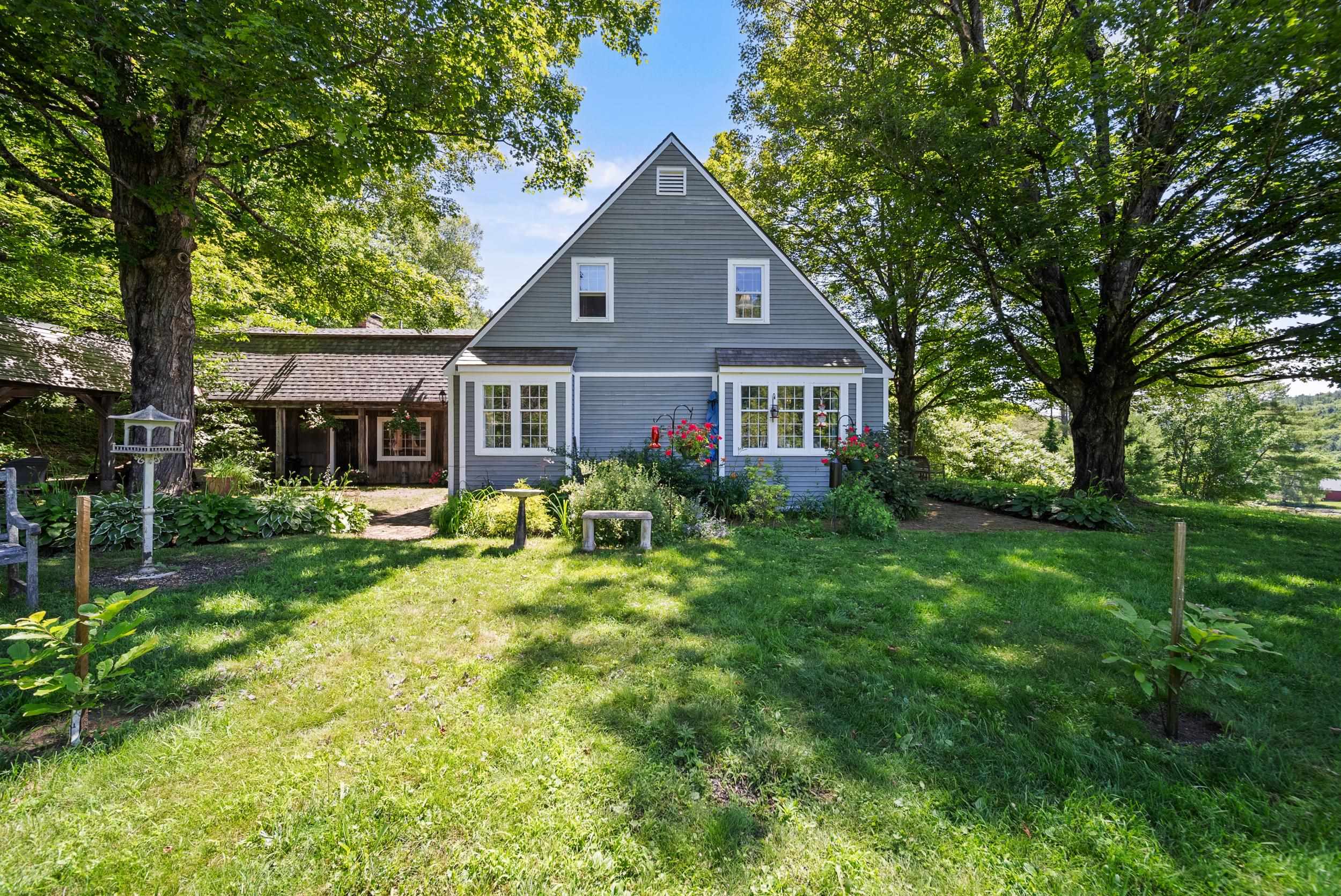 A Distinctive Country Retreat on 6.8± private acres in the heart of the historic village of Saxtons River. This idyllic country estate offers year-round views, exquisite perennial gardens, & two beautifully integrated wings—the timeless Cape & the charming Carriage House. Inside of the Cape wing is a sunlit eat-in kitchen, KraftMaid cherry cabinetry & Silestone quartz countertops —all overlooking the vibrant gardens. The living room features wide pine floors, hand-raised paneling, & a brick fireplace. The adjacent room—perfect as a dining area or study with soaring Palladian windows. Every corner of the home speaks to craftsmanship and heritage: hand-forged iron hardware, custom cherry woodwork, and interior shutters are just a few of the thoughtful details. Upstairs in the Cape wing, you’ll find two bedrooms & full bath. The Carriage House, connected by a hidden passageway behind a custom bookshelf—or accessible by its own private entrance. Two additional bedrooms overlooking the gardens, 1.5 baths, & Great Room with beamed ceilings & hickory floors. A formal dining room complete with a traditional Rumford fireplace. Outdoors, a post-and-beam breezeway leads to the garage & courtyard. Modern upgrades include a newer roof, mini-split systems for year-round comfort, underground utilities, updated plumbing, & electrical systems.