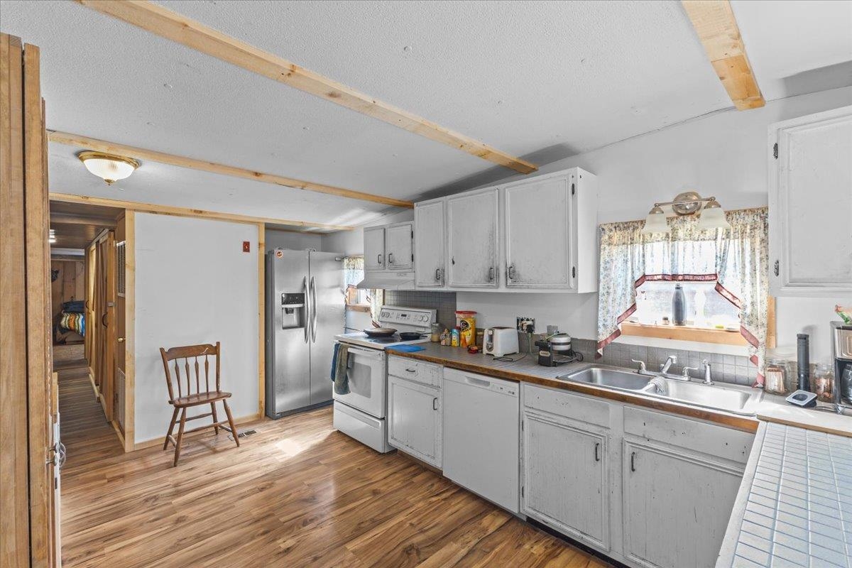 This charming 2-bedroom, 1-bath mobile home offers 1, 112 square feet of comfortable, functional space. Step inside to discover an open floor plan filled with natural light and newer flooring throughout much of the home. The cozy living area features a pellet stove—perfect for chilly Vermont evenings.Enjoy the convenience of in-home laundry with a washer and dryer included. Other appliances add to the home's move-in ready appeal, including a refrigerator replaced in 2018 and a stove added in 2020. The home has been well cared for over the past 16 years, with several important updates already completed. These include updated plumbing and wiring, a newer metal roof over the master bedroom area, and a modern 158-amp electrical panel installed within the past 10 years. The ductwork was cleaned within the last five years, offering better air quality and efficiency.Just behind the home, you'll find a 10x10 shed with power, providing additional storage or workspace. This home offers exceptional value with its many upgrades . Don’t miss the opportunity to make it yours!