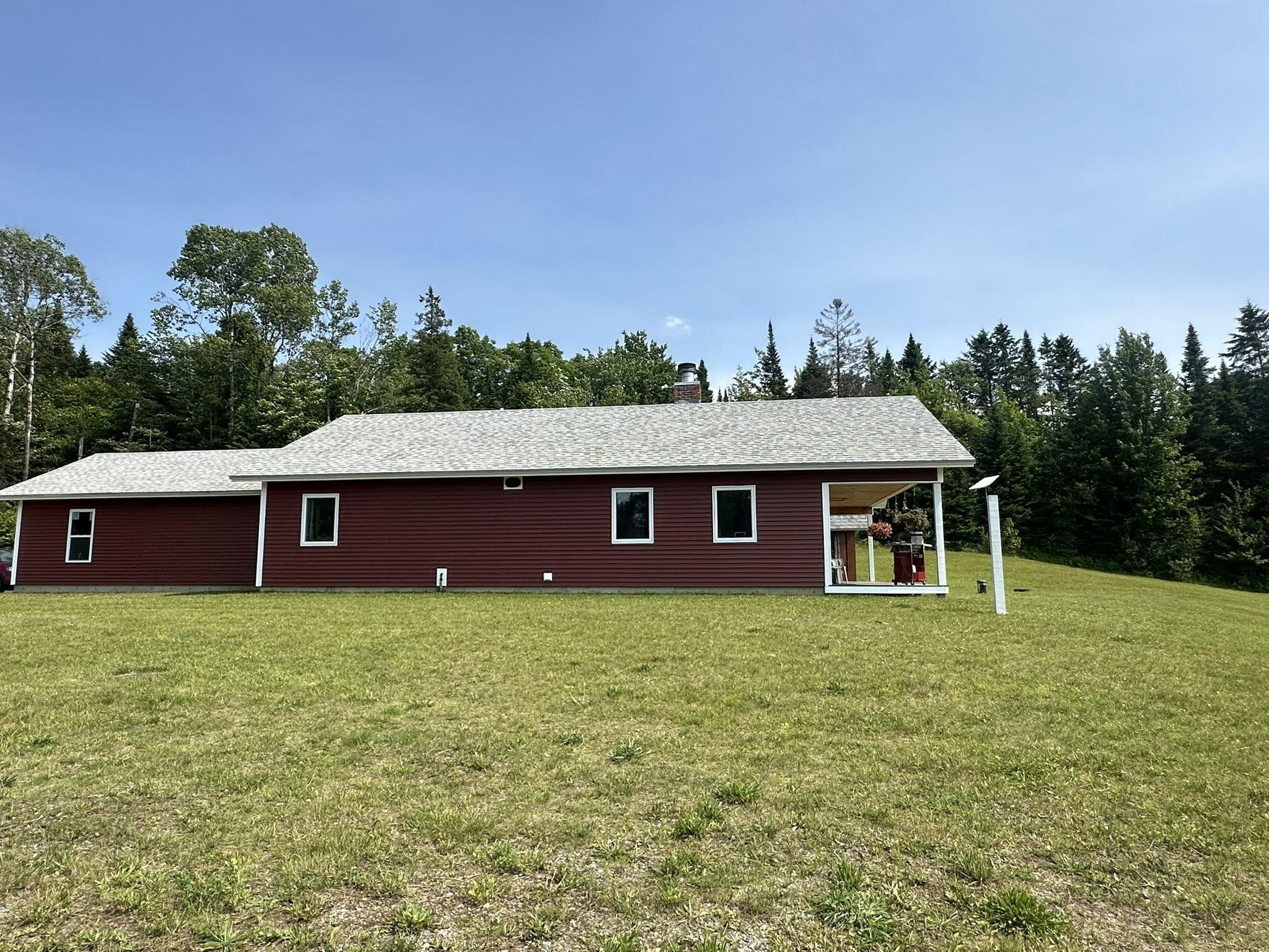 Nestled in a peaceful country setting, this highly efficient Ranch-style home combines comfort, beauty, and recreation in one remarkable package. Built on a slab with frost walls and radiant heated floors throughout, the home is designed for year-round efficiency and ease of living. The open floor plan is anchored by a striking stone wood-burning fireplace that serves as the centerpiece of the home, elegantly dividing the kitchen and dining area from the living room. The primary suite features a full bath and a walk-in closet, while a guest bedroom and a ¾ bath with stackable laundry add both function and convenience. Step outside and take in sweeping westerly views and unforgettable sunsets over the property’s large swimming pond—best enjoyed from the welcoming front porch. Outdoor enthusiasts will love the direct access to the Vermont Rail Trail system, offering four seasons of recreation just steps from the door. An attached, heated, and insulated 1+ car garage, currently serving as an artist’s studio, provides flexibility for work, hobbies, or storage. There is an RV hookup with electric, sewer connections, and water available as well that will further enhance the property’s versatility, making it perfect for hosting guests or embarking on your own travels. Whether you’re looking for a serene retreat, a place to entertain, or a home base for an active lifestyle, this property delivers it all—wrapped in natural beauty and modern efficiency!